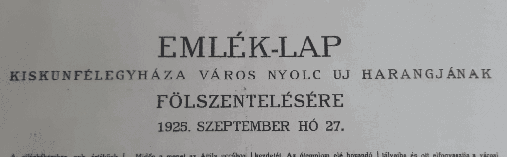 1925. szeptember 27-én tért vissza Kiskunfélegyházára az első világháborúban elrekvirált (hatóság által lefoglalt) 8 harang újonnan megöntött utóda, amire szinte az egész város megmozdult. Ilyen horderejű esemény ebben a témában se azelőtt, se azóta nem volt. Cikksorozatunkban őseink előtt tisztelegve...