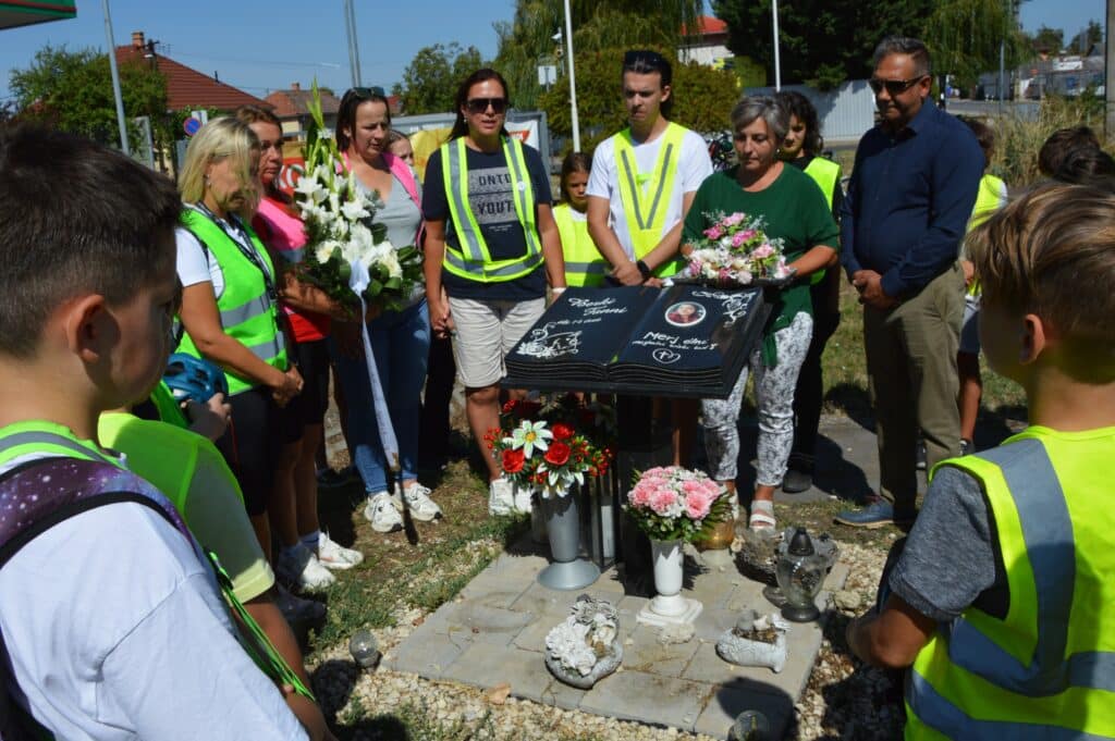 A 2022-ben közlekedési balesetben elhunyt, 14 éves Berki Fannira emlékeztek a közlekedésbiztonsági tábor résztvevői a tragédia helyszínén, augusztus 28-án, délelőtt.
