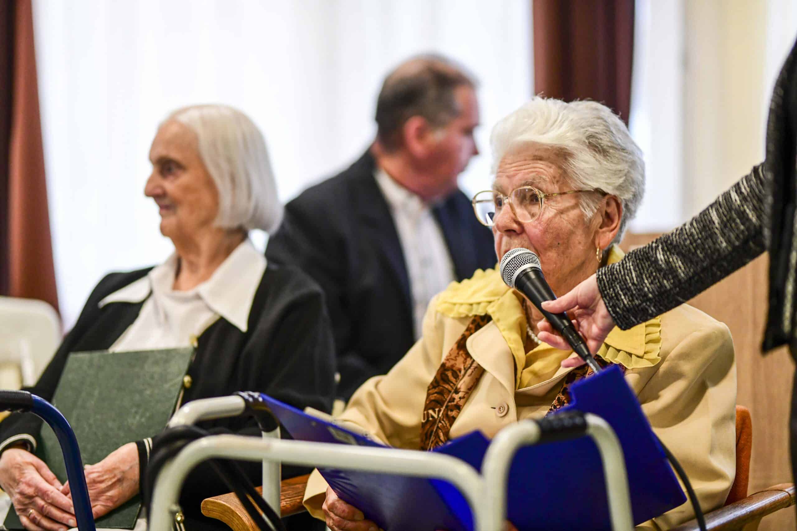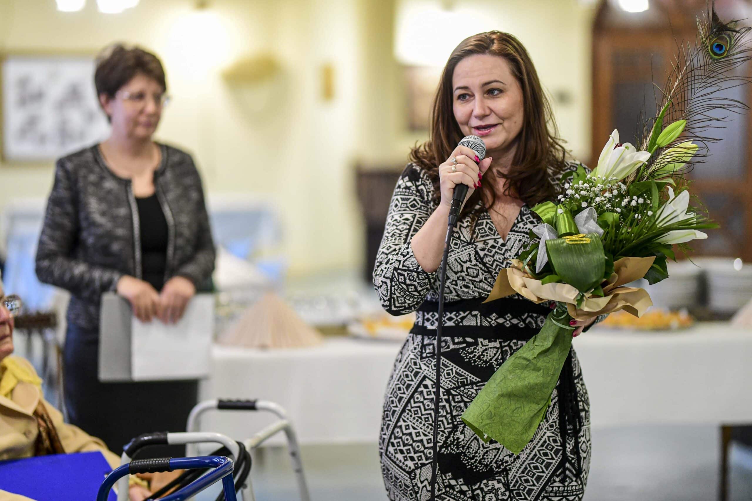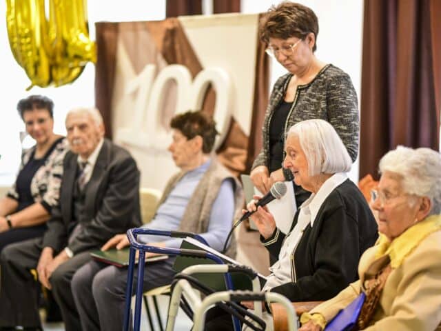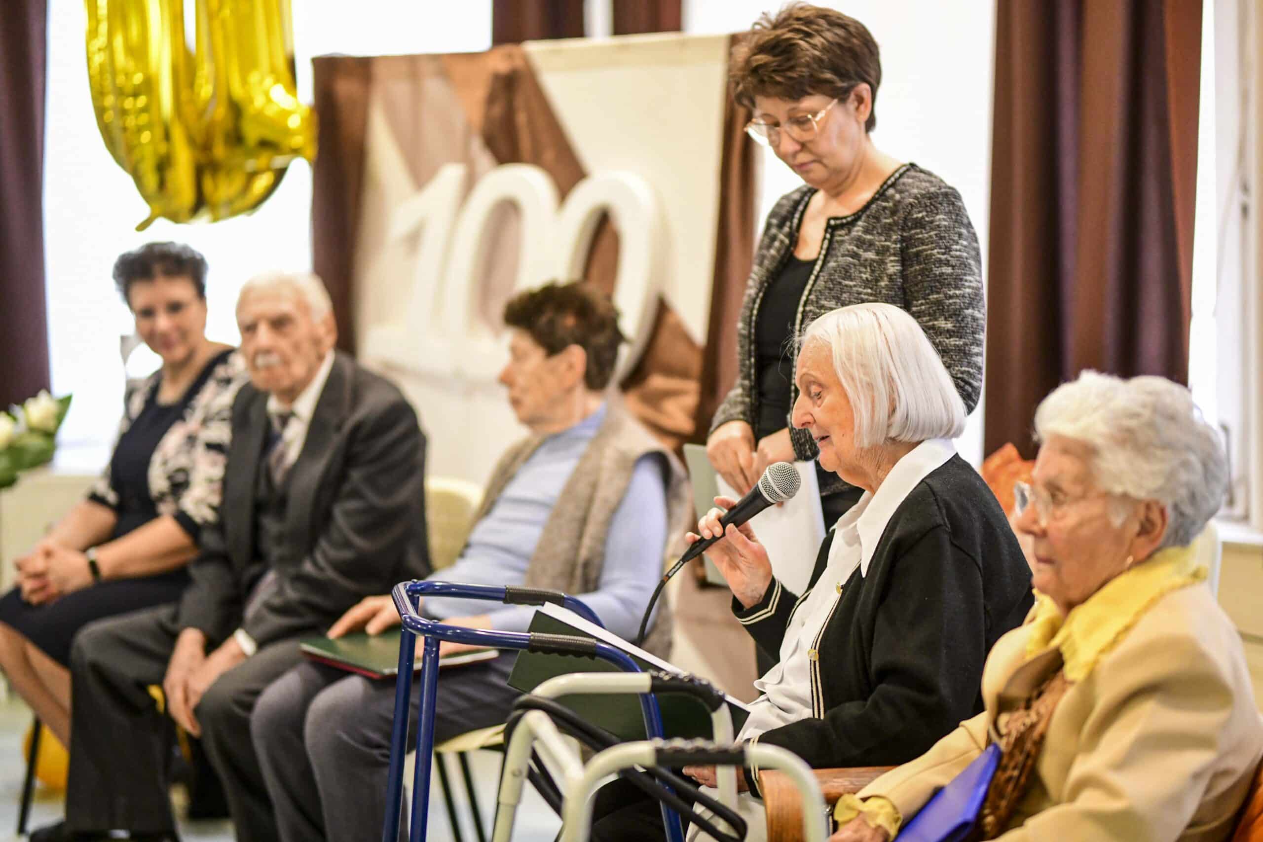 A köszöntők sorát Magyariné Tóth Erika, az intézmény vezetője folytatta, aki meghatódva méltatta az ünnepeltet, mint az otthon egyik legidősebb lakóját. Őt Papszigeti Sándorné követte, aki saját versátiratával lepte meg az ünnepeltet.