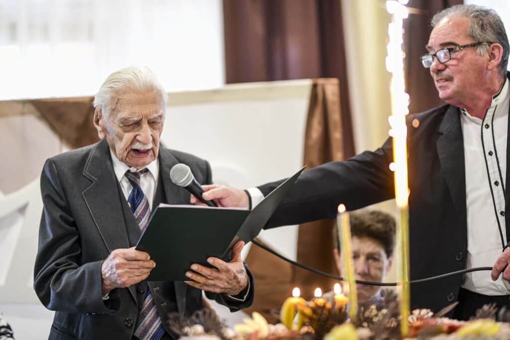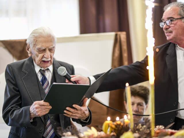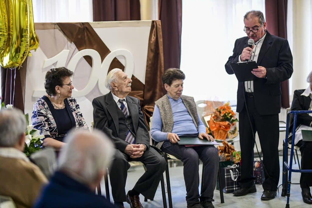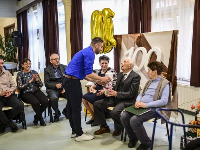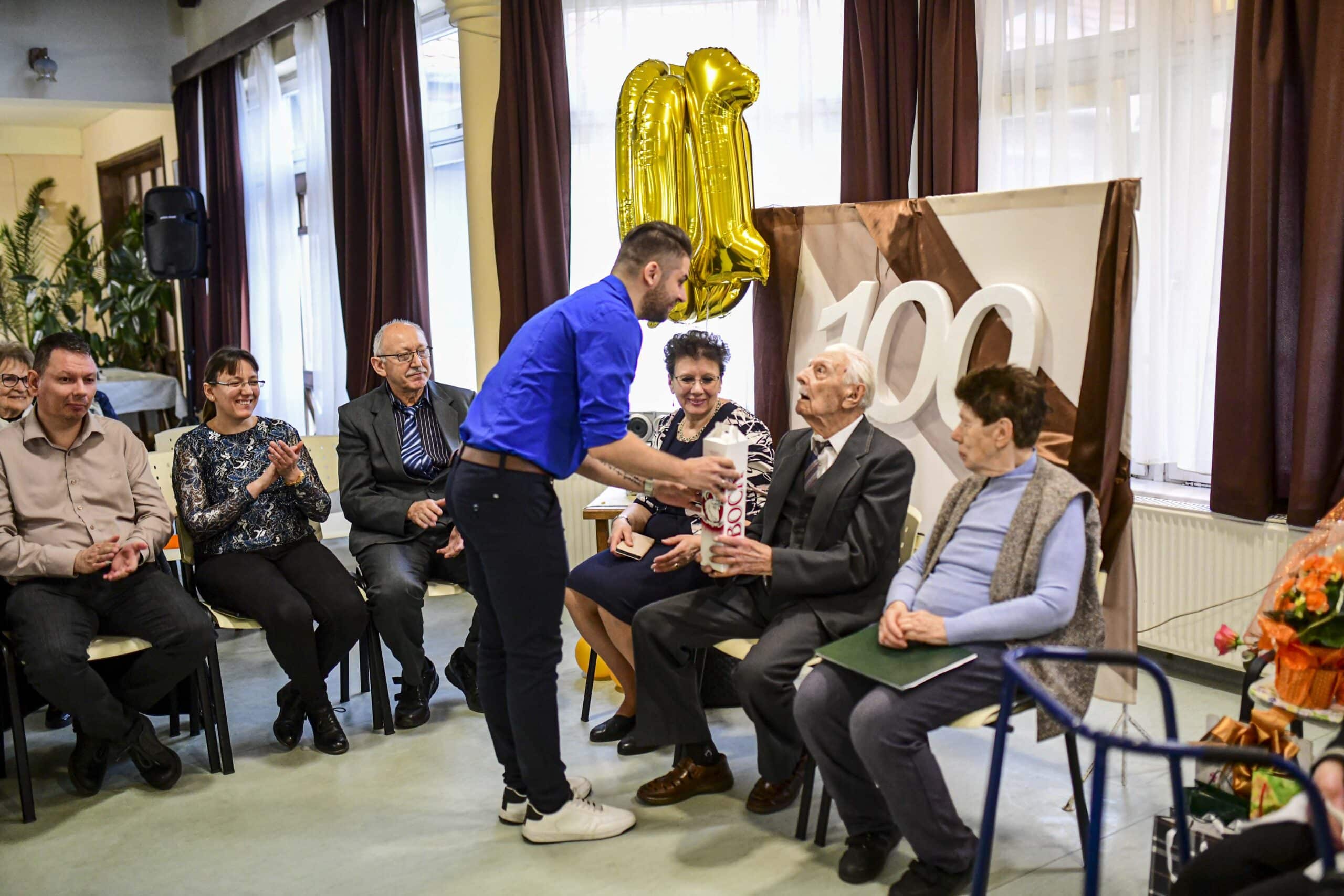 – Három évvel ezelőtt ismertem meg Dezső bácsit. Az intézményben mindenkinek megvan a saját helye az étkezőben, az enyém éppen mellette volt. Beszélgetéseink során kiderült, hogy mindketten pedagógusok, vagyis a nép napszámosai voltunk aktív éveinkben. Mesélt arról, hogy egykor feleségével egy tanyasi iskolában kezdte a tanítást, ahol előfordult, hogy 120 gyerekkel foglalkoztak. Mindig hangoztatta, hogy szeretné megérni a 100. születésnapját – nagy örömünkre ez sikerült is – fogalmazott a lakótárs, aki különleges meglepetéssel, egy dunántúli elismert borászat kiváló italával ajándékozta meg az ünnepeltet.