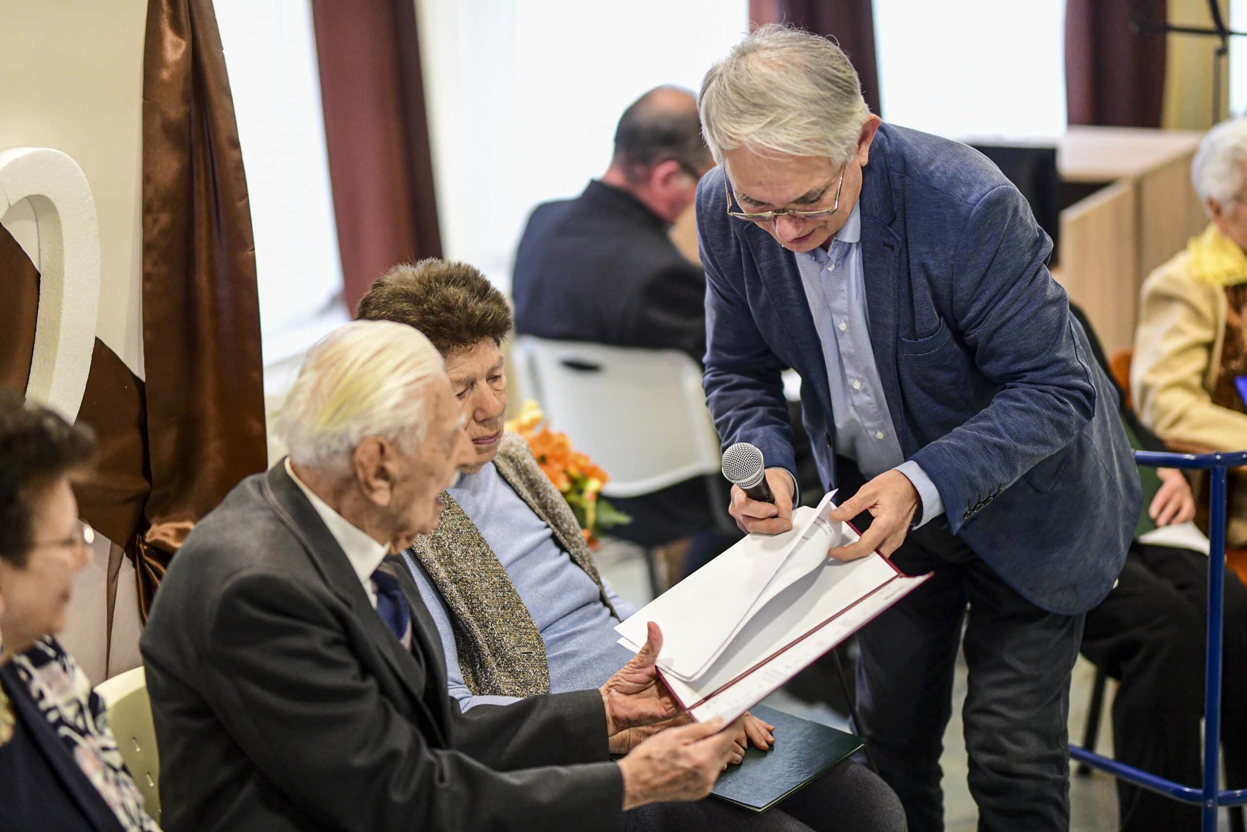 Az ünnepségen Balla László alpolgármester és Szamosi Endre képviselő Orbán Viktor miniszterelnök által aláírt emléklapot, valamint a városvezetés nevében egy gyönyörű virágcsokrot adtak át az ünnepeltnek. A rendezvényt a Batthyány Lajos Általános Iskola 6–7. osztályos énekkarának műsora tette még meghittebbé, Molnár Elvira vezetésével. A zenei kíséretről Faltum Kristóf, a Fogyatékos Személyek Nappali Intézményének vezetője gondoskodott gitárjátékával.