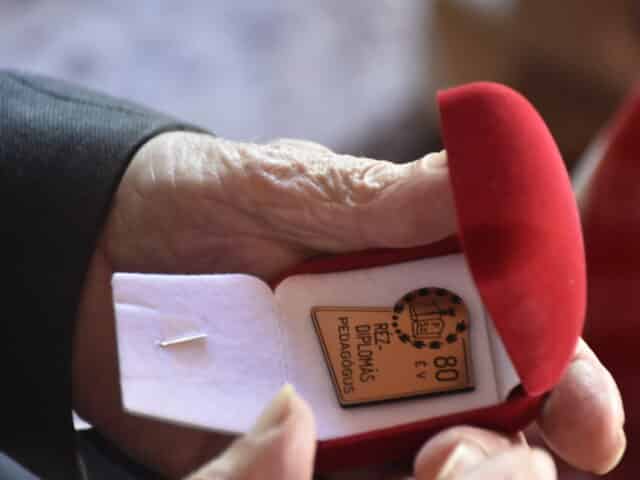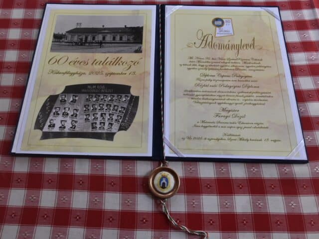 A tanítványok meglepetéssel is készültek: egy jókívánságokkal teleírt, hatalmas pezsgőt, valamint egy különleges „réz diplomát” adtak át Dezső bácsinak. Mint elmondták, mivel a Tanár Úr már mindegyik hivatalos jubileumi diplomát – aranytól a platináig – megkapta, most valami egészen újat szerettek volna kitalálni. A réz diploma egyszerre volt tréfás és megható gesztus, hiszen egyrészt az anyagismerethez kapcsolódott, másrészt az osztályban rézművesek is tanultak.