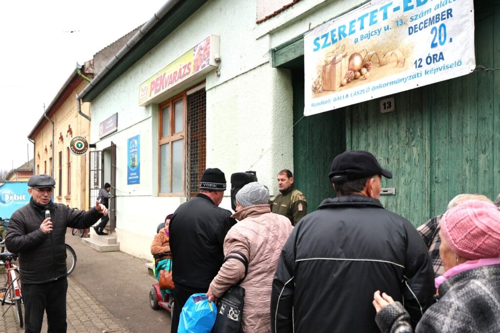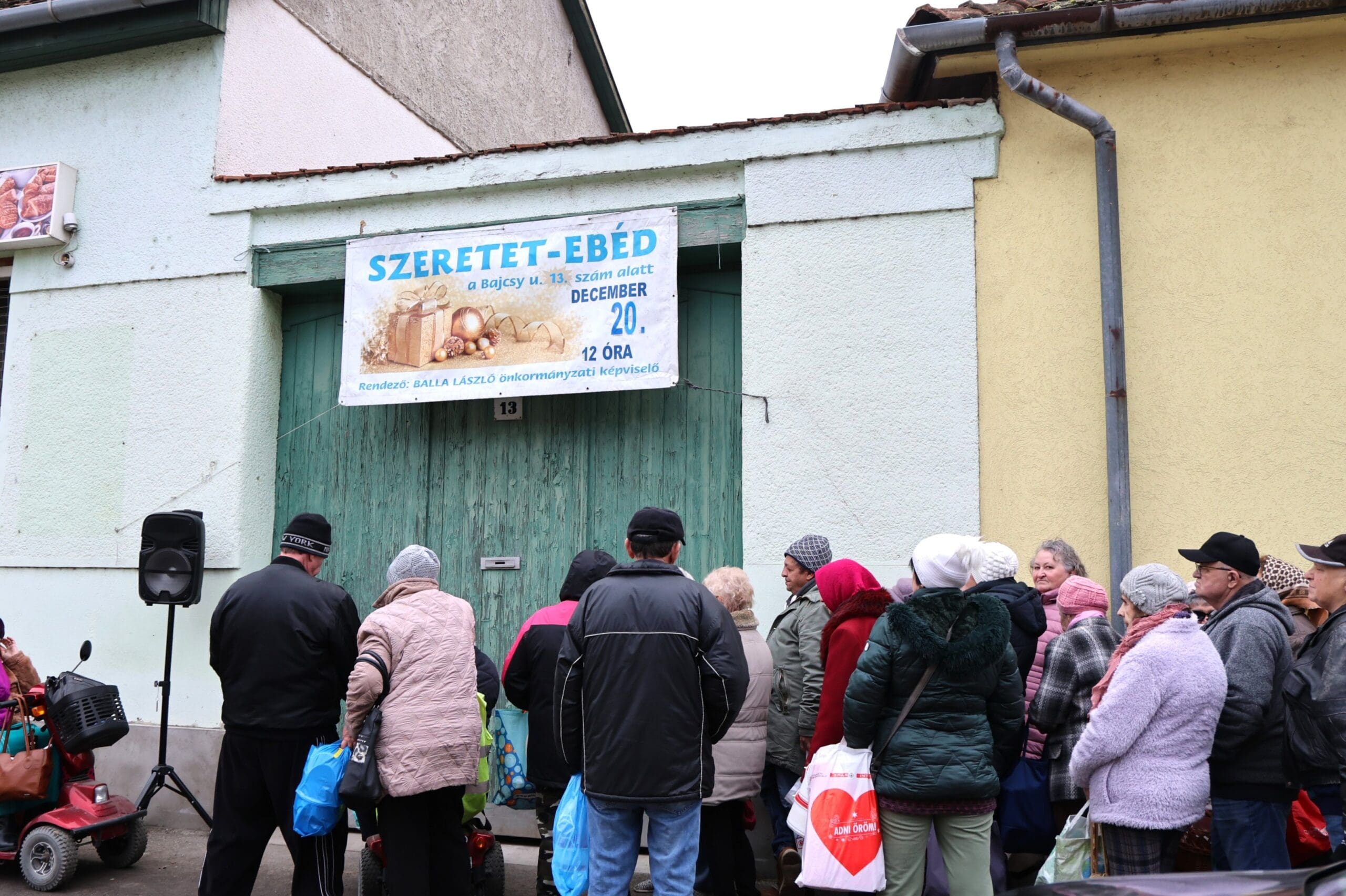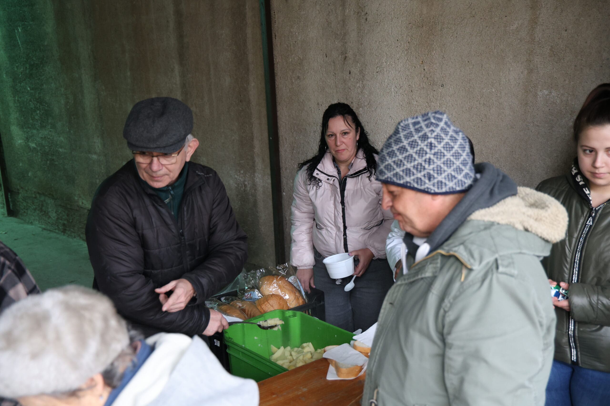 A több mint 10 éves múlttal rendelkező jótékonysági ételosztáson Csányi József polgármester, Balla László és Szamosi Endre képviselők,valamint az esemény segítői  jóvoltából minden megjelent egy adag körömpörkölttel, főtt burgonyával, bejglivel, szaloncukorral és néhány kedves szóval térhetett haza.