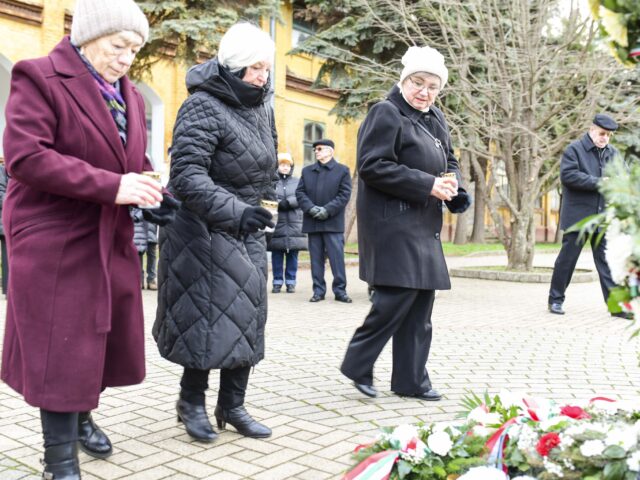 A megemlékezés zárásaként városunk vezetői, a politikai pártok és a civil szervezetek képviselői koszorúkat és virágokat helyeztek el a kopjafánál, valamint az öreg laktanya bejáratánál található emléktáblánál. Az esemény a Himnusz és a Szózat közös eléneklésével ért véget. A megemlékezés délután a Felsőtemetőben folytatódott, ahol Hajagos Gyula plébános emlékező imát mondott, majd Csányi József polgármester gyújtotta meg az emlékezés tábortűzét.