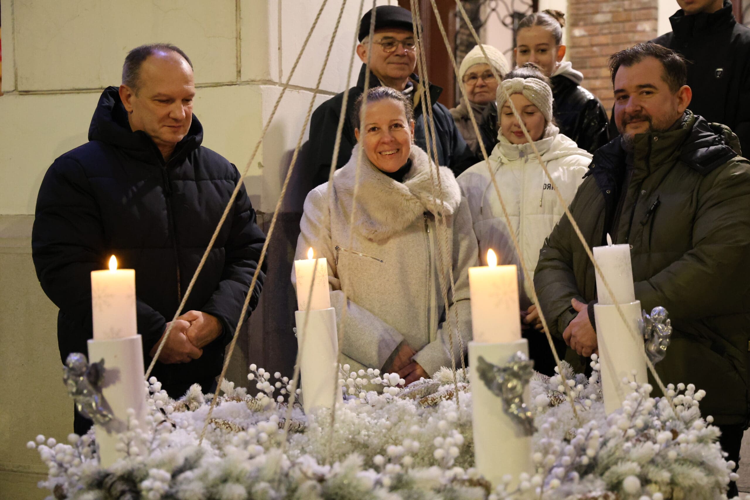 A zenés produkciók végén, az öröm gyertyáját Csányi József polgármester és Kovács-Csonka Szilvia, a Móra Ferenc Művelődési Központ igazgatója és családja gyújtották meg.
