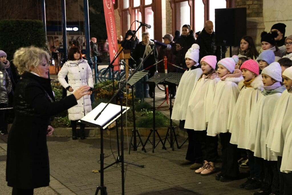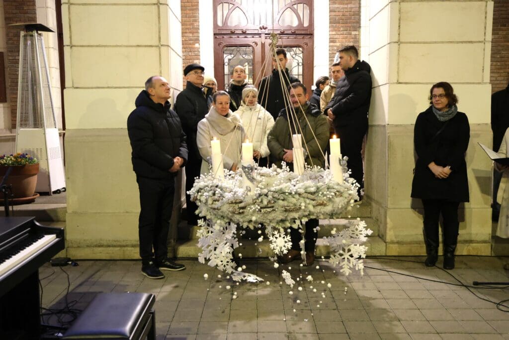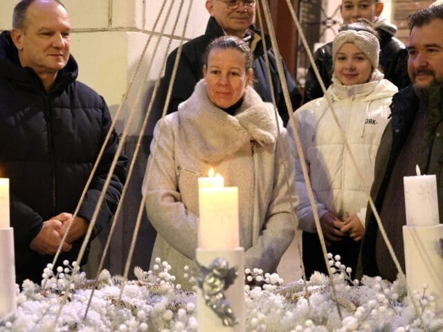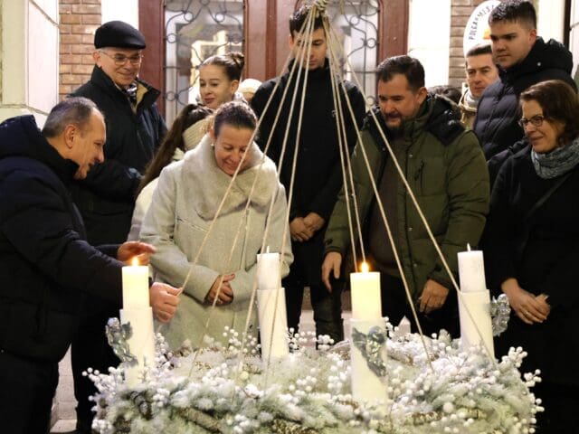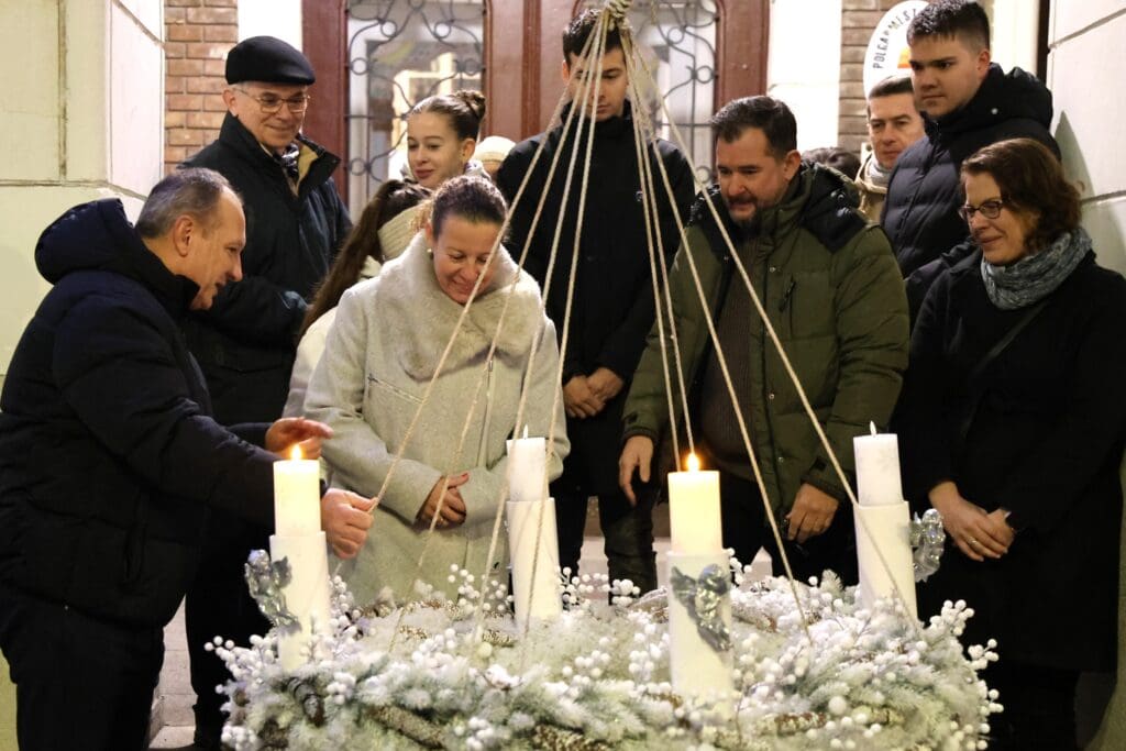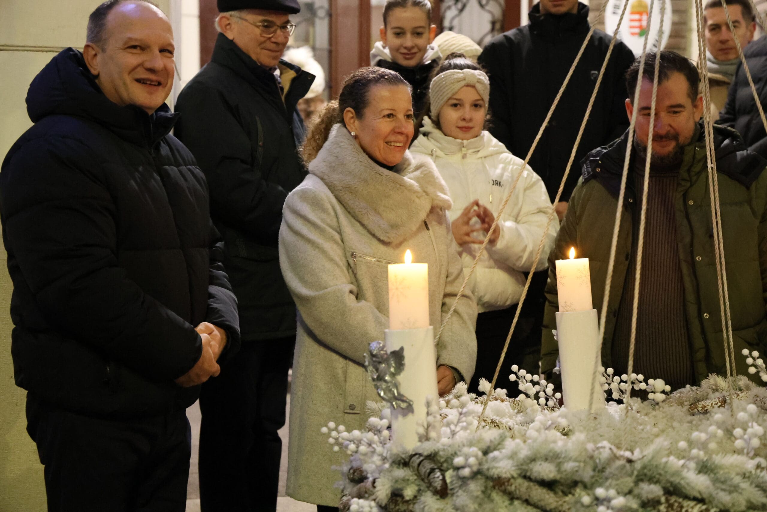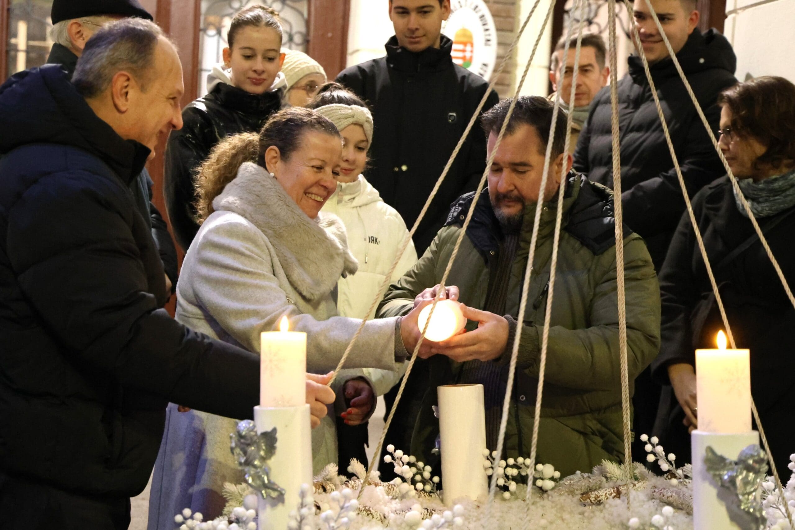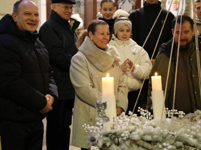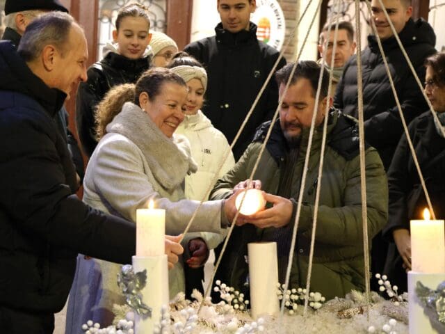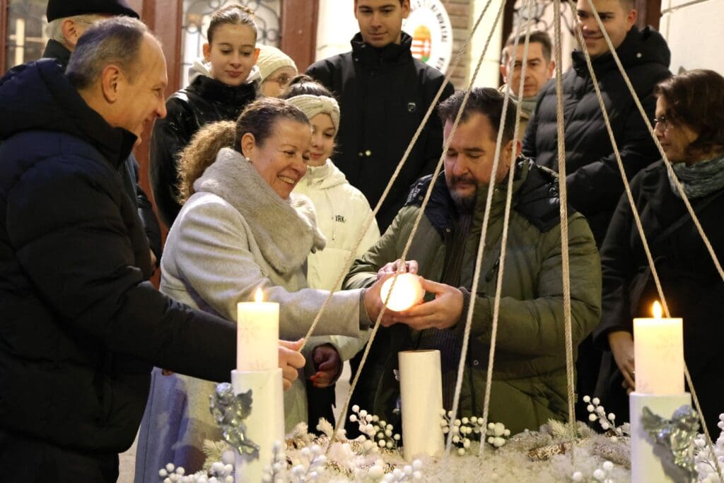A zenés produkciók végén, az öröm gyertyáját Csányi József polgármester és Kovács-Csonka Szilvia, a Móra Ferenc Művelődési Központ igazgatója és családja gyújtották meg.