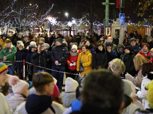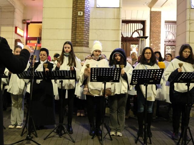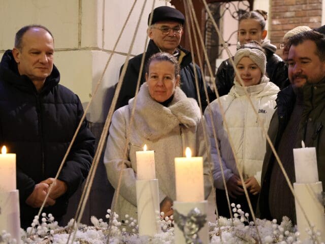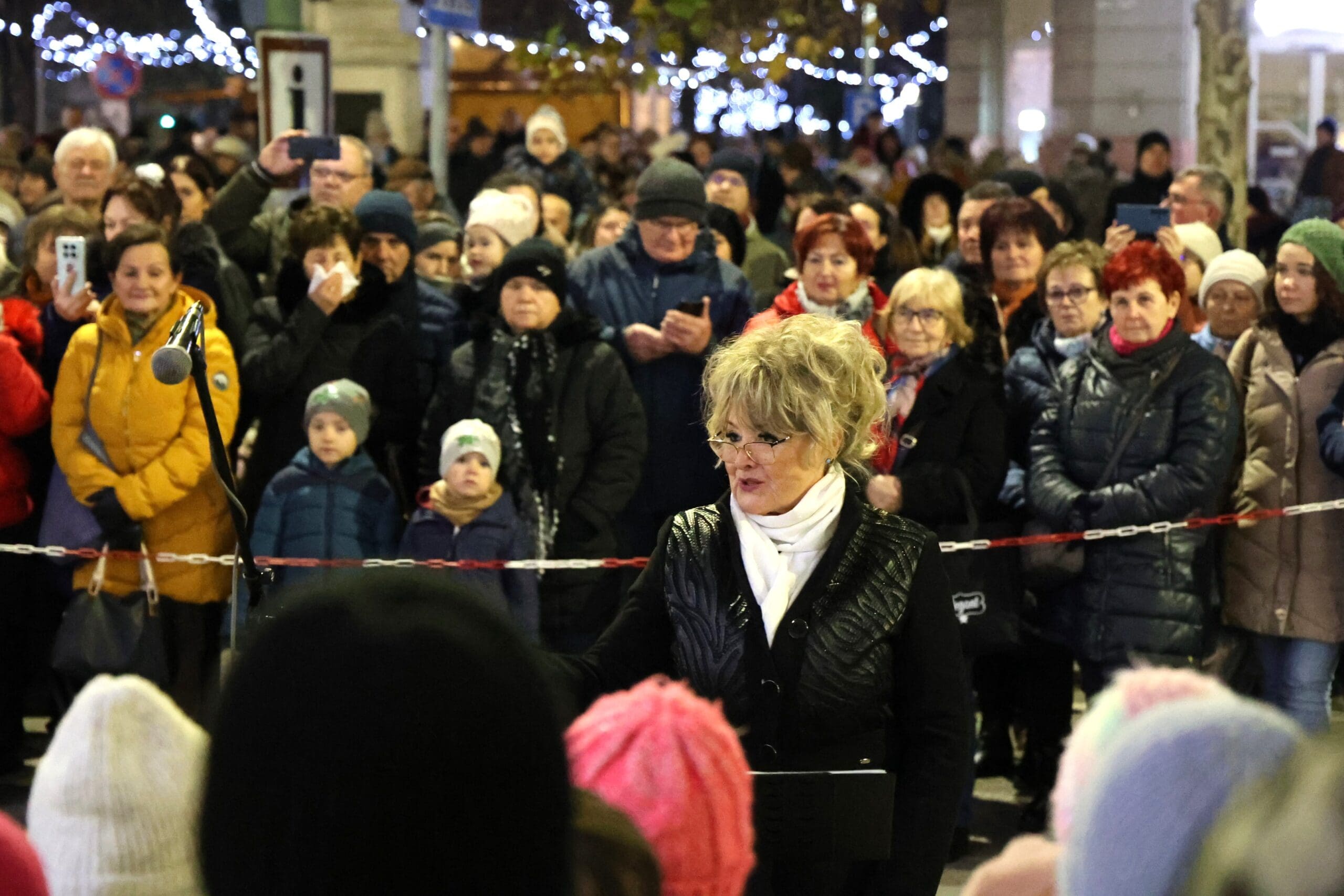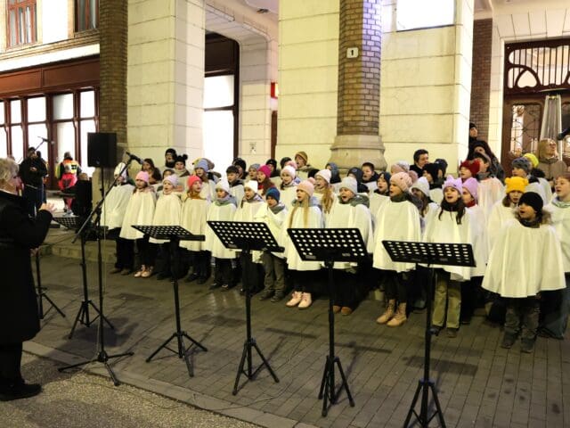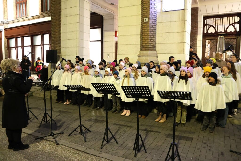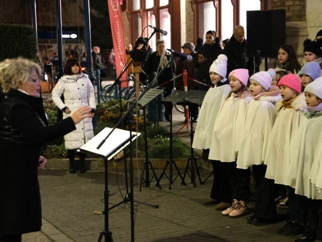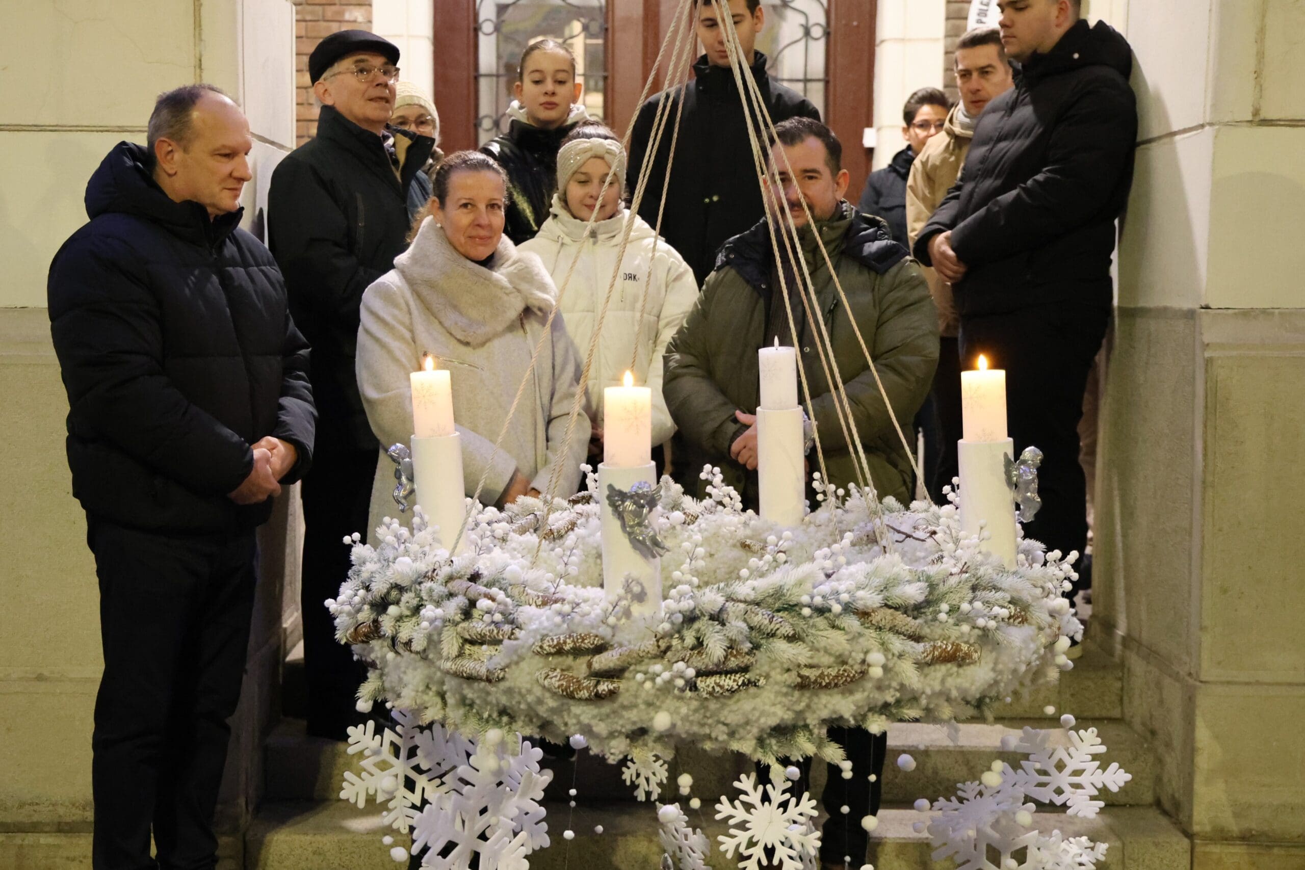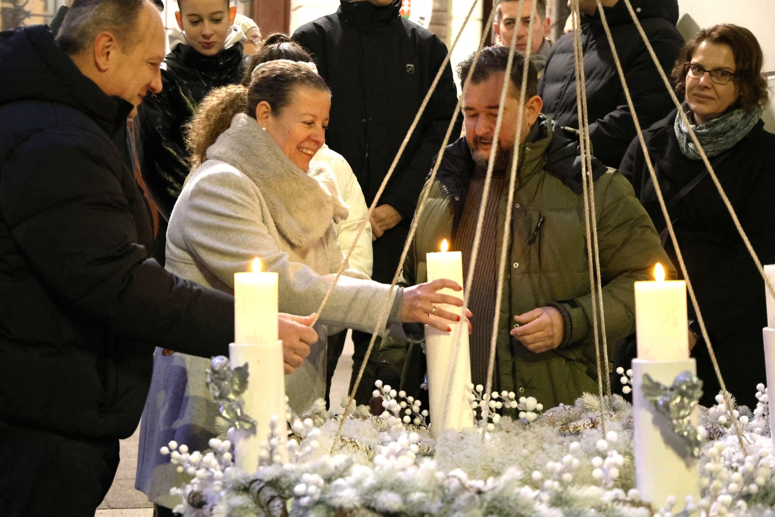 A zenés produkciók végén, az öröm gyertyáját Csányi József polgármester és Kovács-Csonka Szilvia, a Móra Ferenc Művelődési Központ igazgatója és családja gyújtották meg.