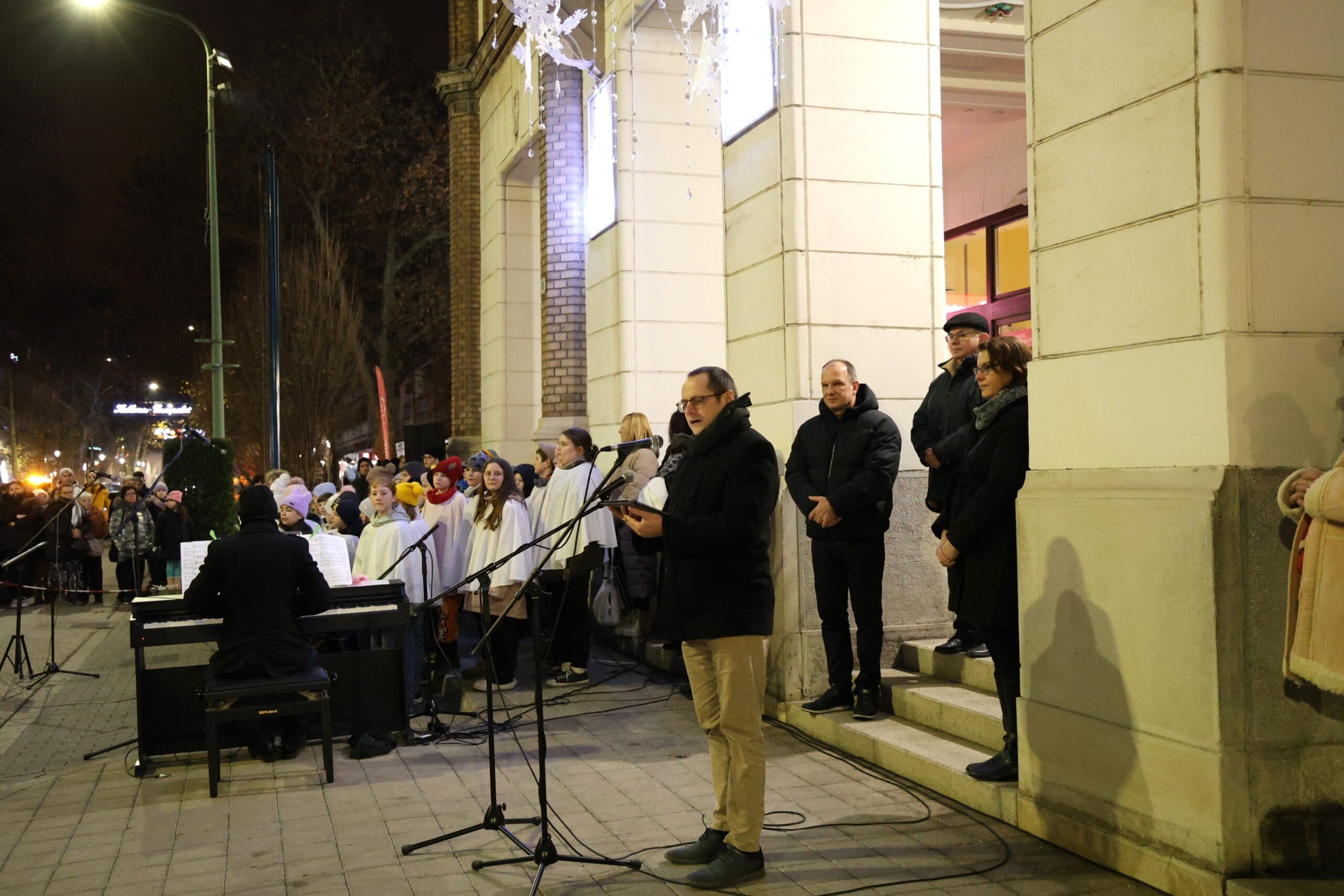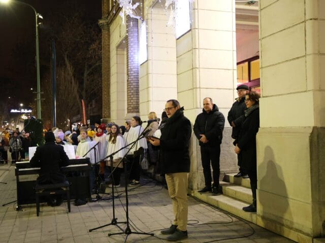 A megjelenteket Görög Anita, az önkormányzat oktatási- és közművelődési referense Szabó T. Anna: Az ünnep azé, aki várja című versével köszöntötte, majd a Kiskunfélegyházi Baptista Gyülekezet lelkésze, Bruder Gergő lépett a közönség elé.