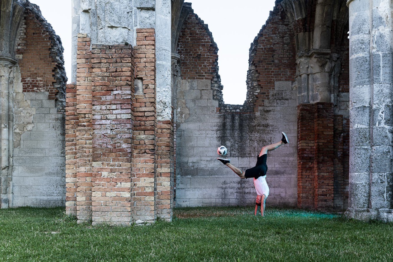 – Most már tizenöt éve foglalkozom vele komolyabban. A legegyszerűbben úgy lehet elképzelni, mint egy dekázásra épülő labdazsonglőrködést, ahol különböző testrészeken és testhelyzetekben forgatjuk, pörgetjük, egyensúlyozzuk a labdát, anélkül, hogy az földre esne. Sokan a cirkuszi akrobatika és a brazil tengerparti foci ötvözeteként írják le ezt a sportot, ami a 2000-es évek elején alakult ki, és azóta folyamatosan fejlődik, most épp nagyon akrobatikus irányba mozdult el.