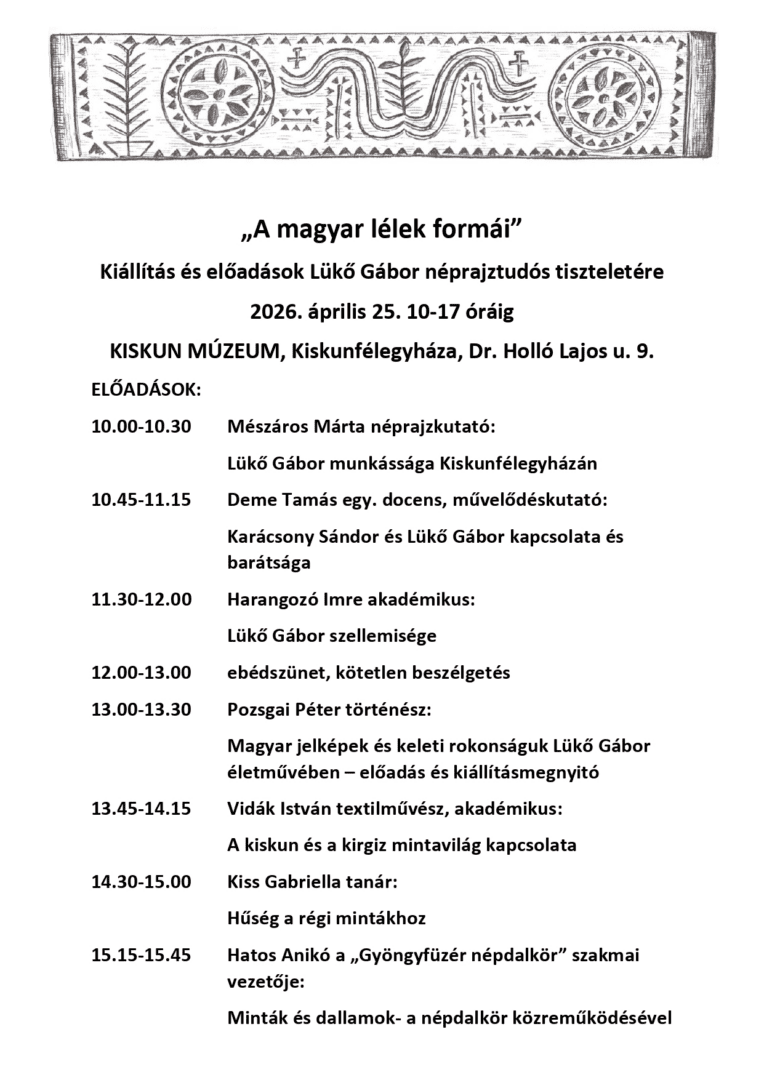 A magyar lélek formái – egész napos kulturális program a Kiskun Múzeumban