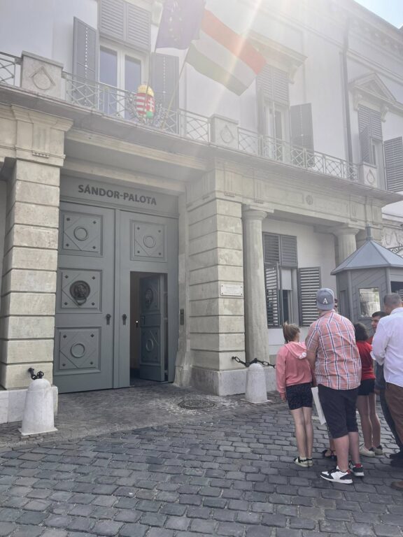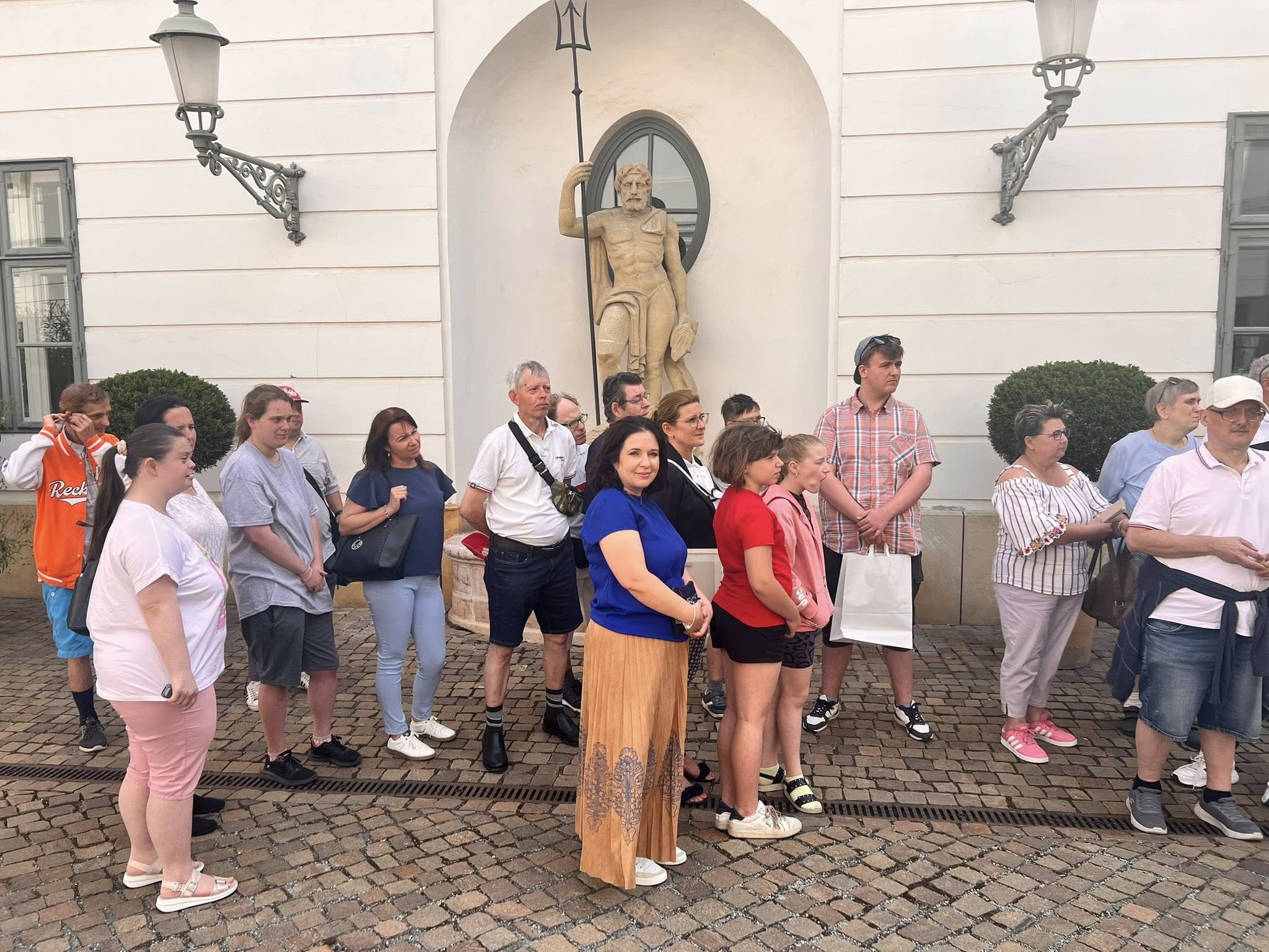 Az úti cél a Sándor-palota volt, ahol az idegenvezetéssel és vendéglátással egybekötött program során a csoport megismerte többek között a Mária Terézia termet, a Kék Szalont, valamint a palota erkélyéről a kilátást is megcsodálhatták.