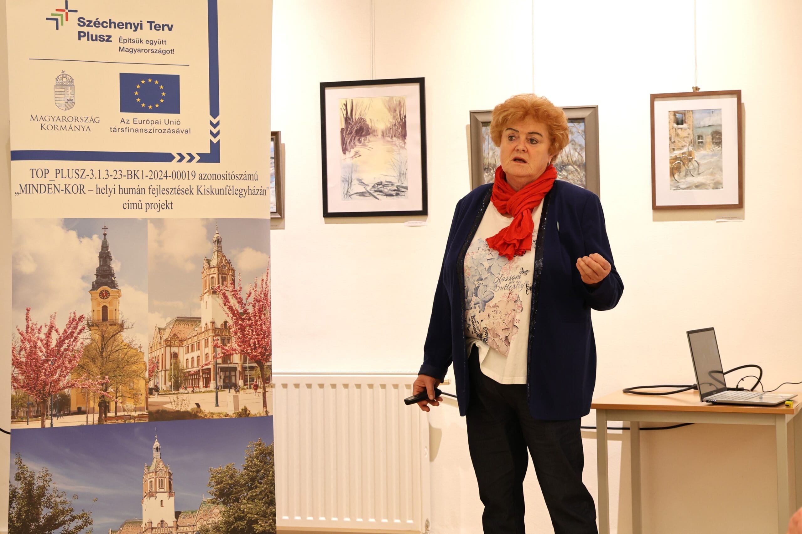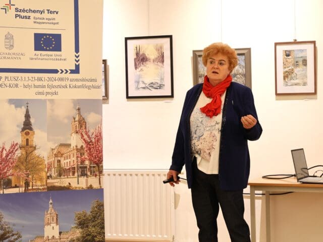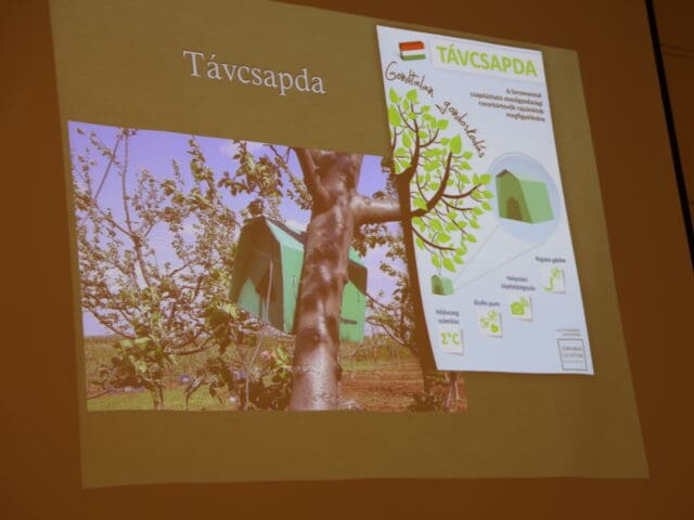 Kujáni Lászlóné elmondta, hogy feladatuk és céljuk az uniós szabályok mentén a gazdák segítése. Mintagazdaságukban különböző növényvédelmi programokkal és a mezőgazdaságban alkalmazott összes feladat bemutatásával, szakmai konzultációkkal segítenek. Feladatkörük többek között kiterjed a biológiai növényvédelemre, a tápanyag utánpótlásra, a mesterséges intelligencia alkalmazására a mezőgazdaságban. Kiemelte, hogy a gazdálkodás eredményességét az időjárási körülmények erősen meghatározzák, amelyet az időjárási anomáliák változásai súlyosbítanak. Részletesen beszélt a Duna-Tisza közét sújtó aszályról, de az egyszerre nagy mennyiségű csapadék hátrányairól is. Megtudtuk, hogy munkájukban nagyon nagy szerepet játszanak az előrejelzések, részletesen ismertette a távcsapdák, varsás csapdák hatékonyságát tevékenységeiknél. Kitért a szélsőséges időjárási körülmények között megjelenő kórokozókról, kártevőkről, megkülönböztetve az aszályos és a csapadékos közegben előforduló, növényeket károsító és sokszor elpusztító organizmusokat. A védekezés és megelőzés fontosságára hívta fel a figyelmet, alkalmazható növényvédő szereket és gyakorlati tanácsokat felsorakoztatva. Fontos témaként említette az új, mediterrán növények megjelenését Magyarországon, amelyek behozatalával sajnos hazánkban eddig ismeretlen kártevők is megérkeztek.