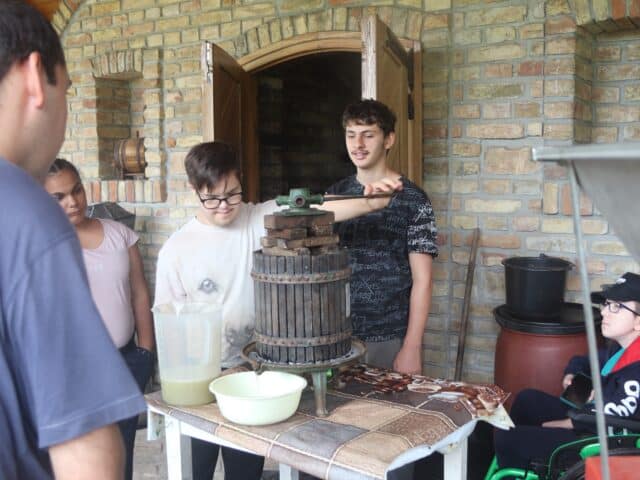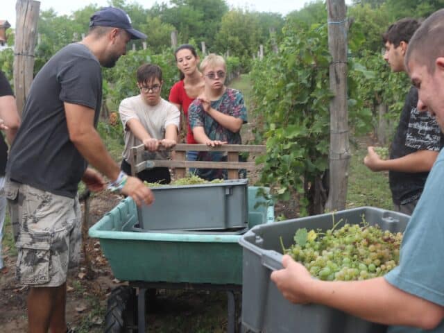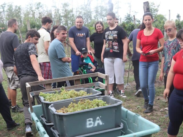 – Rendelkezünk iskolakerttel, zöldfelületekkel az intézményben, ahol egymásra épülnek az órák. A gyakorlatorientált szemlélet mellett a megszerzett készségek szinten tartására is figyelmet fordítunk. Minél többször ismételjük a gyakorlati dolgokat, annál jobban rögzülnek, beágyazódnak a tanulók ismereteiben. Különösképpen, ha a tapasztalatok megszerzése élményekben gazdag módon történik. Nem mindenki lakik kertes házban és korántsem biztos, hogy valamennyiüknek volt már módja találkozni bizonyos növényekkel, állatokkal, tevékenységekkel… Ilyen akár a szőlőszüret is, amit most és itt megtapasztalhattak, részesei lehettek – magyarázza a gyógypedagógus.