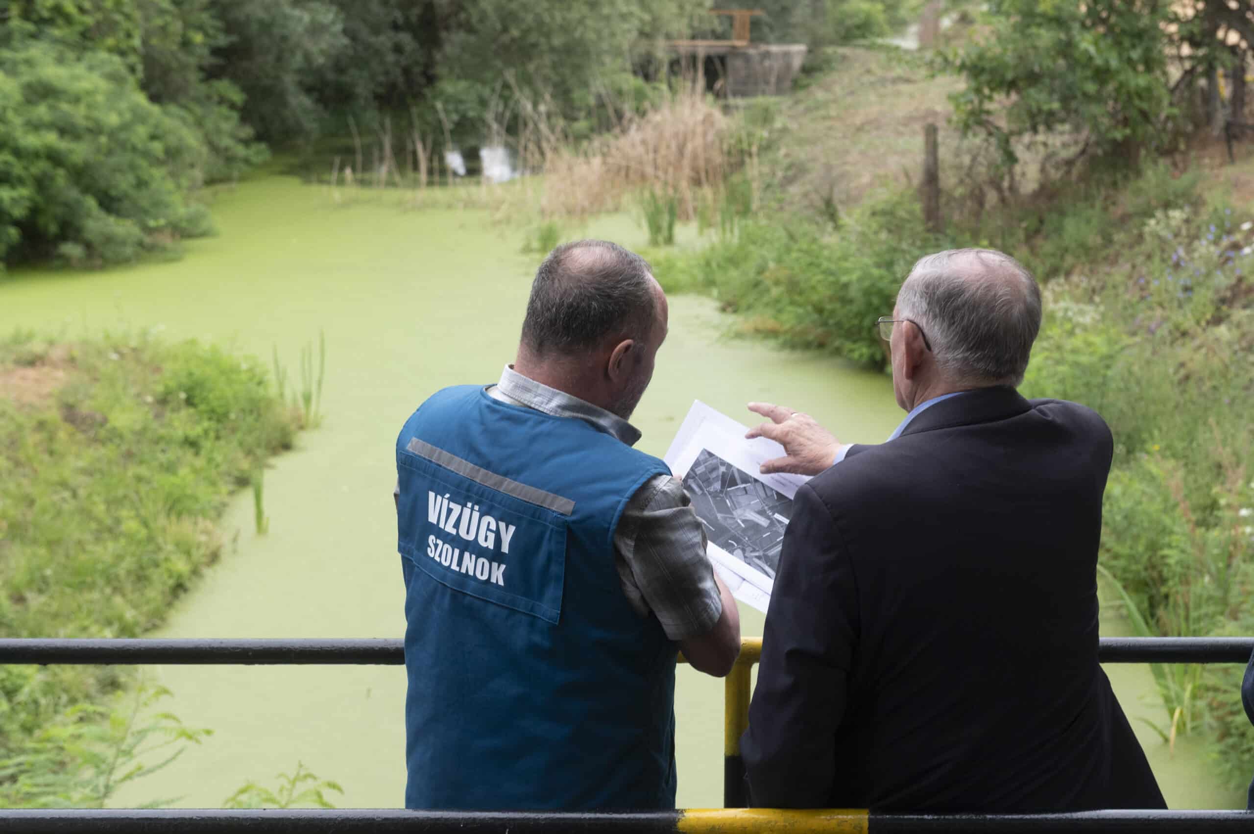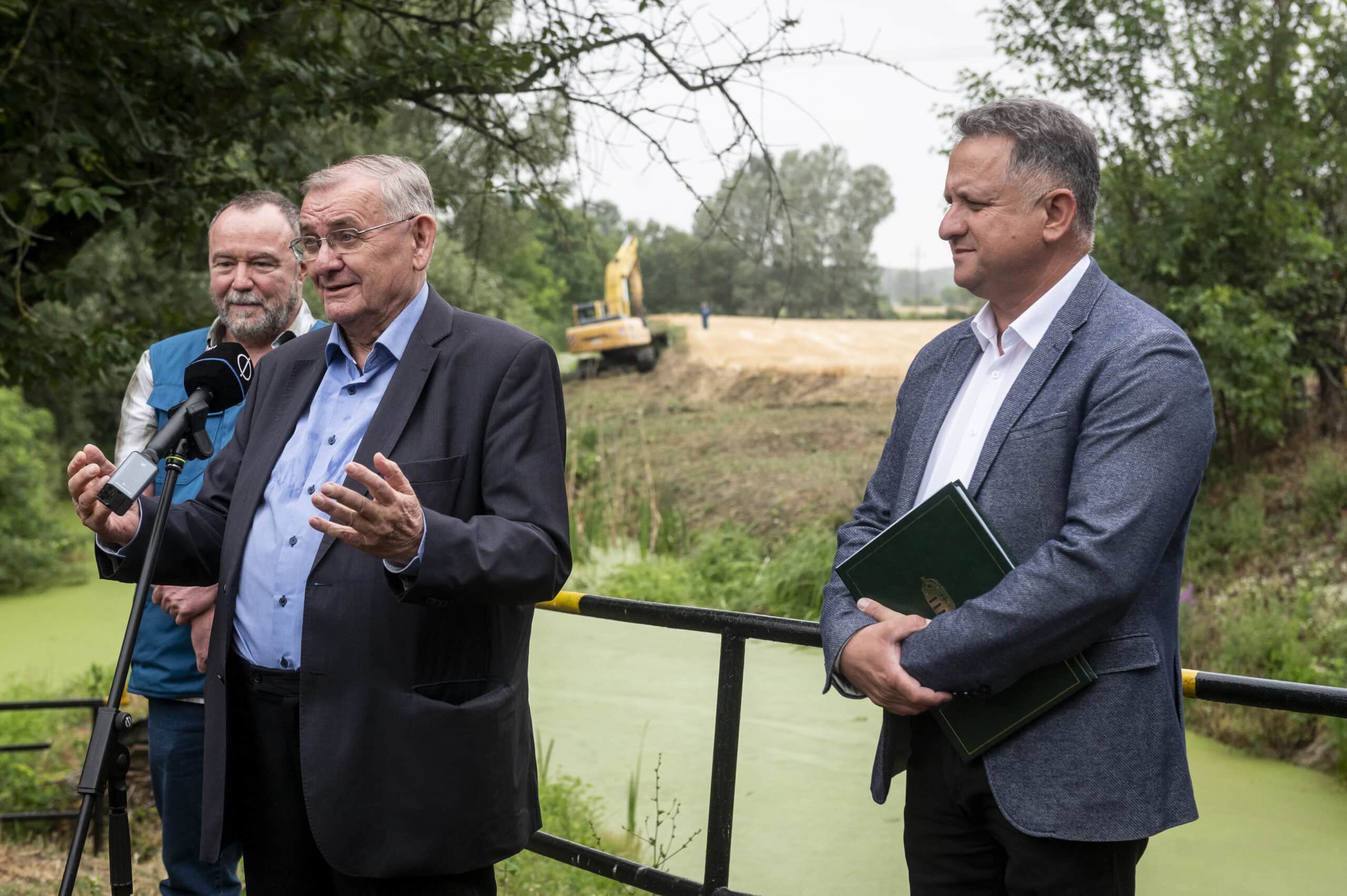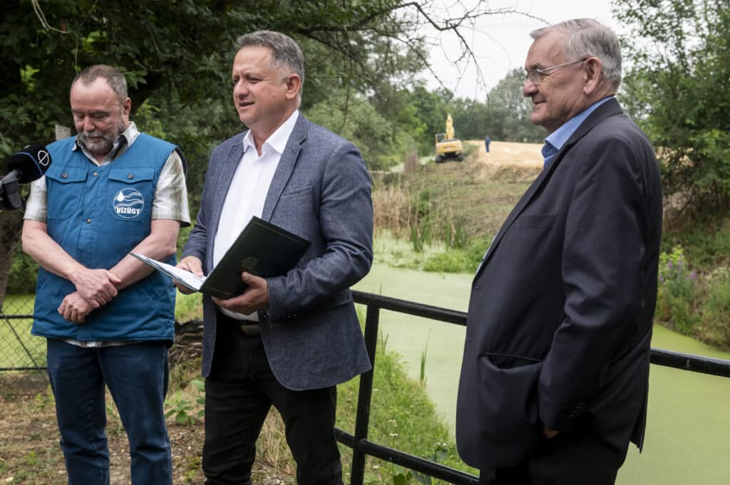 A Tökös-csatorna vízvisszatartó műtárgy helyreállítása kapcsán tartottak sajtótájékoztatót a vízhiány elleni védekezésről