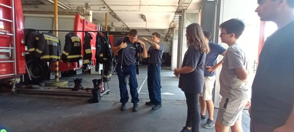 Csütörtök délelőtt a félegyházi tűzoltóságra látogattak a táborlakók, ahol Leiz Gábor parancsnok, valamint Katona Balázs és Almási Sándor tűzoltók mutatták be a riasztások menetét, a tűzoltók felszereléseit, és azt is, mikor és hogyan kell a 112-es segélyhívót tárcsázni. A gyerekek megtanulták, mi a helyes teendő baleset, viharkár vagy eseti tűz esetén, hogyan kell jelezni a problémát, és miért életbevágóan fontos a pontos információadás. A program során nemcsak hallhatták, hanem testközelből meg is nézhették a különféle eszközöket, sisakokat, védőfelszereléseket és a tűzoltóautó belső kialakítását is.