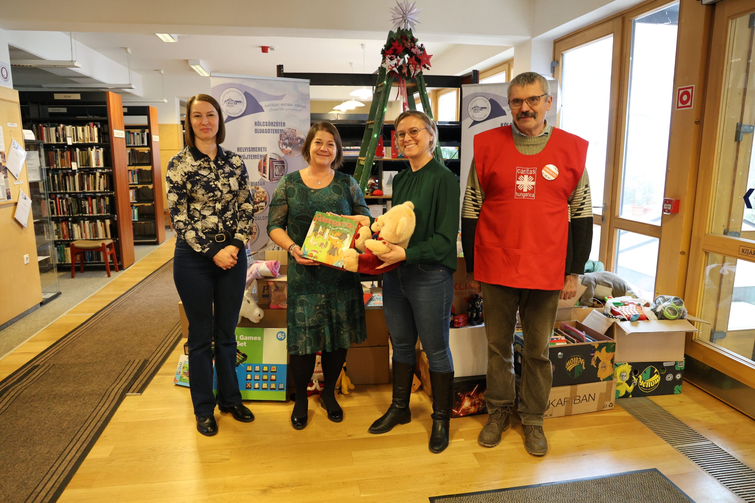 A könyvtár 2009 óta minden évben megszervezi karácsonyi adománygyűjtését, amihez idén is sokan csatlakoztak. Az átmeneti otthon kérése szerint most főként kreatív eszközöket gyűjtöttek, így rengeteg gyurma, festék, színes ceruza, kréta, kifestő és gyöngyfűző szett érkezett. A felajánlók azonban számos más kedvességgel is meglepték a gyerekeket: plüssmacikkal, kirakókkal, társasjátékokkal, kisautókkal, repülőkkel, ruhácskákkal, sőt még egy kis asztali csocsó is helyet kapott az adományok között. A Dél-100 Kft. is hozzájárult az adományokhoz.