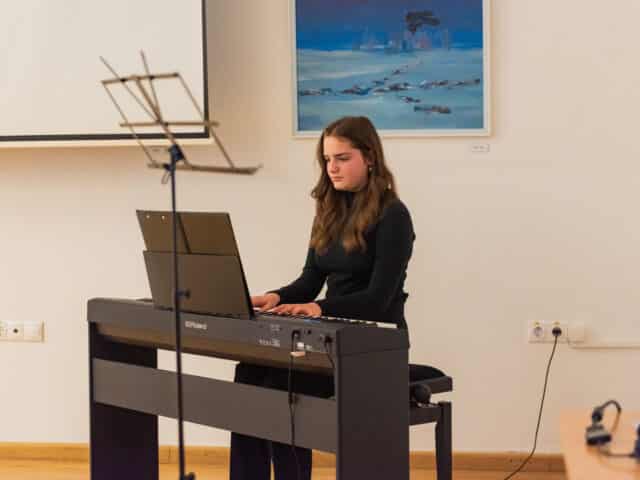 A folytatásban Apró Ferenc verseit tolmácsolta Rácz-Szabó Zoltán, az alapítvány kuratóriumi tagja, majd Rácz-Szabó Zsófia,Rácz-Szabó Kata, Rácz-Szabó Alexandra és Rácz-Szabó Viktória közreműködésével csendült fel a hegedű, a zongora, az alt és a szoprán furulya hangja.