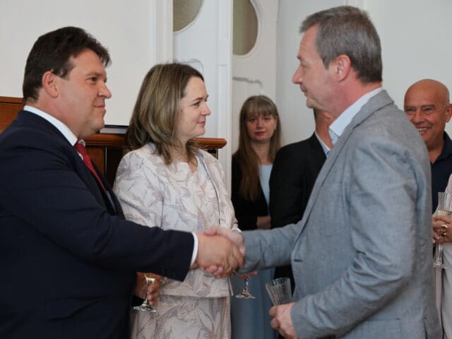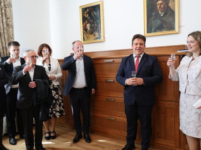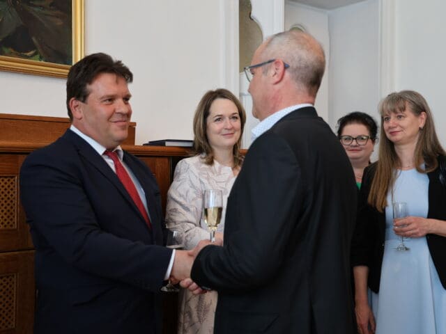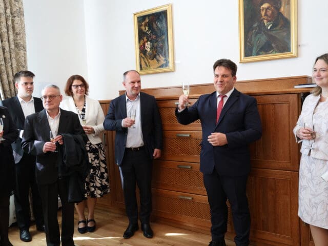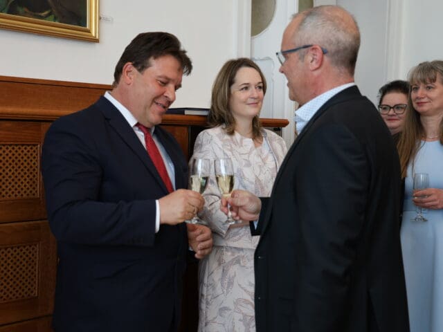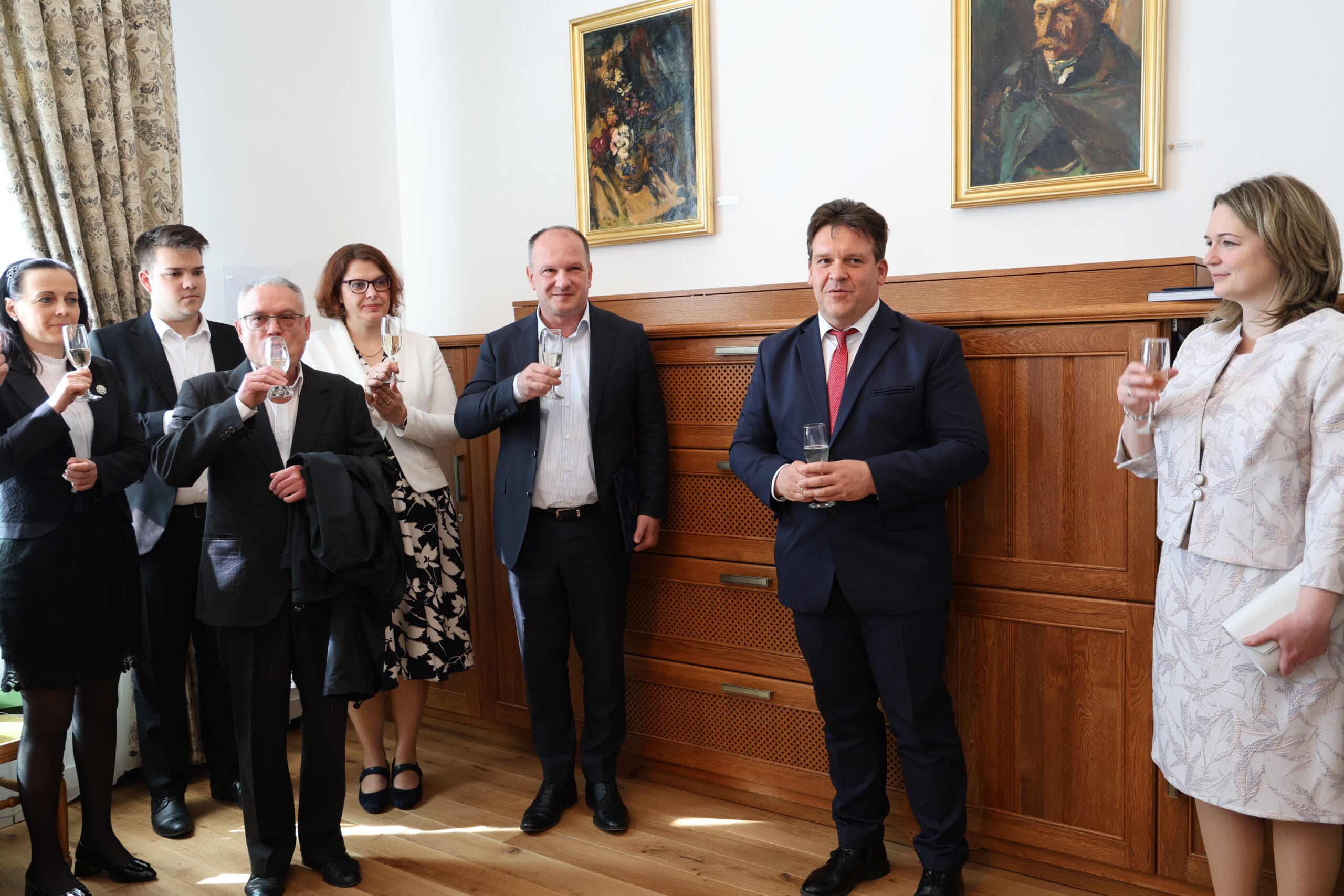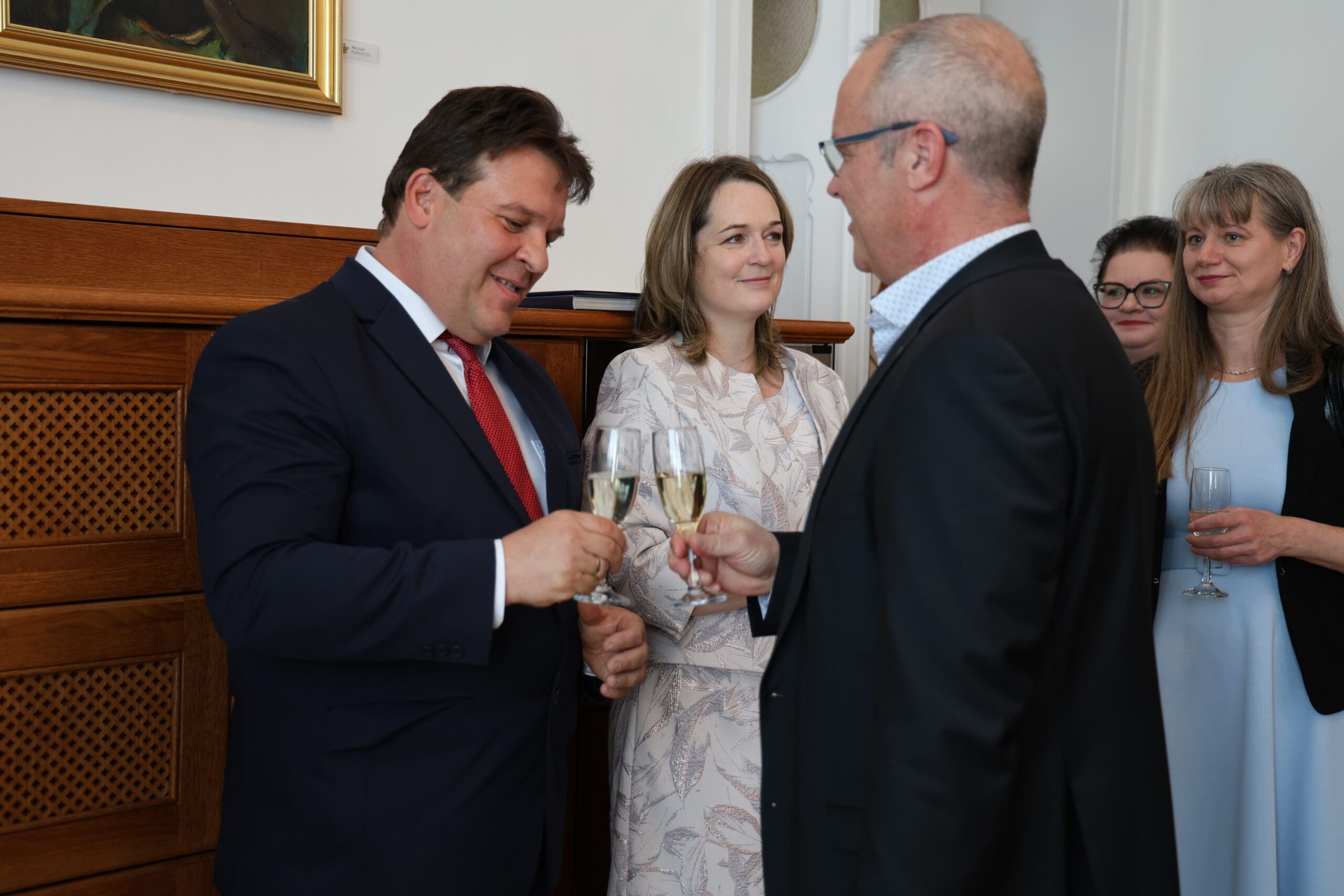 Az ünnepség pezsgős koccintással és kötetlen beszélgetéssel zárult.