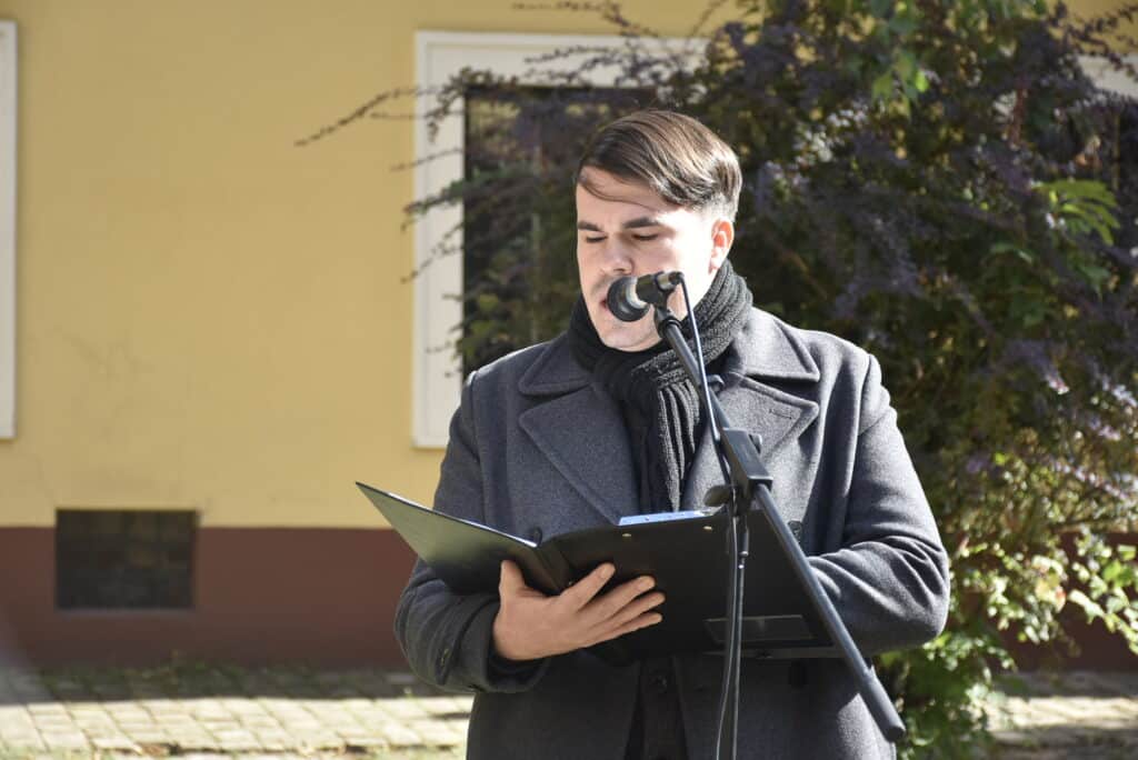 Ezt követően Tóth Csaba, a Constantinum Katolikus Óvoda, Általános Iskola, Gimnázium, Technikum és Kollégium pedagógusa idézte fel a szabadságharc leverésének tragikus napját. Szavai nem pusztán a történelem eseményeit idézték fel, hanem emberi sorsokat, érzéseket és a kivégzett tábornokok bátorságát is. Beszédében párhuzamot vont a múlt és a jelen között, rámutatva arra, hogy az igazságtalanság és a kegyetlenség minden korban felháborodást vált ki.