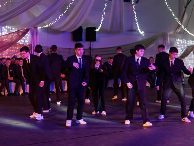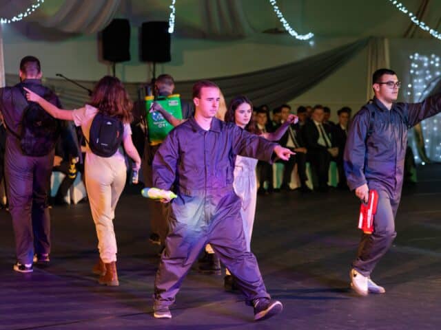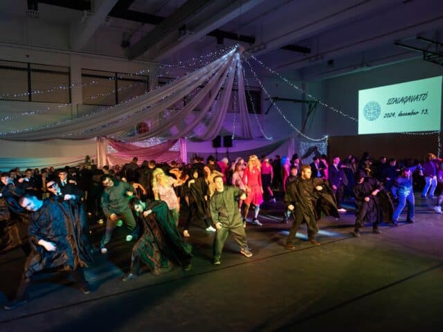Az ünnepség ezután a 12. évfolyamos tanulók közös táncos produkciójával folytatódott. A filmzenékre betanult koreográfiát Kovács Sándor, a Silver Step táncstúdió vezetője tanította be.