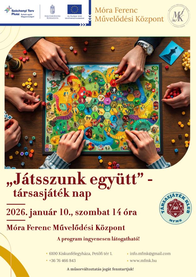 A Kiskunfélegyházi Móra Ferenc Művelődési Központ január 10-én, szombaton 14 órától indítja az év első közösségi programját. Az intézmény társasjáték délutánt szervez, amelyre minden érdeklődőt várnak.