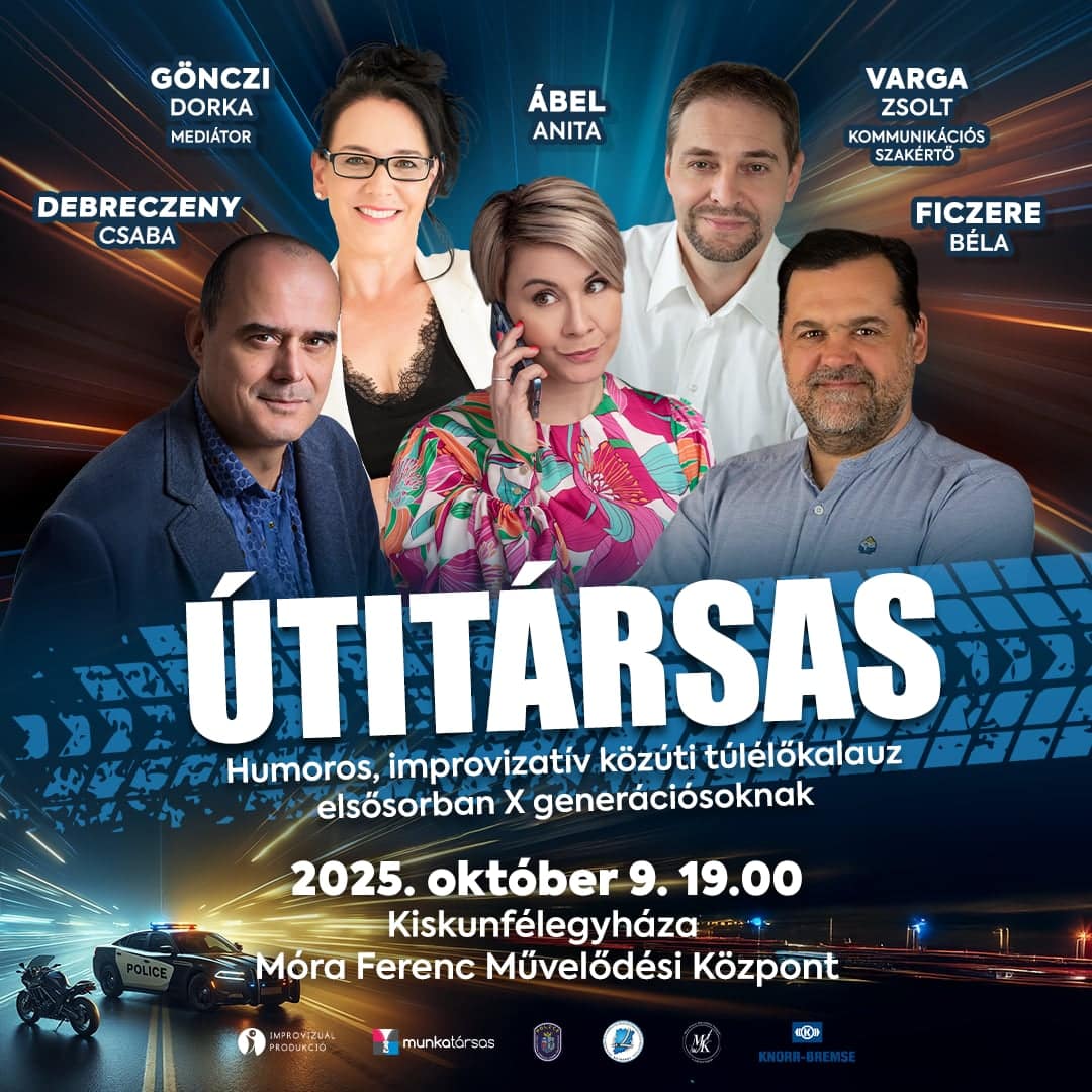 – Jó módszer, ha a gyerekek is partnernek érzik magukat. Például ha nagyfiúnak vagy nagylánynak érezheti magát, mert már az autó saját övével kötheti be magát. Ez sok családban bevált. Az idősebb korosztályt megszólítjuk, október 9-én a művelődési központban tartjuk az „Útitárs” című humoros, improvizatív közlekedési előadást. Ez elsősorban az X generációt célozza, és olyan témákat mutat be, mint a biztonsági öv, az ittas vezetés, a gyorshajtás. A cél, hogy szórakoztatva hívjuk fel a figyelmet a szabályok betartására.