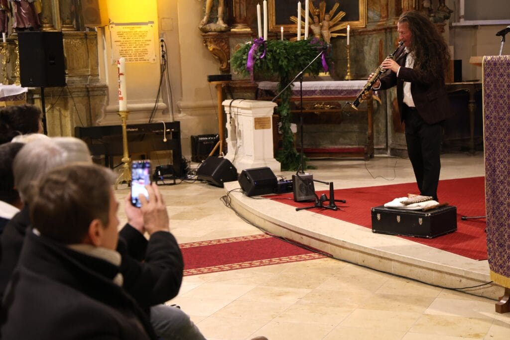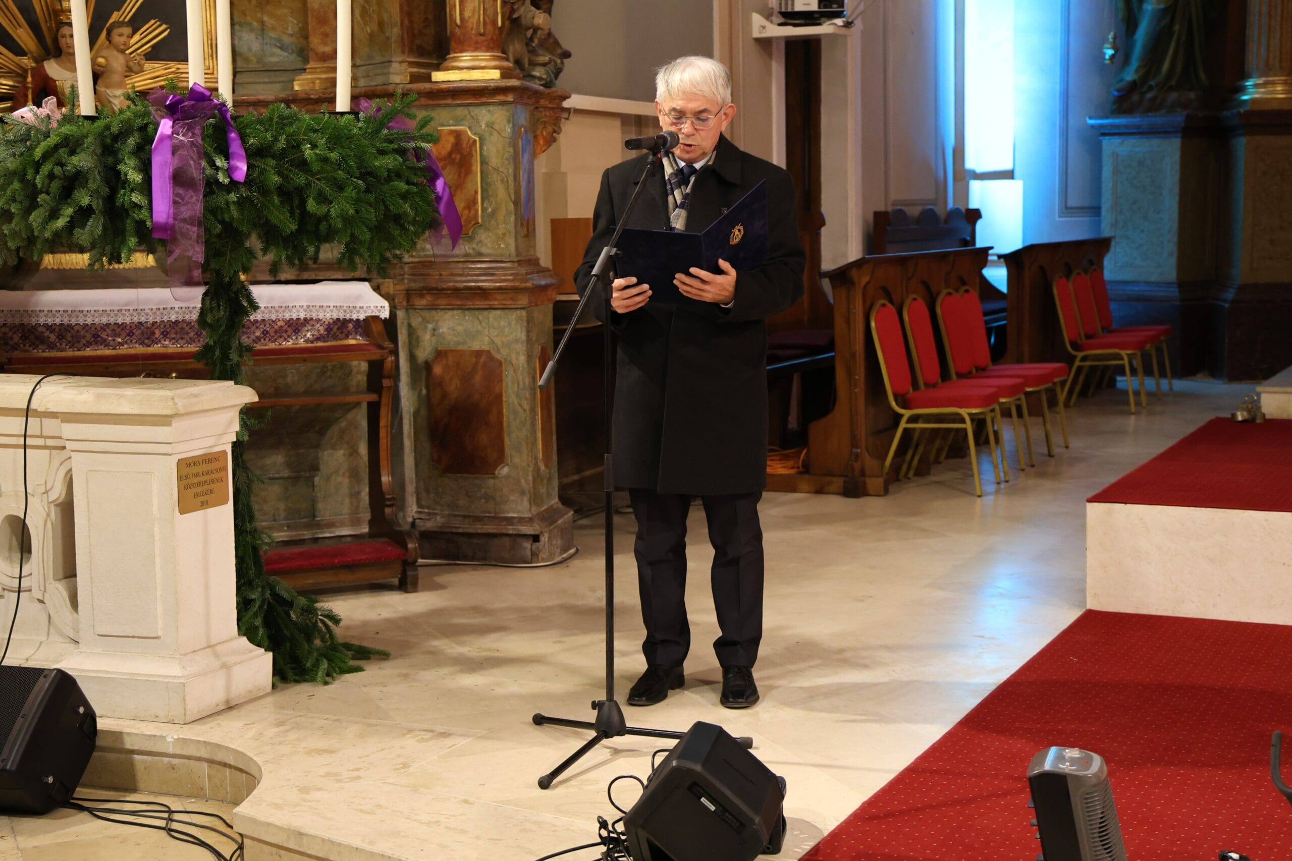 – A hétköznapok rohanása közepette ez az időszak lehetőséget ad arra, hogy megálljunk, elcsendesedjünk és figyelmünket a lényegre irányítsuk: a reményre, a szeretetre, az egymás felé forduló emberi és közösségi figyelemre. Az adventi gyertyák lángja évről évre arra emlékeztet bennünket, hogy a fény mindig képes felülírni a sötétséget és hogy közösségként is akkor vagyunk a legerősebbek, amikor összetartunk. Ma este a zene és szó ereje vezet bennünket ebben a várakozásban. St. Martin művészete híd az emberi lélek és az ünnep misztériuma között – dallamai egyszerre meghitt, felemelő és tiszta fényt hoznak közénk. Bátki Fazekas Zoltán pedig – aki költő is egyben – új hangsúlyt ad a kimondott gondolatoknak, az ünnep üzenetének, az advent örökérvényű értékeinek. Városunk számára nagy megtiszteltetés, hogy ilyen művészekkel közösen készülhetünk a karácsonyra, és hogy ma este együtt élhetjük át azt a békét és ünnepi emelkedettséget, amelyre mindannyian vágyunk. Ez az alkalom nemcsak kulturális élmény, hanem lelki ajándék is: összekapcsol bennünket, gazdagít és megerősít – fogalmazott az alpolgármester, majd megköszönte Geszler Péter plébánosnak, hogy méltó helyet biztosított a rendezvénynek, valamint Incze Attila kántornak, hogy orgona játékával hozzájárult a teljesebb zenei élményhez.