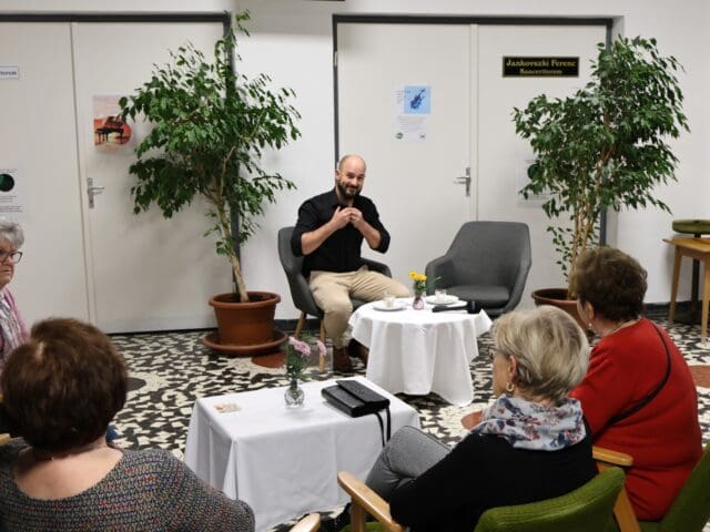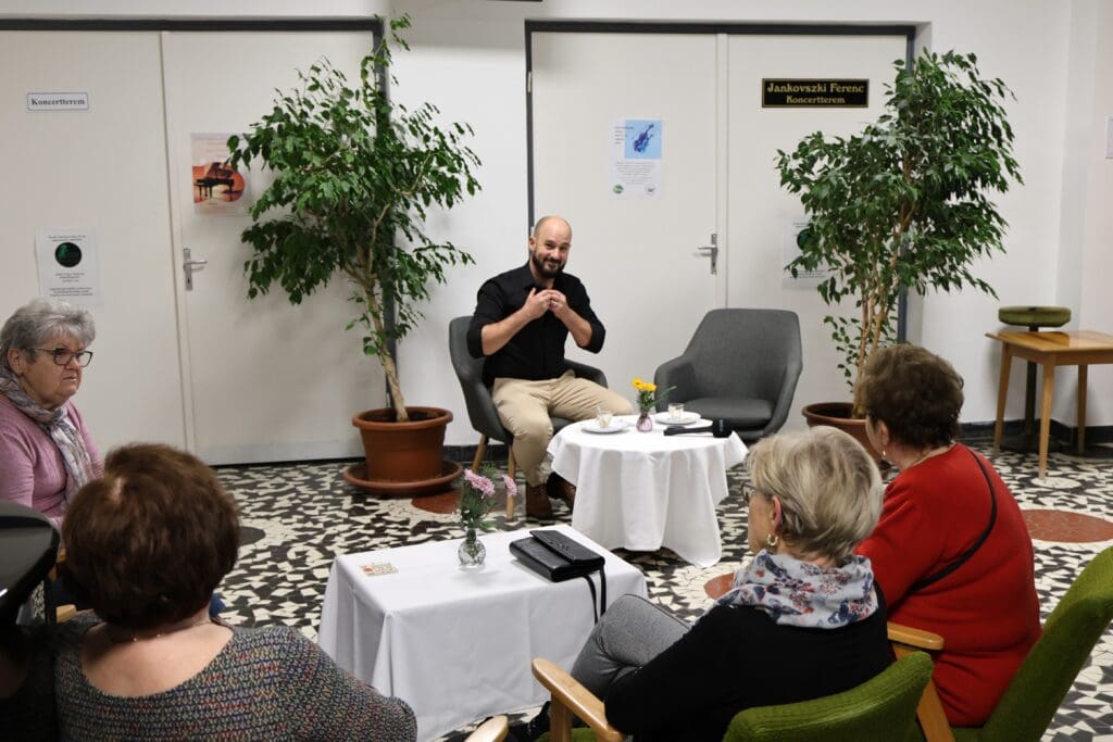 A művészeti iskola idén ősszel indította útjára azt a programsorozatot, ahol különböző művészeti ágakat, azok kiskunfélegyházi képviselőivel mutat be egy kellemes, kötetlen beszélgetés keretében. Az események alkalmával finom kávét és frissítőket szolgálnak fel a résztvevőknek. A legutóbbi beszélgetéskor Kovács Sándor életéről tudhattak meg többet a kávéházi vendégek. A táncos részletesen beszélt a mozgásformáról, a karrierje lépcsőfokairól, valamint arról, hogyan formálja már kisgyermek kortól a testkultúrát, a személyiséget a művészeti ág és milyen pozitív hozadékai vannak annak, ha valaki ezt választja.