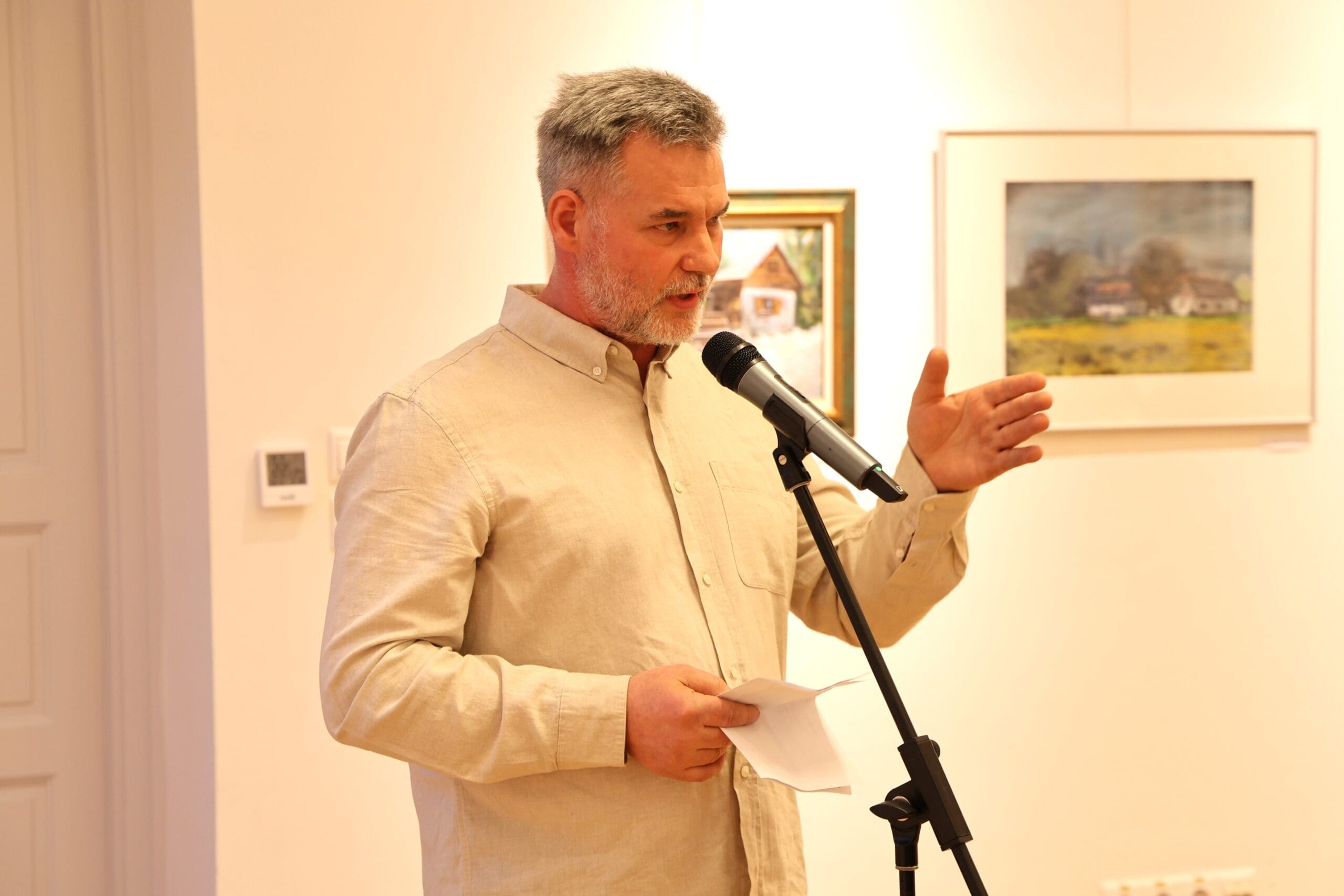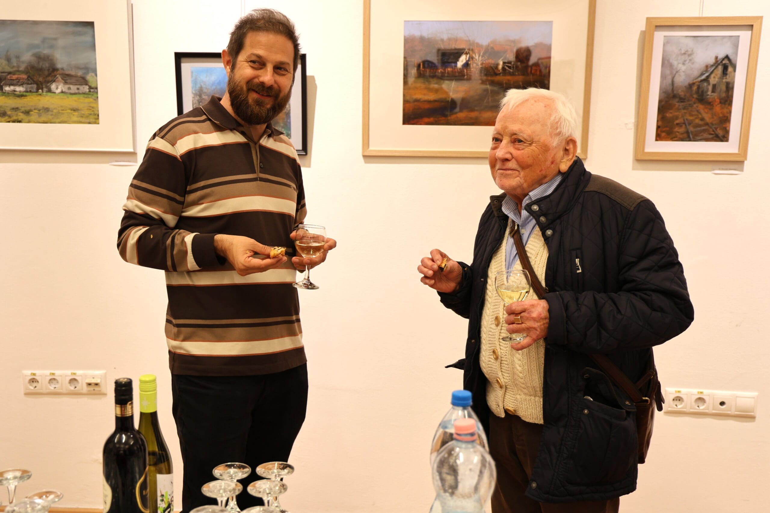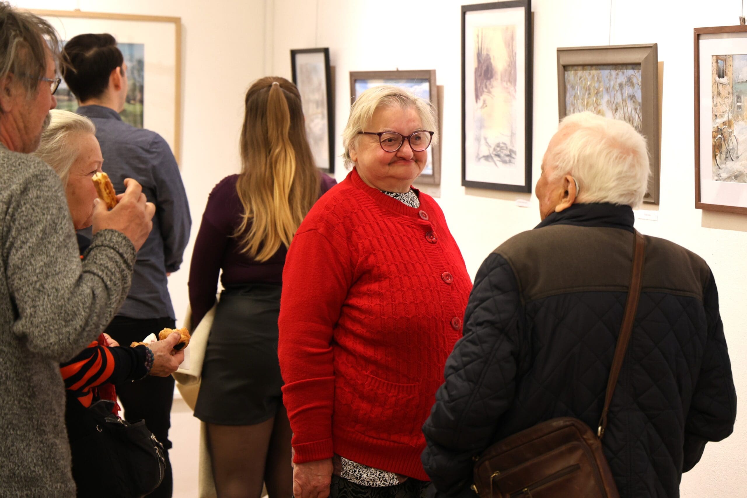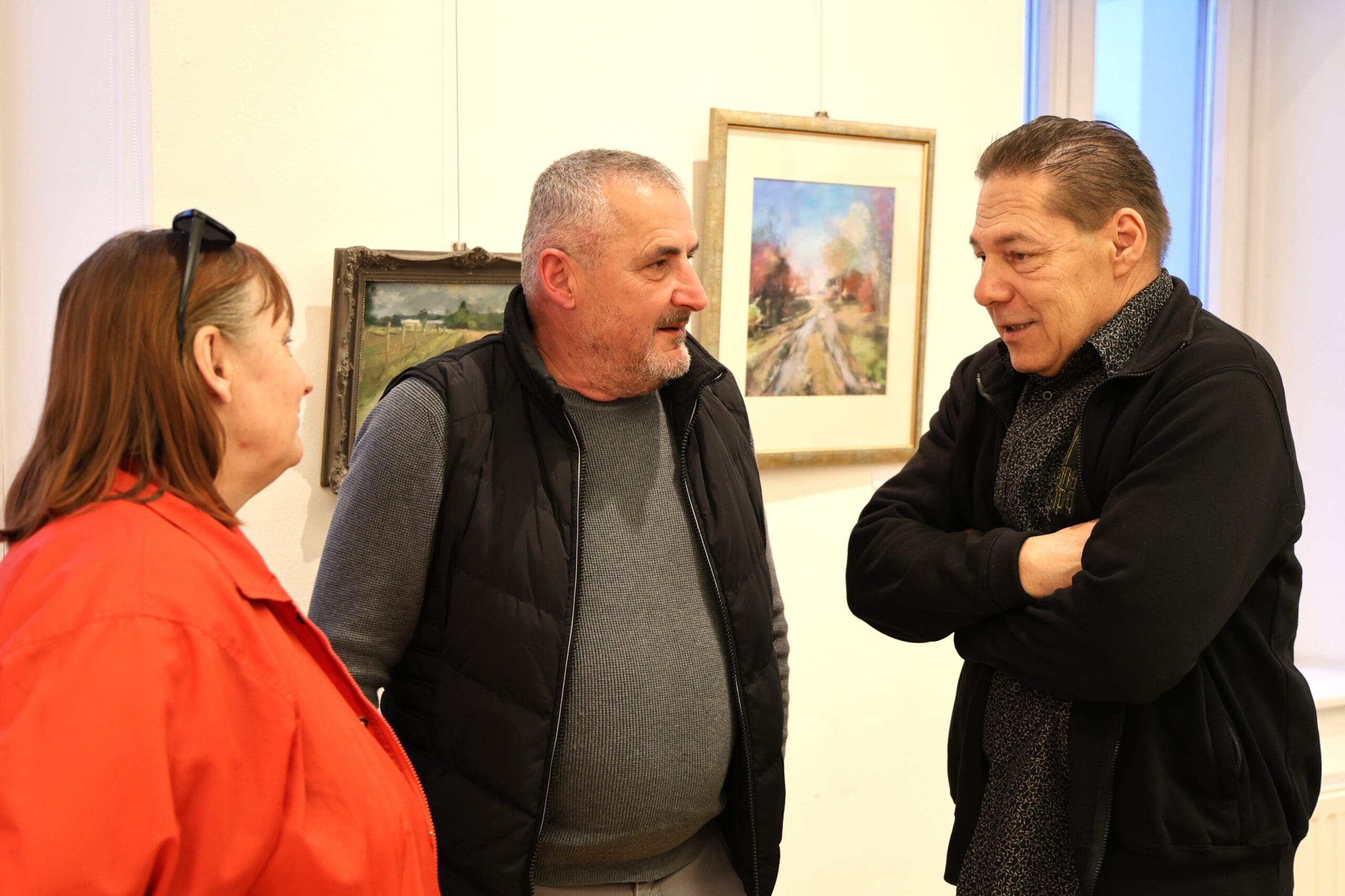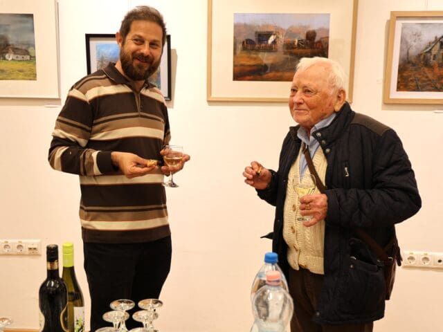 – A jelenleg kiállított képek 10 alkotó keze nyomát viselik, pasztell, paverpol, olaj, akril és akvarell technikával készültek. A szakkörnek az egyik legfontosabb mondanivalója, küldetése, hogy az ember megérkezik oda, leteszi a gondjait és belemerítkezik abba, amit csinál. Ha ezt nem teszi, akkor nem tud alkotni. Muszáj levetkőznünk ilyenkor a hétköznapok gondjait, bajait, a problémáit és utána azt vesszük észre, hogy – bár lehet, hogy rossz kedvűen érkeztem – mégis feltöltődve megyek haza. A közös érdeklődési körnek véleményem szerint az a feladata, hogy az embert egy kicsit kiszakítsa a hétköznapokból. A magunk példájából is tudom mondani, hogy nehezen jutunk el sokszor egy foglalkozásra, utána viszont azt érzi mindenki, hogy kár lett volna kihagyni. Ha egy alkotásnak vége, bekeretezik a képet, végső helyére kerül, akkor jól is érezzük magunkat és a nézőknek is adtunk valamit. Nekünk ezzel a kiállítással az volt a célunk, hogy adjunk a közönségnek, egymásnak és magunknak: egy emléket, egy képzeletbeli dolgot... Ha ez megtörténik, akkor ez jó dolog és erre törekedni kell – fogalmazott a mester, majd bemutatta az alkotóműhely tagjait, kiemelve személyes történeteiket, ismertetve technikájuk és stílusuk egyediségét.