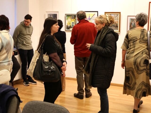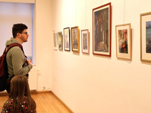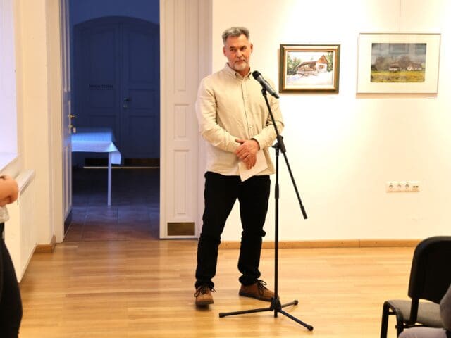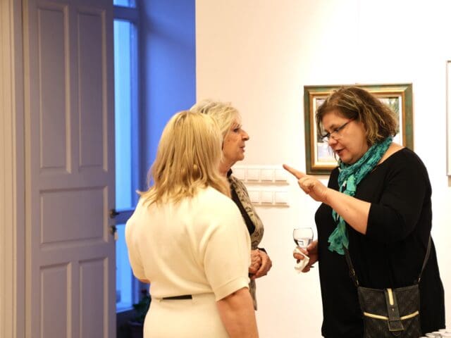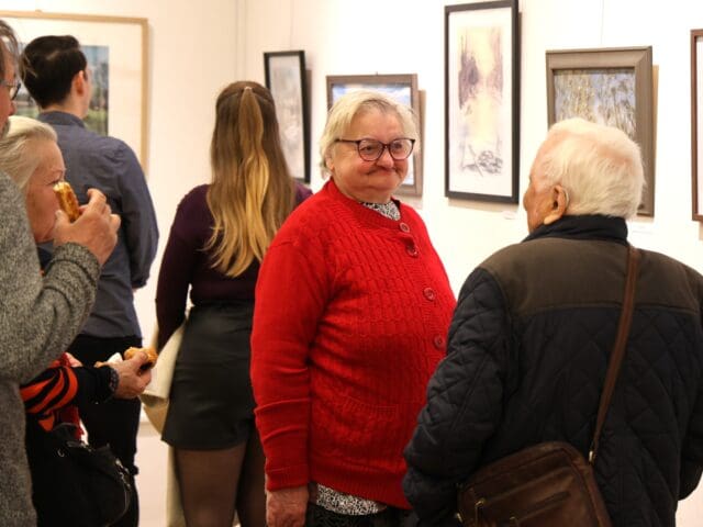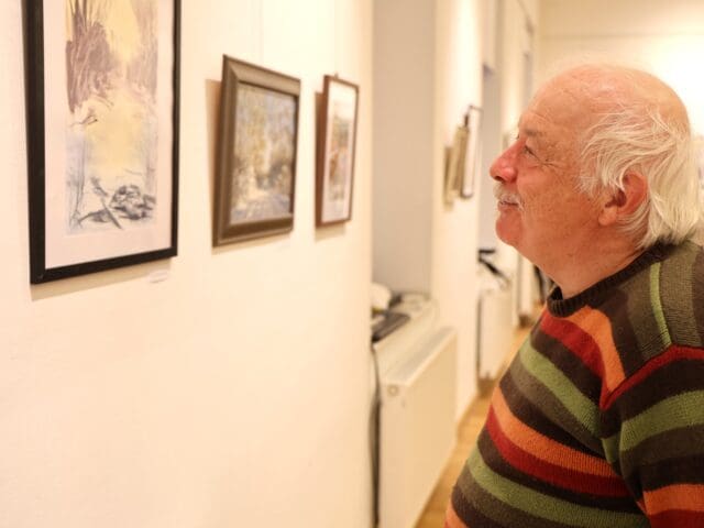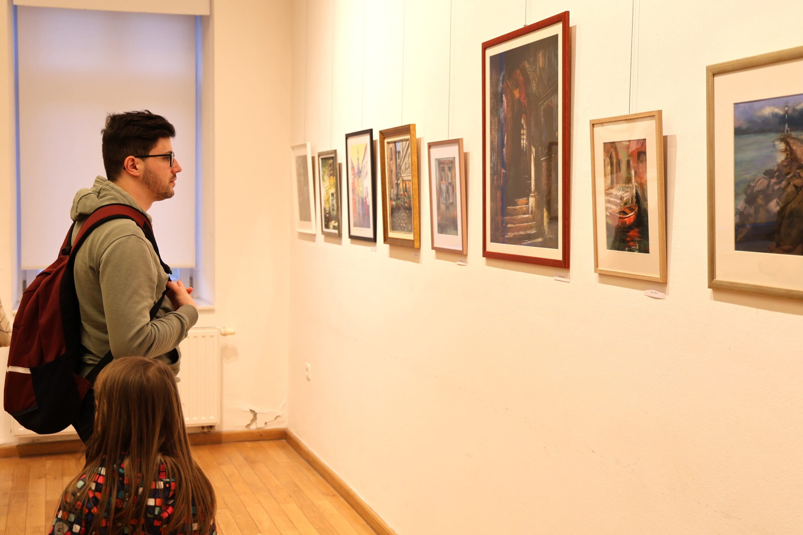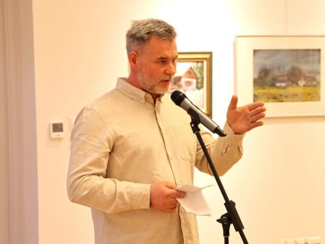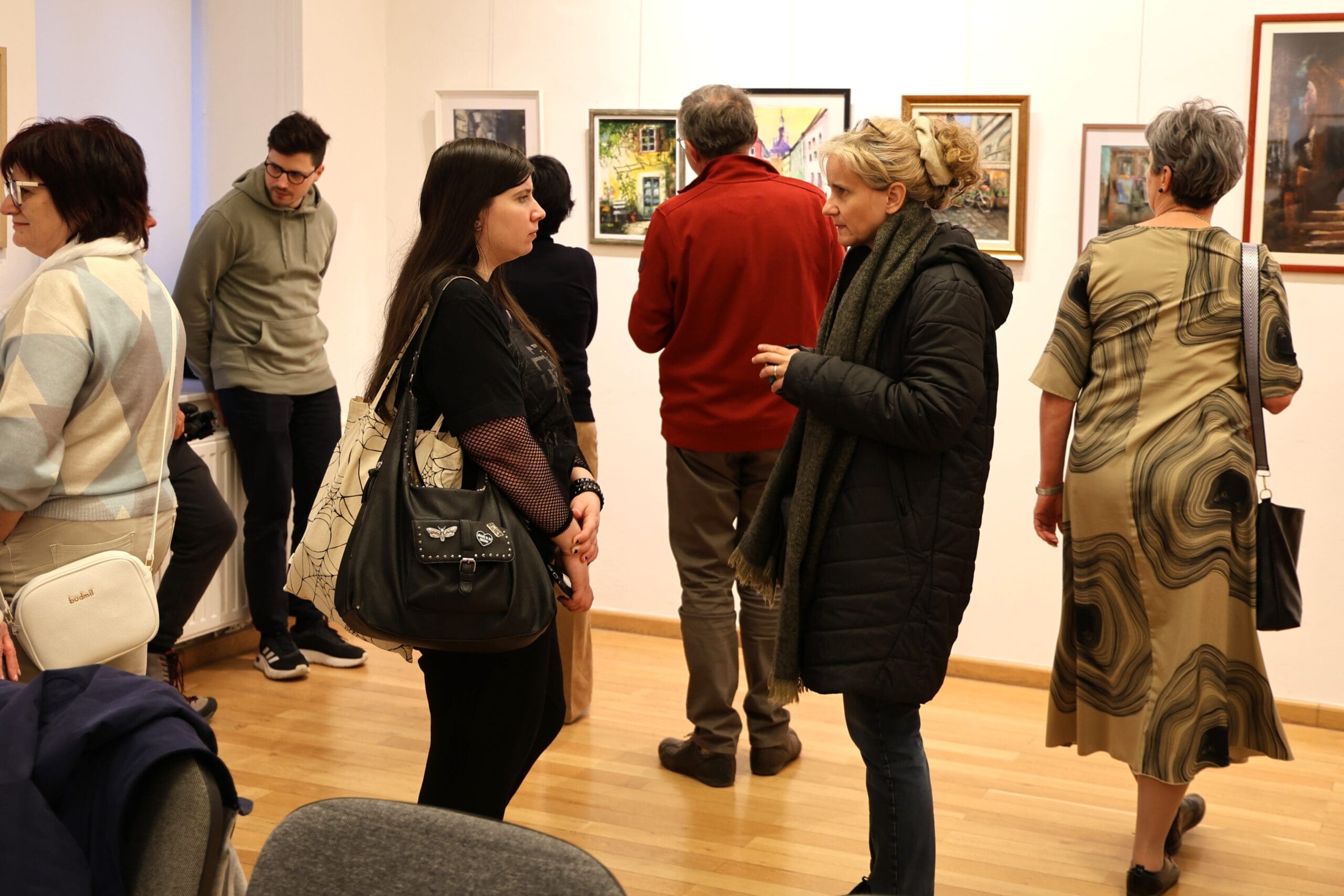 – A jelenleg kiállított képek 10 alkotó keze nyomát viselik, pasztell, paverpol, olaj, akril és akvarell technikával készültek. A szakkörnek az egyik legfontosabb mondanivalója, küldetése, hogy az ember megérkezik oda, leteszi a gondjait és belemerítkezik abba, amit csinál. Ha ezt nem teszi, akkor nem tud alkotni. Muszáj levetkőznünk ilyenkor a hétköznapok gondjait, bajait, a problémáit és utána azt vesszük észre, hogy – bár lehet, hogy rossz kedvűen érkeztem – mégis feltöltődve megyek haza. A közös érdeklődési körnek véleményem szerint az a feladata, hogy az embert egy kicsit kiszakítsa a hétköznapokból. A magunk példájából is tudom mondani, hogy nehezen jutunk el sokszor egy foglalkozásra, utána viszont azt érzi mindenki, hogy kár lett volna kihagyni. Ha egy alkotásnak vége, bekeretezik a képet, végső helyére kerül, akkor jól is érezzük magunkat és a nézőknek is adtunk valamit. Nekünk ezzel a kiállítással az volt a célunk, hogy adjunk a közönségnek, egymásnak és magunknak: egy emléket, egy képzeletbeli dolgot... Ha ez megtörténik, akkor ez jó dolog és erre törekedni kell – fogalmazott a mester, majd bemutatta az alkotóműhely tagjait, kiemelve személyes történeteiket, ismertetve technikájuk és stílusuk egyediségét.