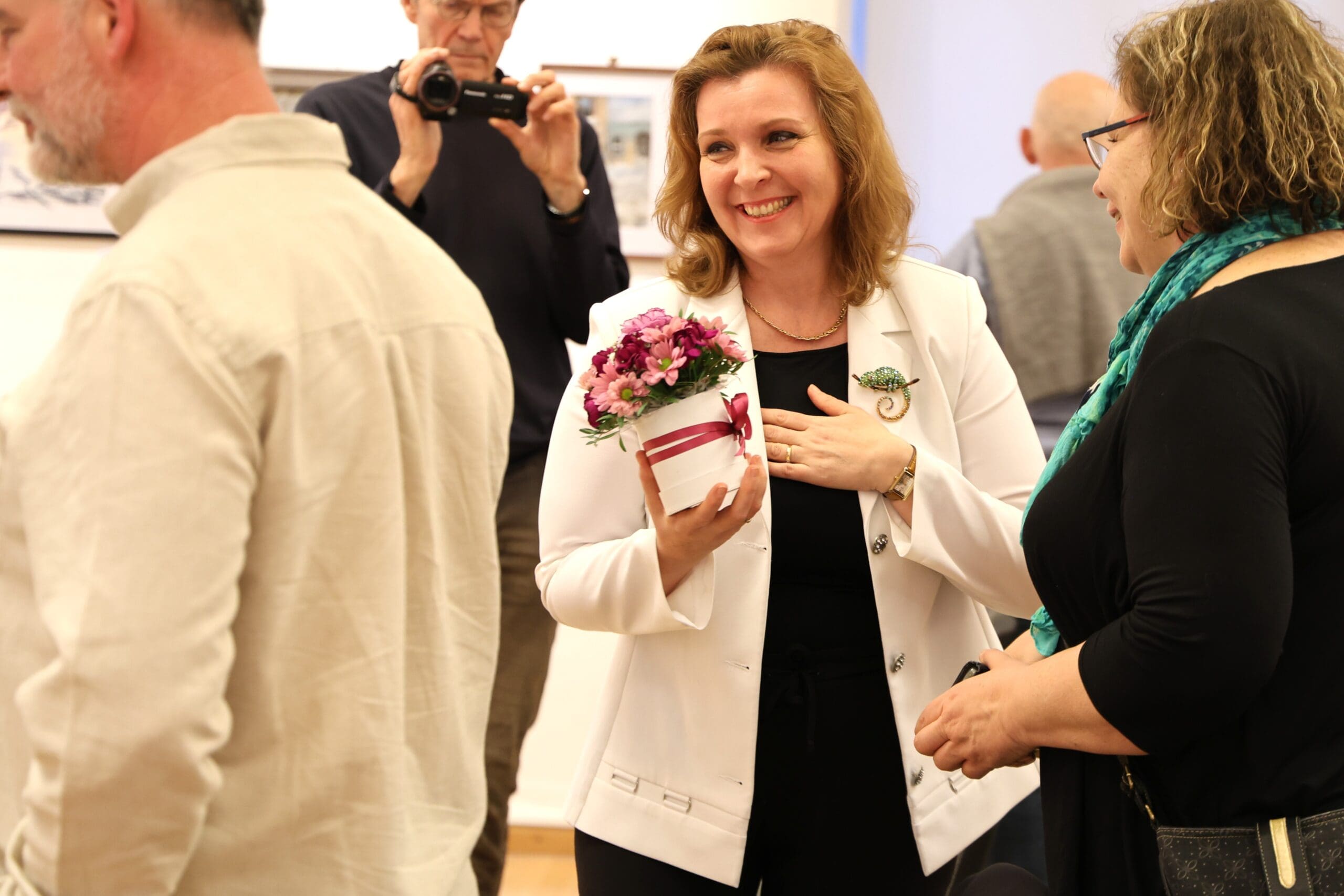 A megjelenteket Abonyi Szilvia, a könyvtár igazgatója köszöntötte, aki bemutatta az alkotóműhely művészeit: Csomák Lászlónét, Bognár Nórát, Fejes Anettát, Kövesdiné Hefkó Reginát, Tüske Tímeátt, Fábián Lászót, Rozsnyói Zoltánnét, Nyikosné Hulicsár Évát, dr. Benedek Magdolnát és mesterüket, Ziegler-Németh Ferencet.