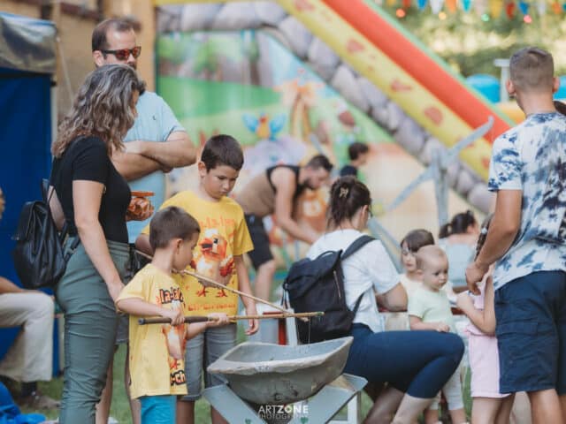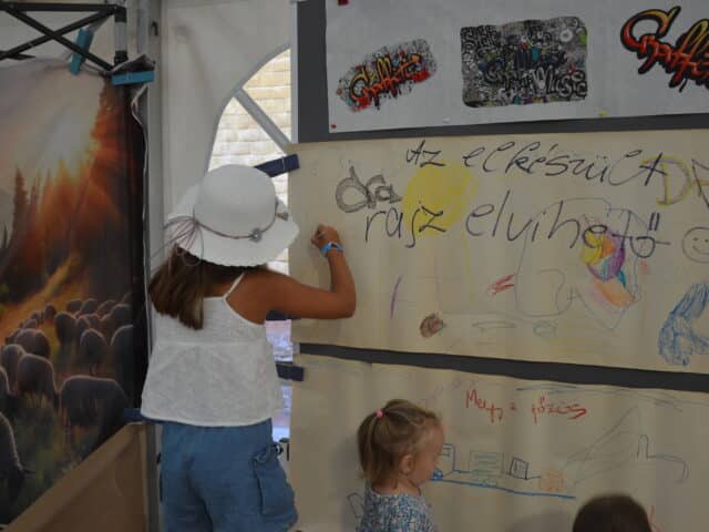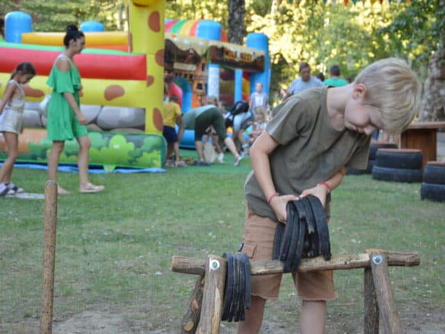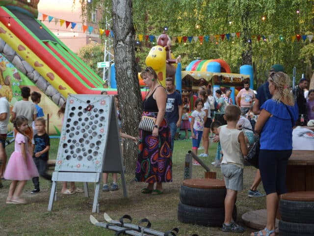 Kicsik és nagyok örömmel próbálták ki az ugrálóvárat és a népi fajátékokat, köztük a különböző ügyességi és társasjátékokat. A sok mosolytól és nevetéstől igazán jó hangulat kerekedett, a nyári szünetben pedig jó alkalom nyílt arra is, hogy az óvodás és iskolás társak újra egymásra találjanak, és közösen játszanak.