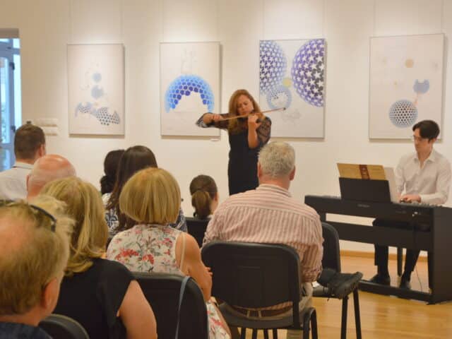 A megnyitó művészi hangulatáról Szeriné Bíró Ágnes és Varga Viktor, a Kiskunfélegyházi Balázs Árpád Alapfokú Művészeti Iskola pedagógusai gondoskodtak.