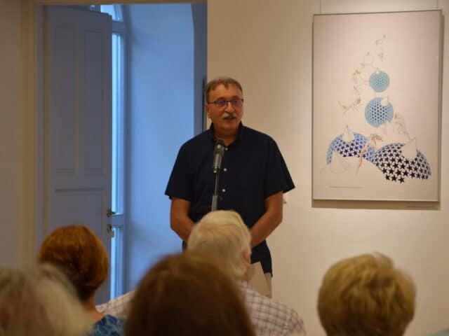 Beszédében megemlékezett Csenki Tibor grafikusművészről is, aki nemrég hunyt el, és aki szoros barátságot ápolt Bodor Miklóssal.