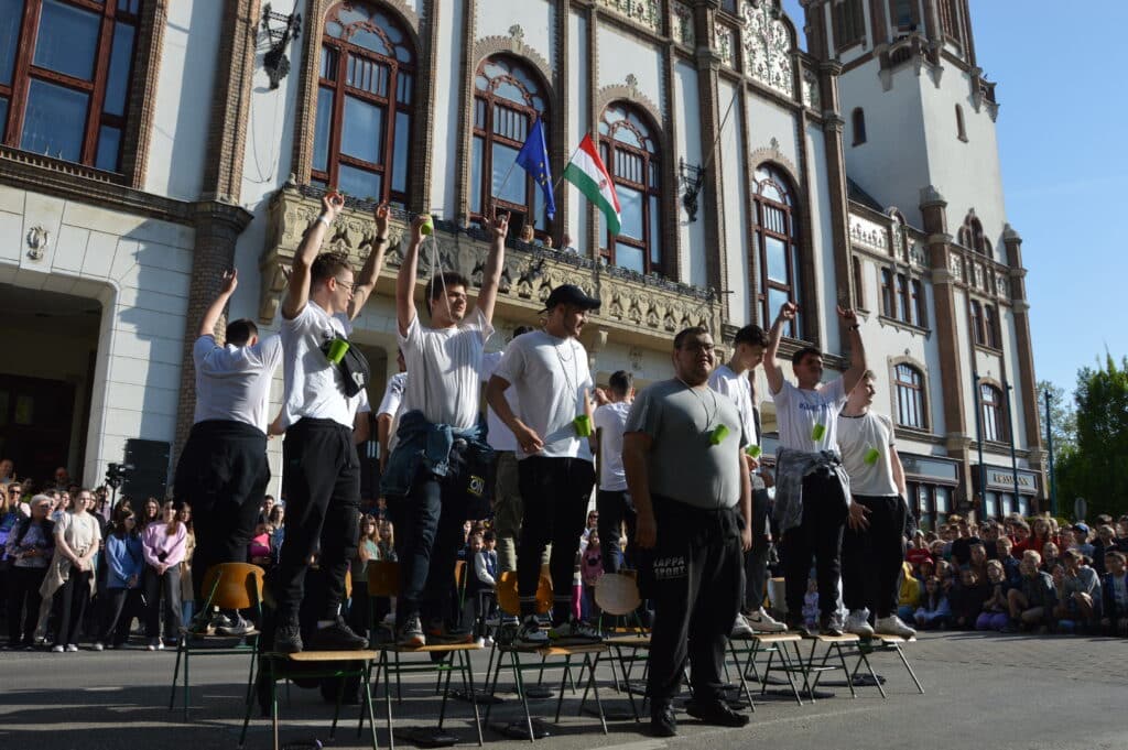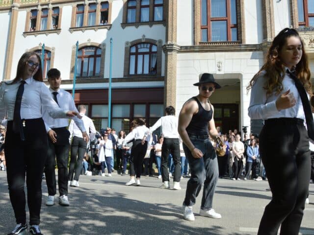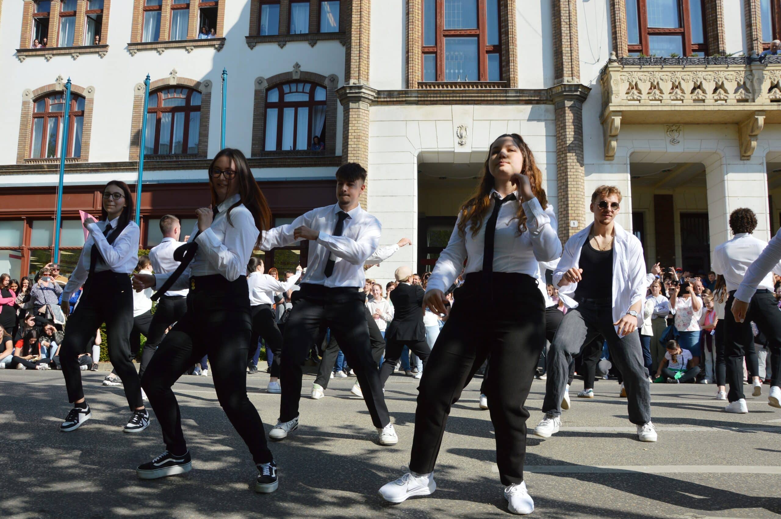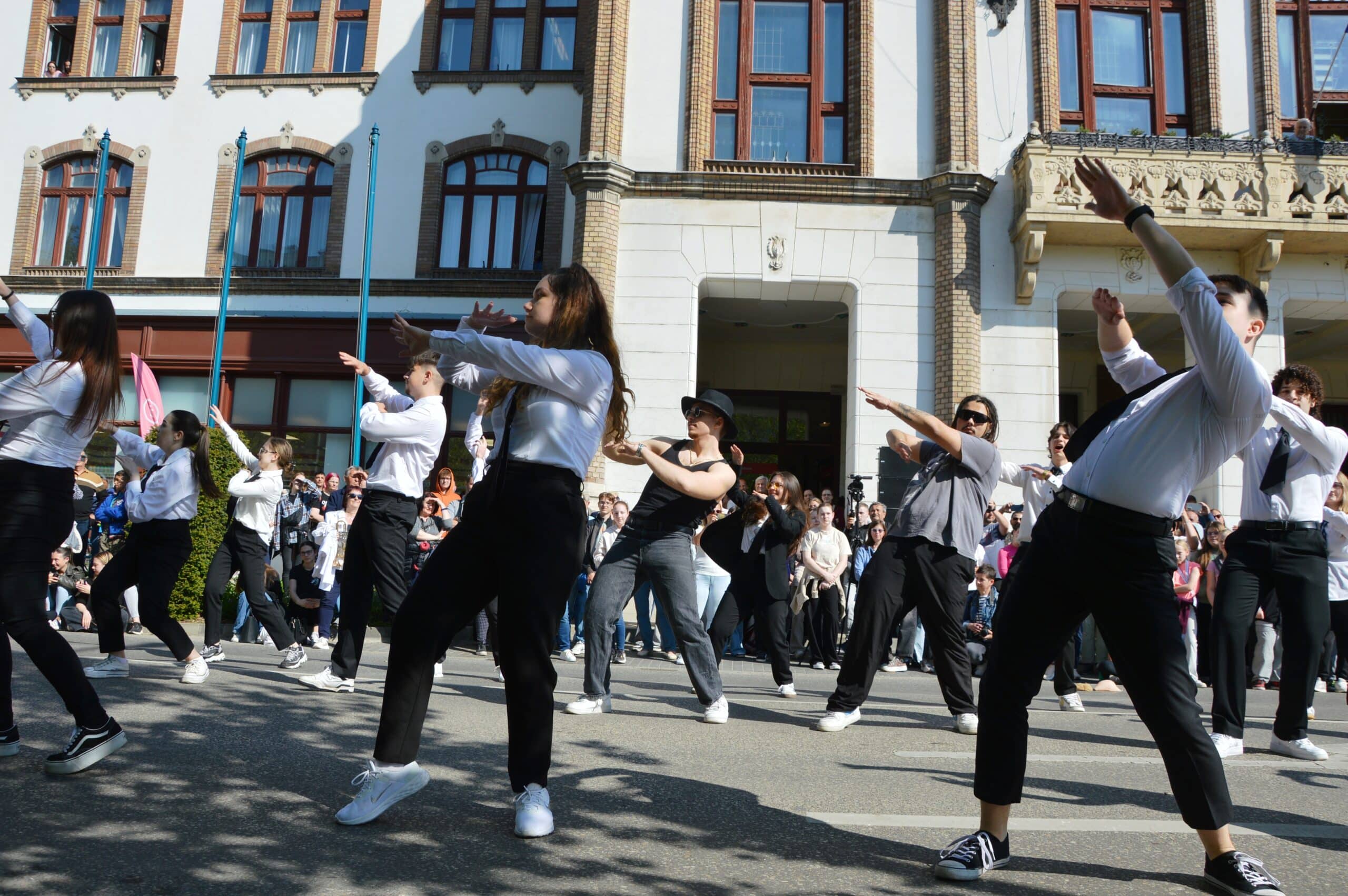 16 végzős osztály mutatkozott be különféle produkciókkal a Zöld napon, április 29-én, kedden délelőtt a Kossuth utcán.