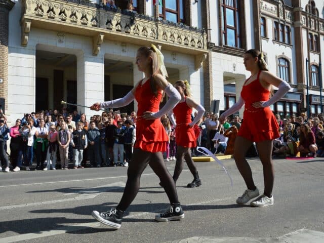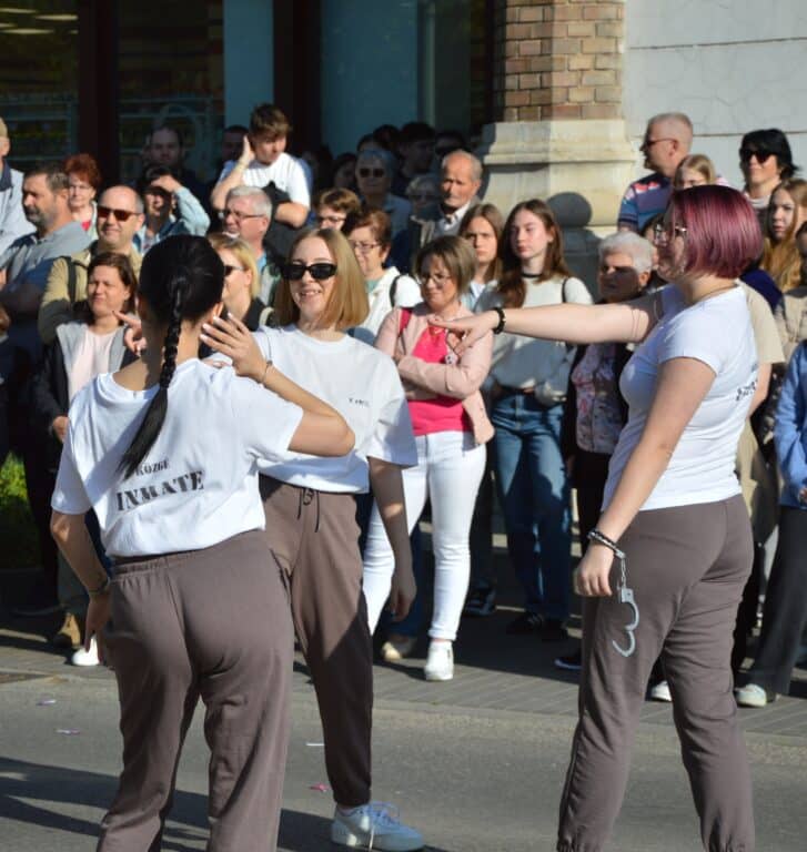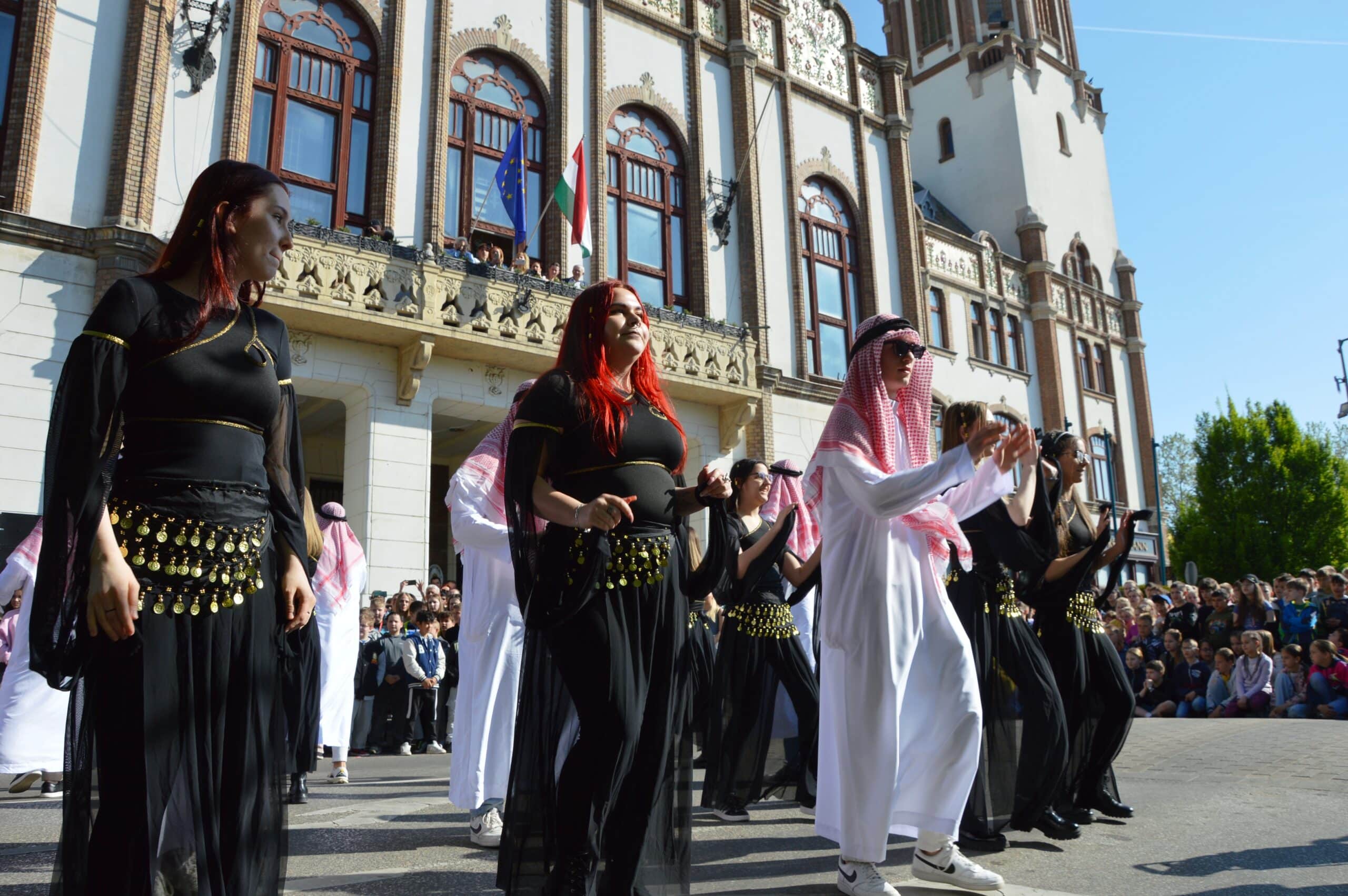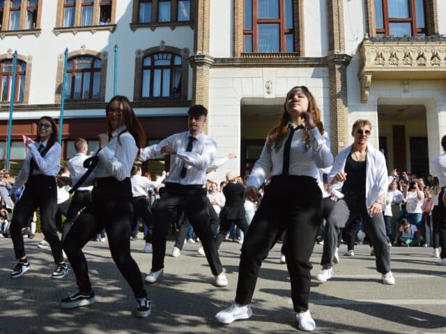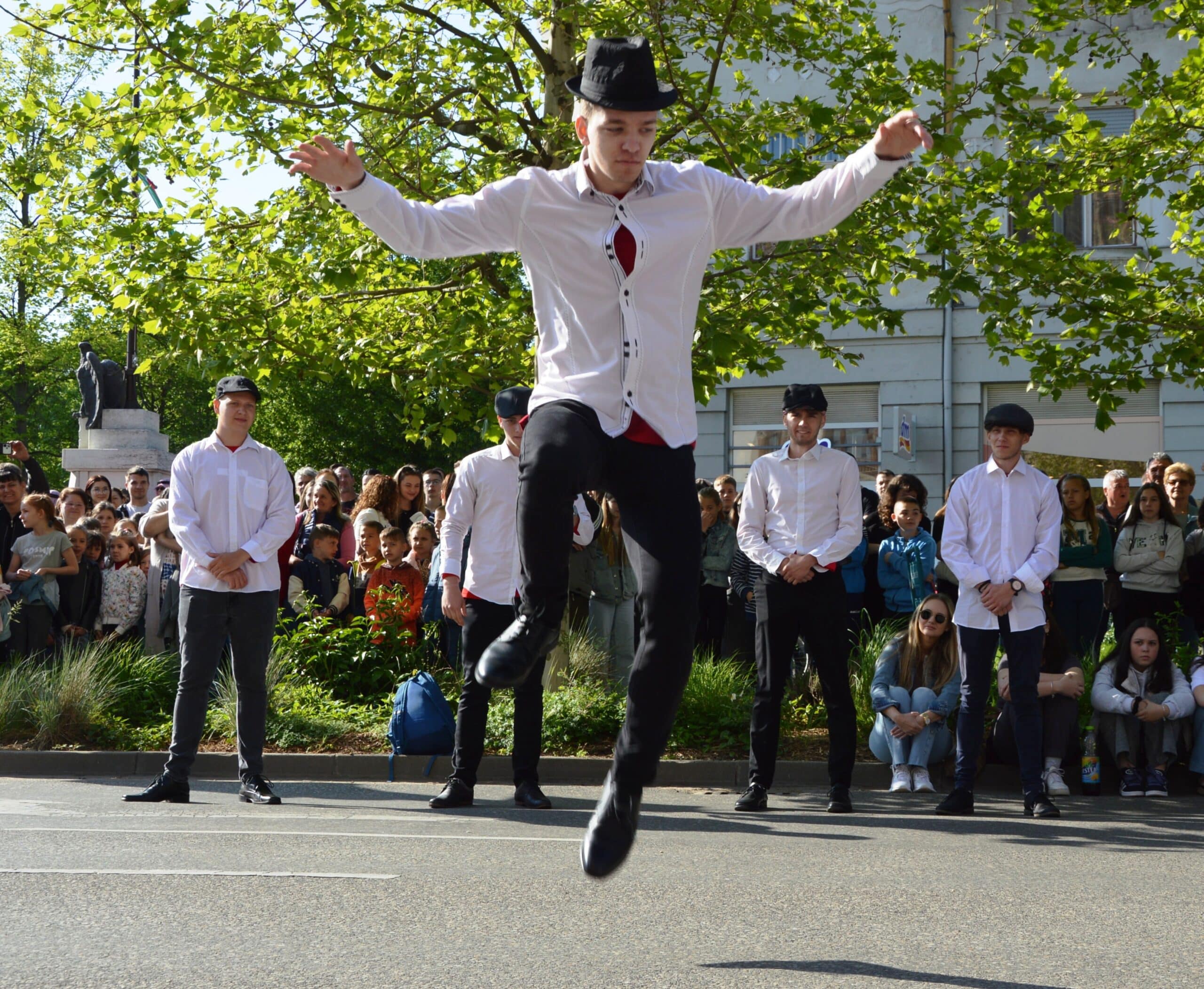 16 végzős osztály mutatkozott be különféle produkciókkal a Zöld napon, április 29-én, kedden délelőtt a Kossuth utcán.