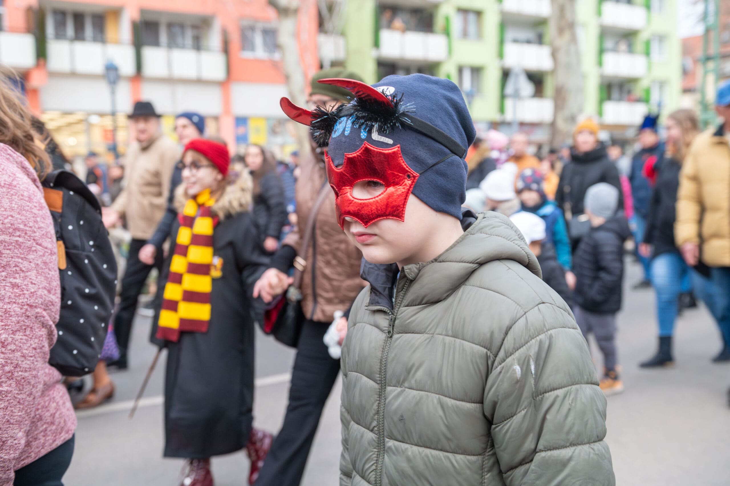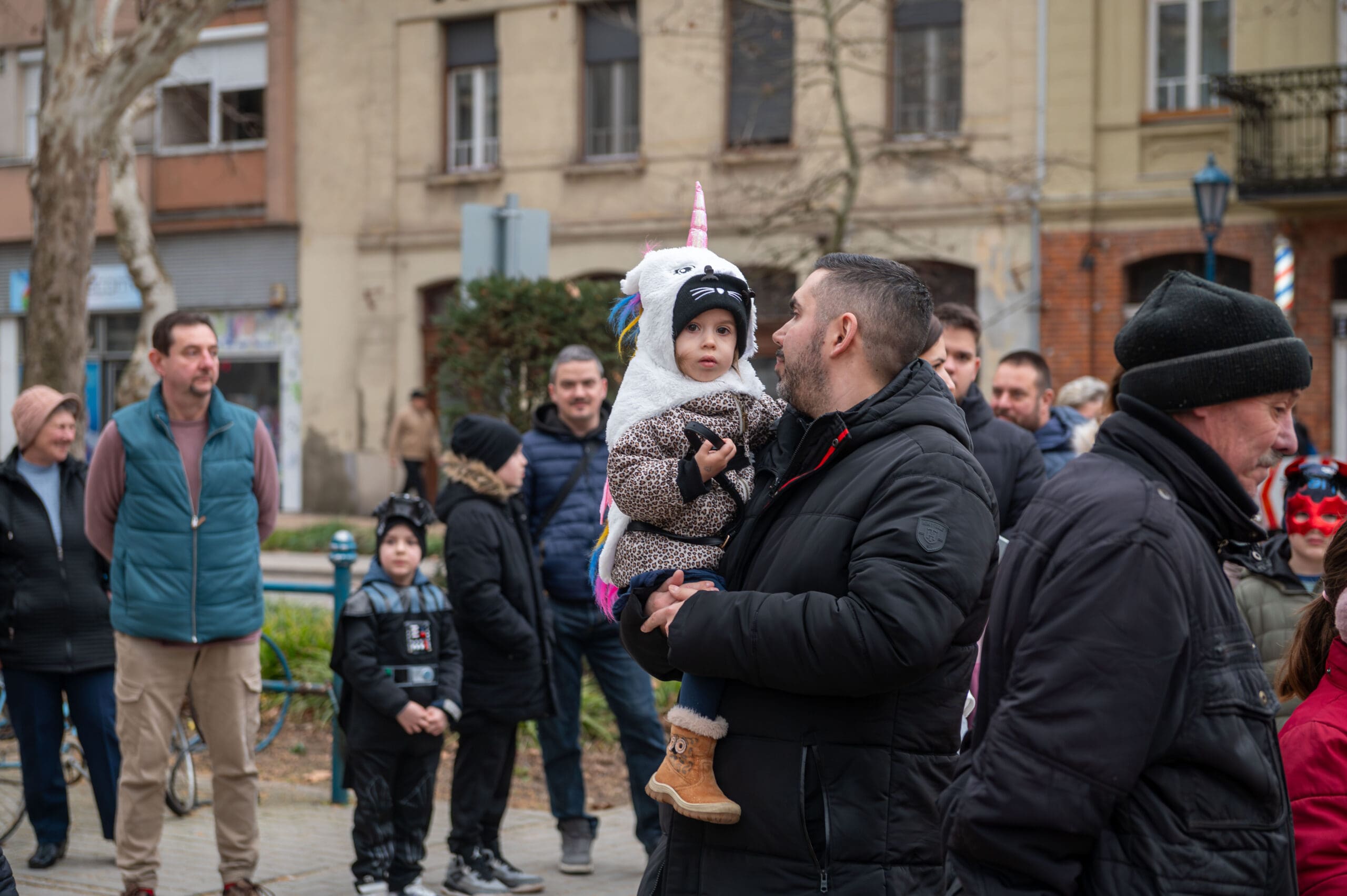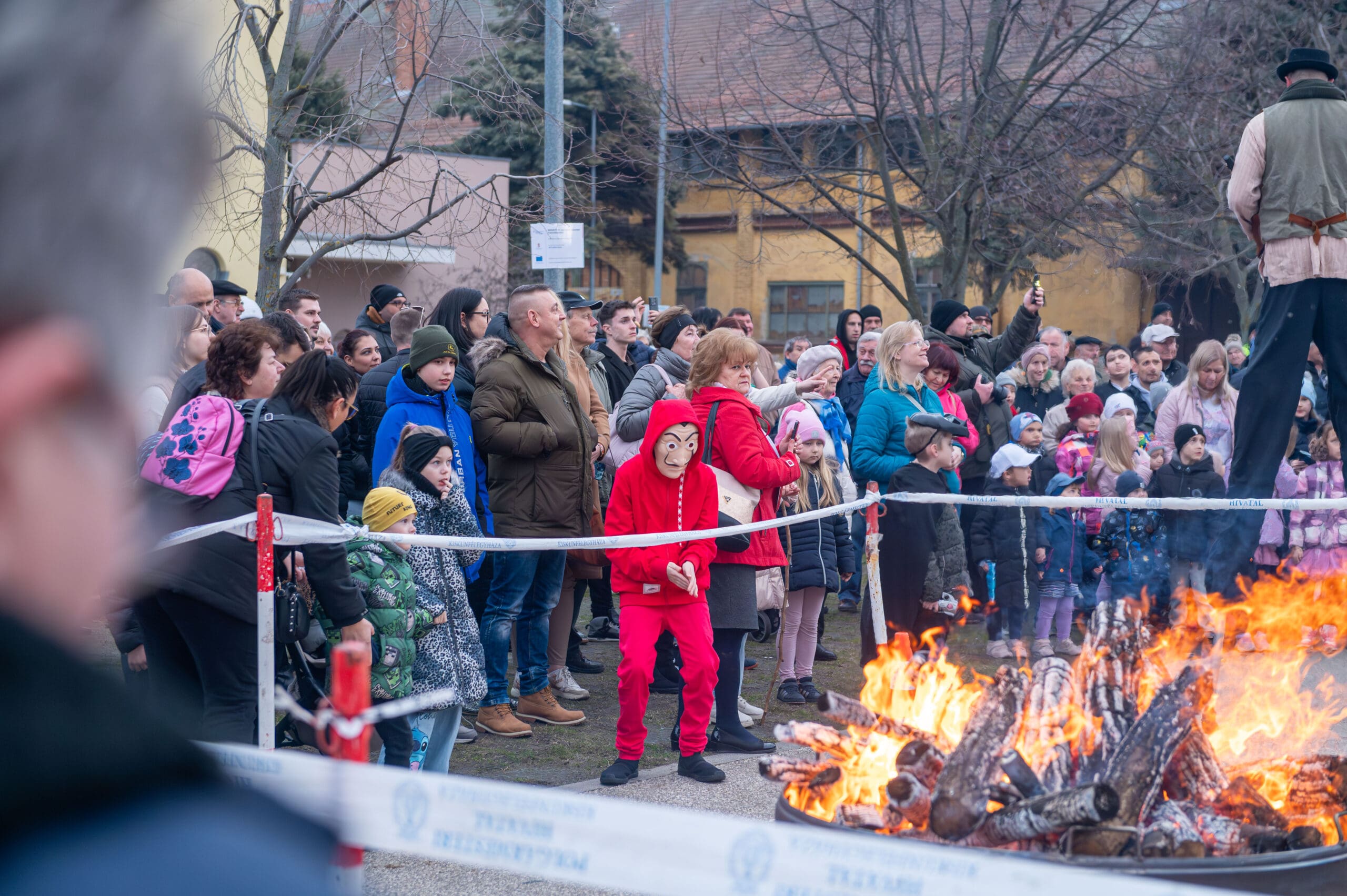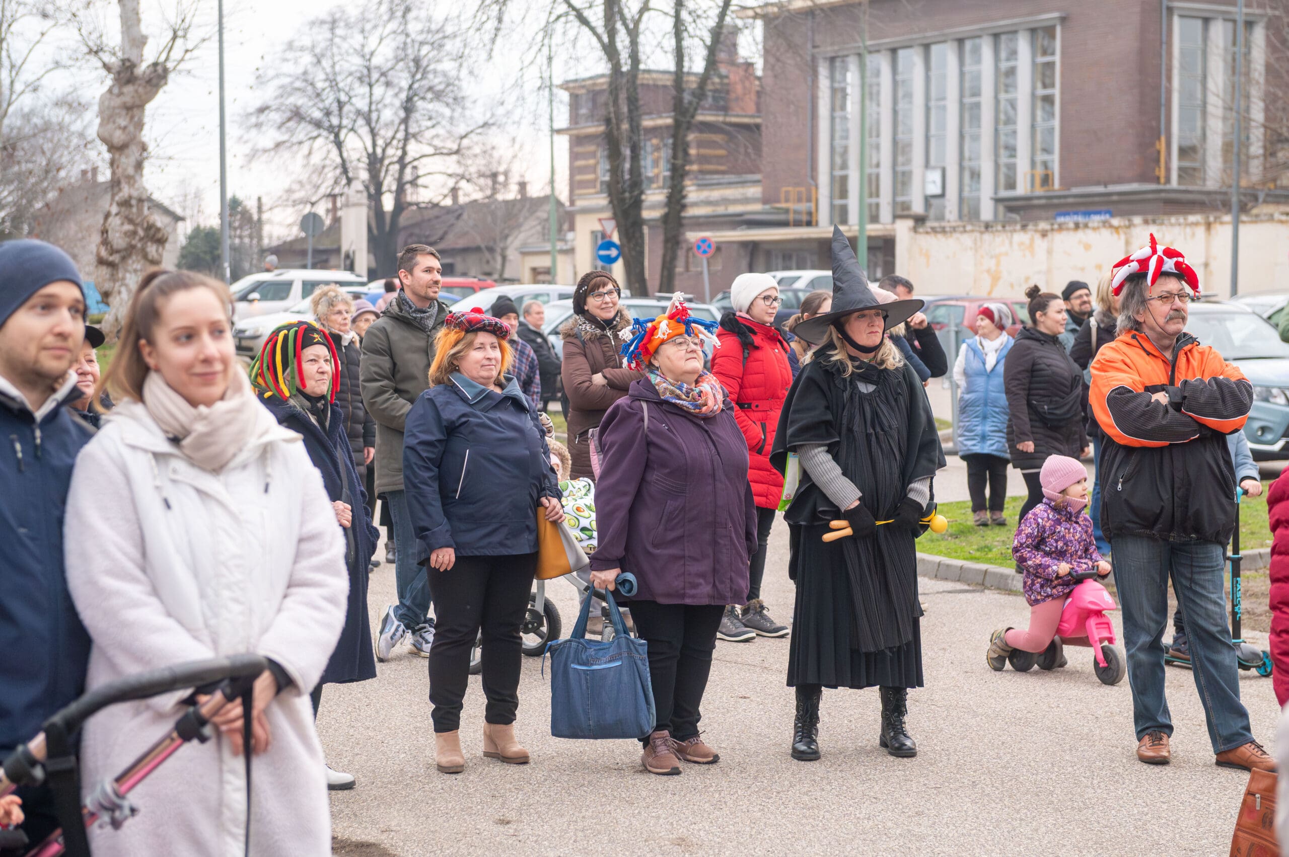 A mulatság maskarás felvonulással indult a Spar parkolóból. A várakozás perceiben mindenki megcsodálhatta az idei Télboszorkát, megmutathatta jelmezét, és megírhatta saját bánatcéduláját is. A papírdarabokra felkerültek a kisebb-nagyobb gondok, amelyeket később a Télboszorka zsákjába rejtettek, hogy a közös tánc hevében együtt égjenek el a máglyán. A tömegben boszorkányok, bohócok, tűzoltók, szuperhősök, tündérek, egyszarvúk és mindenféle állatjelmezek színes kavalkádja tűnt fel.