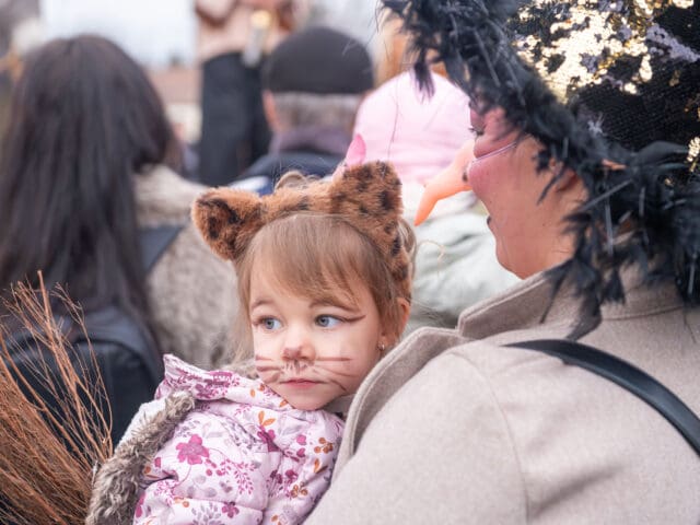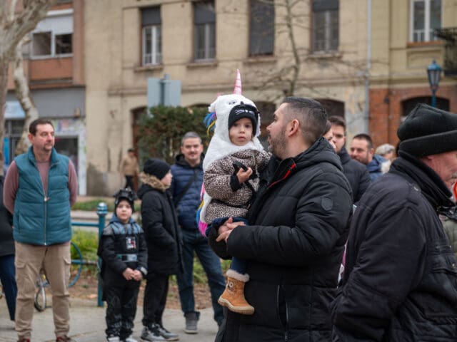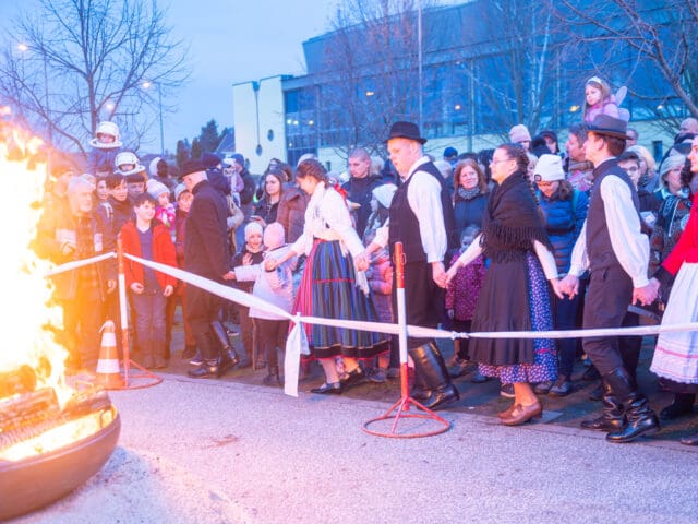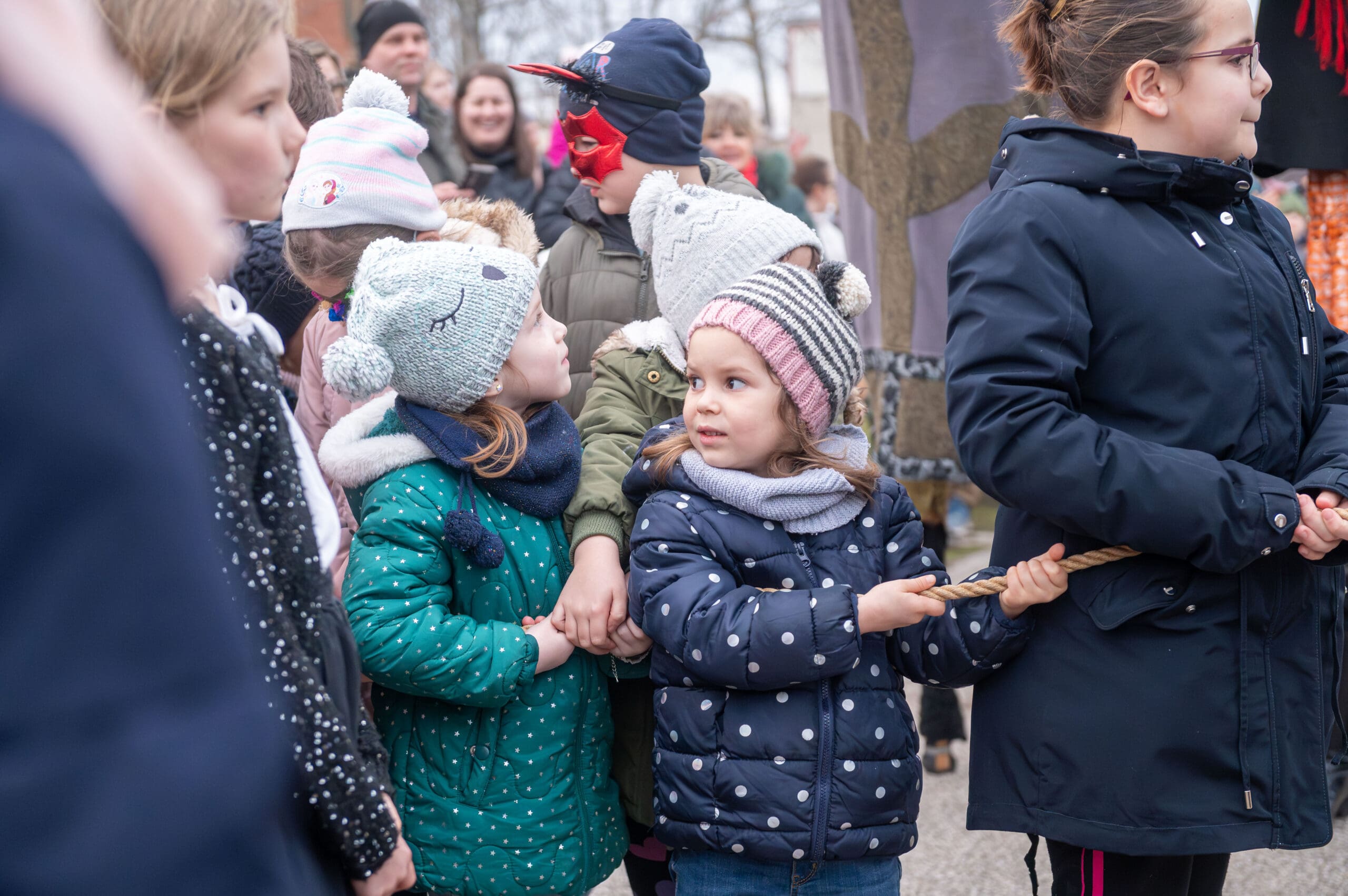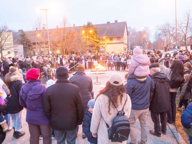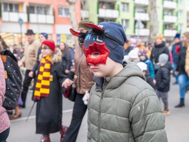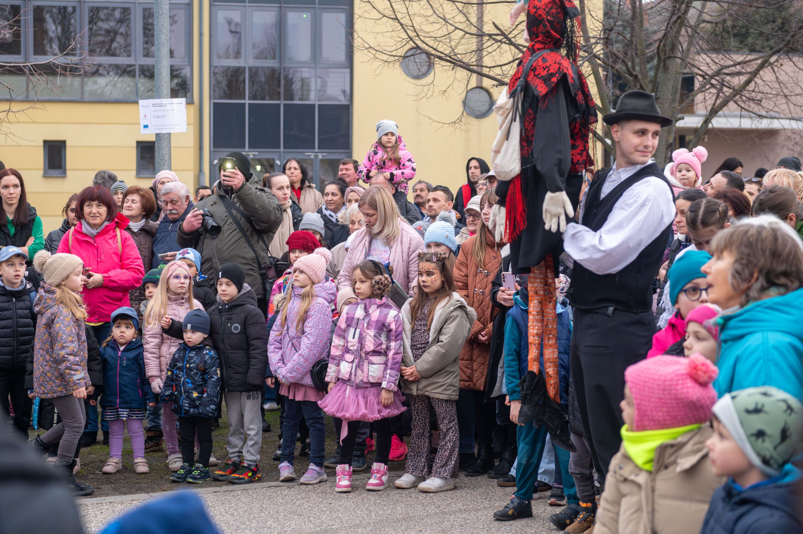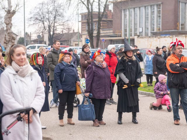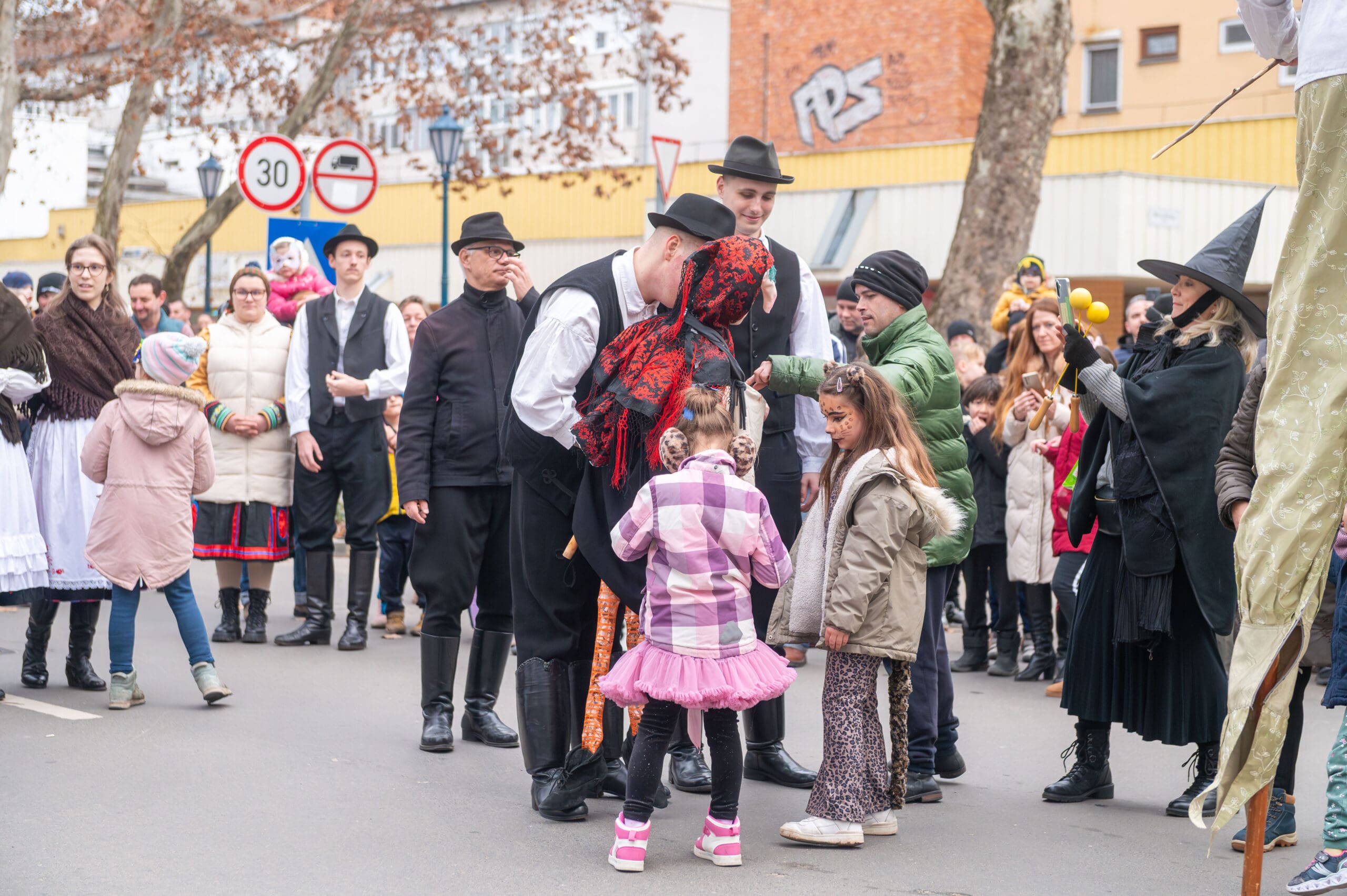 A mulatság maskarás felvonulással indult a Spar parkolóból. A várakozás perceiben mindenki megcsodálhatta az idei Télboszorkát, megmutathatta jelmezét, és megírhatta saját bánatcéduláját is. A papírdarabokra felkerültek a kisebb-nagyobb gondok, amelyeket később a Télboszorka zsákjába rejtettek, hogy a közös tánc hevében együtt égjenek el a máglyán. A tömegben boszorkányok, bohócok, tűzoltók, szuperhősök, tündérek, egyszarvúk és mindenféle állatjelmezek színes kavalkádja tűnt fel.