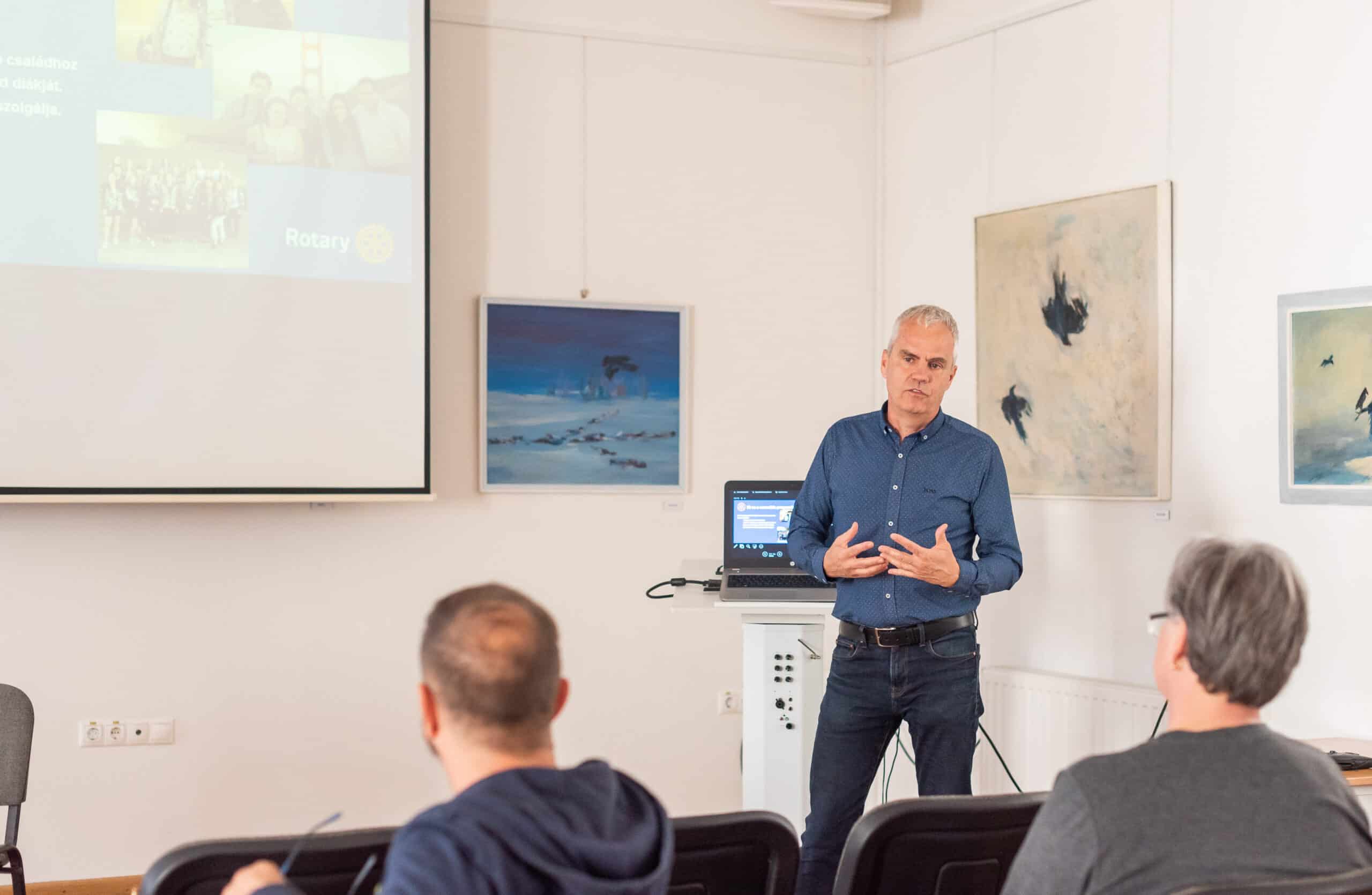 Varga Tibortól megtudtuk, hogy a Rotary szervezet 1905-ban alakult Chicago-ban, ma már a Rotary International több mint 200 országban, 1 220 000 taggal, 538 körzetben, 34 500 klubot egyesít. Célja és törekvése, hogy közelebb hozza az embereket egymáshoz. Tevékenykednek a környezetvédelem, az oktatás és gyermekvédelem területén is. Magyarországon 56 klub több mint 1100 taggal van jelen, a Kecskeméti Rotary Club 23 főt számlál. A kecskeméti klubnak több éves jótékonysági megmozdulása is van, ilyenek többek között a karácsonyi adománygyűjtések és adakozások, az integrált játszótér létrehozása, Rotary bál szervezése. Mindezek mellett népszerű cserediák programjuk is. A javarészt tengerentúli programjaik két fő csoportra bonthatók, az egyik a rövid idejű (STEP) és a hosszú utas program (LTEP). Előbbi ismérvei, hogy a Rotarynak köszönhetően két különböző országbeli családot összehoznak, a diákok ezekhez a családokhoz utaznak 1 – 1,5 hónapra. Ez a program inkább az ország megismerését szolgálja. A hosszú utas cserediák program célországai: Brazília, Mexikó, Tajvan, Japán, USA, Kanada. Itt egy iskolai évet tölt el a diák a fogadó családoknál (szeptembertől- júniusig) és részt vesz a helyi oktatásban. A cserediák a meghatározott szabályok betartása mellet megismeri adott ország nyelvét, szokásait, mindennapjait, oktatását. Szervezett utazásokon vehet rész, amit a családok, a klub vagy a disctrict szervez.
