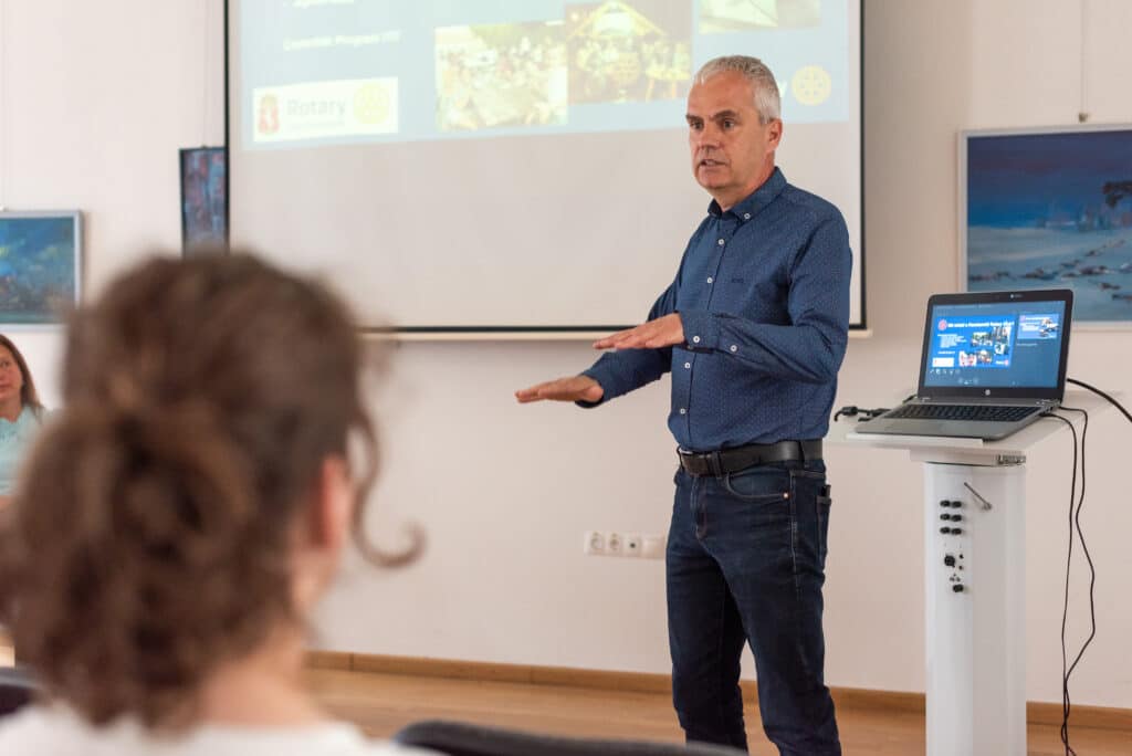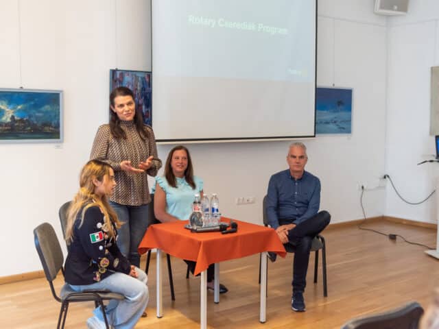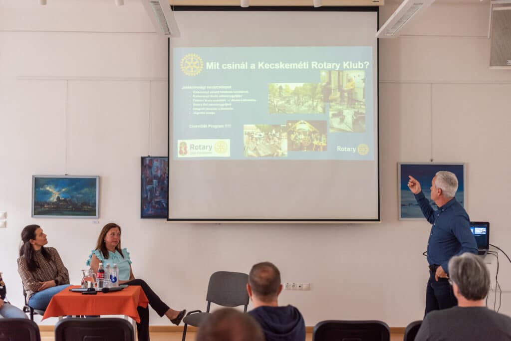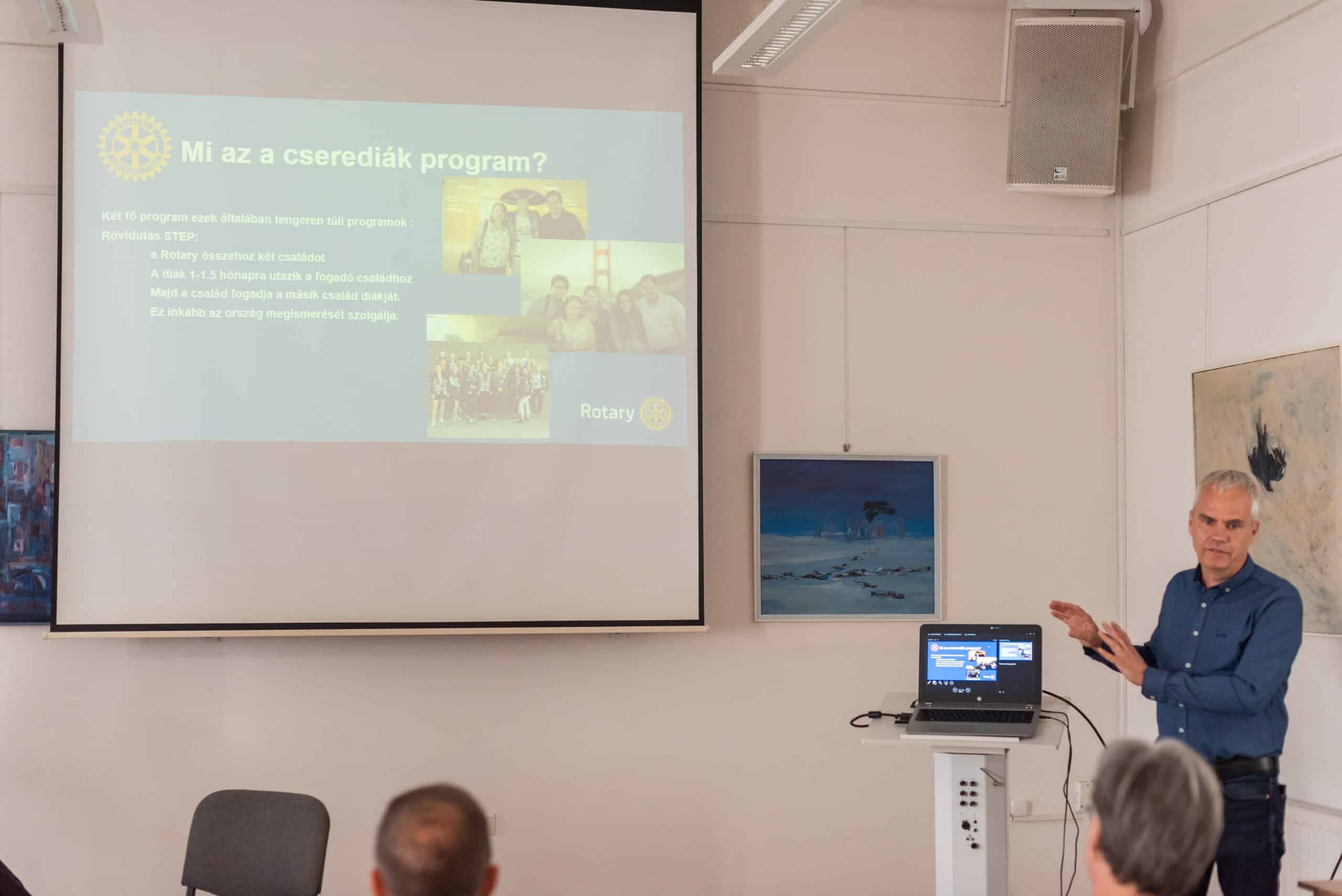 Varga Tibortól megtudtuk, hogy a Rotary szervezet 1905-ban alakult Chicago-ban, ma már a Rotary International több mint 200 országban, 1 220 000 taggal, 538 körzetben, 34 500 klubot egyesít. Célja és törekvése, hogy közelebb hozza az embereket egymáshoz. Tevékenykednek a környezetvédelem, az oktatás és gyermekvédelem területén is. Magyarországon 56 klub több mint 1100 taggal van jelen, a Kecskeméti Rotary Club 23 főt számlál. A kecskeméti klubnak több éves jótékonysági megmozdulása is van, ilyenek többek között a karácsonyi adománygyűjtések és adakozások, az integrált játszótér létrehozása, Rotary bál szervezése. Mindezek mellett népszerű cserediák programjuk is. A javarészt tengerentúli programjaik két fő csoportra bonthatók, az egyik a rövid idejű (STEP) és a hosszú utas program (LTEP). Előbbi ismérvei, hogy a Rotarynak köszönhetően két különböző országbeli családot összehoznak, a diákok ezekhez a családokhoz utaznak 1 – 1,5 hónapra. Ez a program inkább az ország megismerését szolgálja. A hosszú utas cserediák program célországai: Brazília, Mexikó, Tajvan, Japán, USA, Kanada. Itt egy iskolai évet tölt el a diák a fogadó családoknál (szeptembertől- júniusig) és részt vesz a helyi oktatásban. A cserediák a meghatározott szabályok betartása mellet megismeri adott ország nyelvét, szokásait, mindennapjait, oktatását. Szervezett utazásokon vehet rész, amit a családok, a klub vagy a disctrict szervez.
