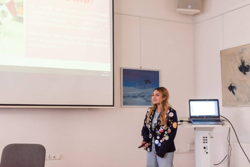 Besze Boglárka egyenesen Mexikóból jelentkezett be, segítségével a megjelentek bepillantást kaphattak a helyi iskola életébe. Bogi szívesen mesélt átélt élményeiről, tapasztalatairól, sőt még a kint szinte tökéletesre csiszolt spanyol nyelvtudását is megmutatta.