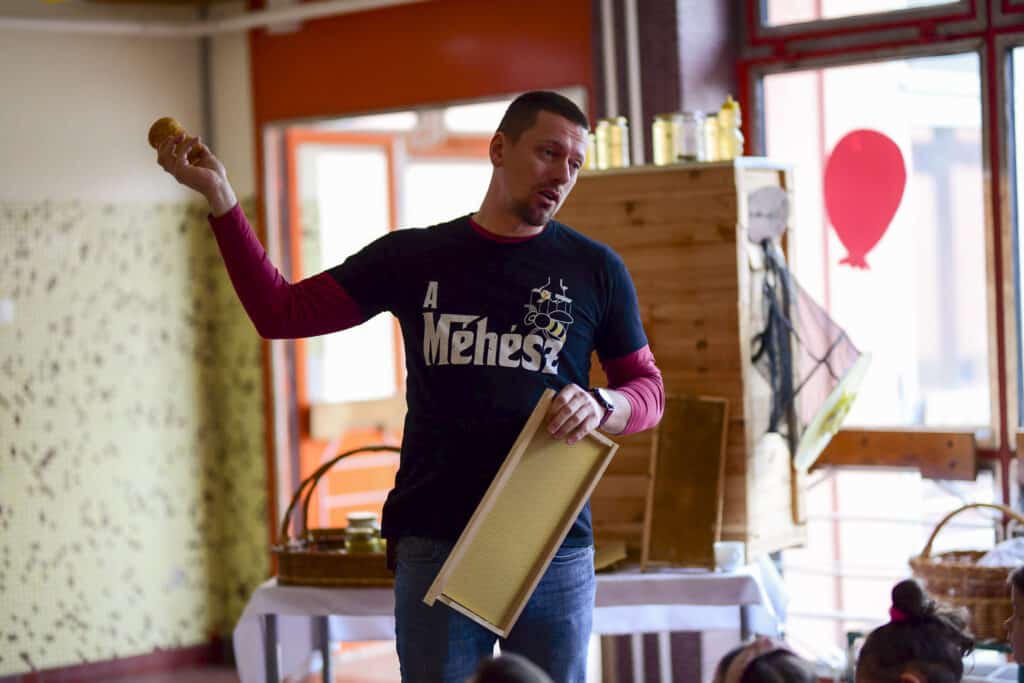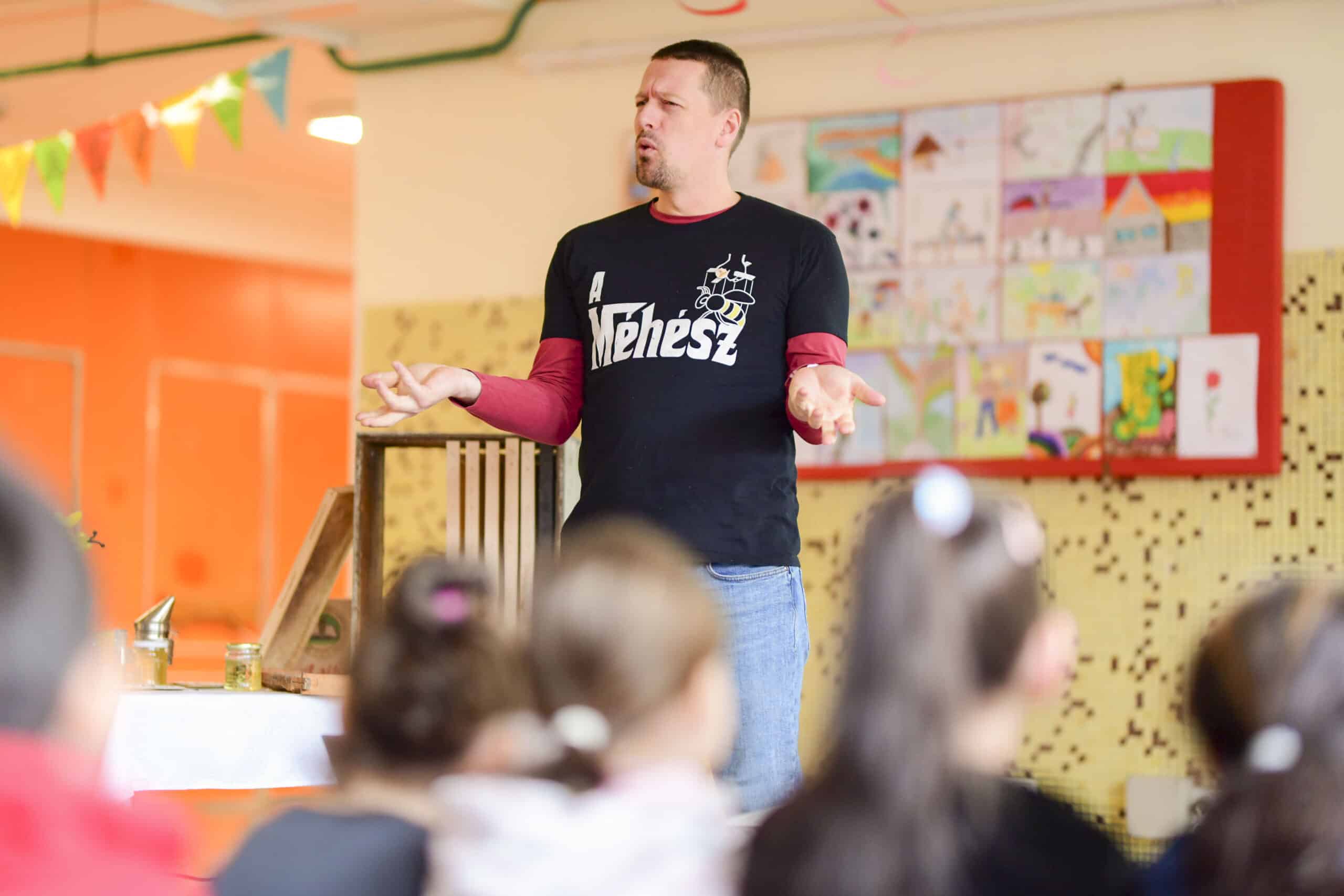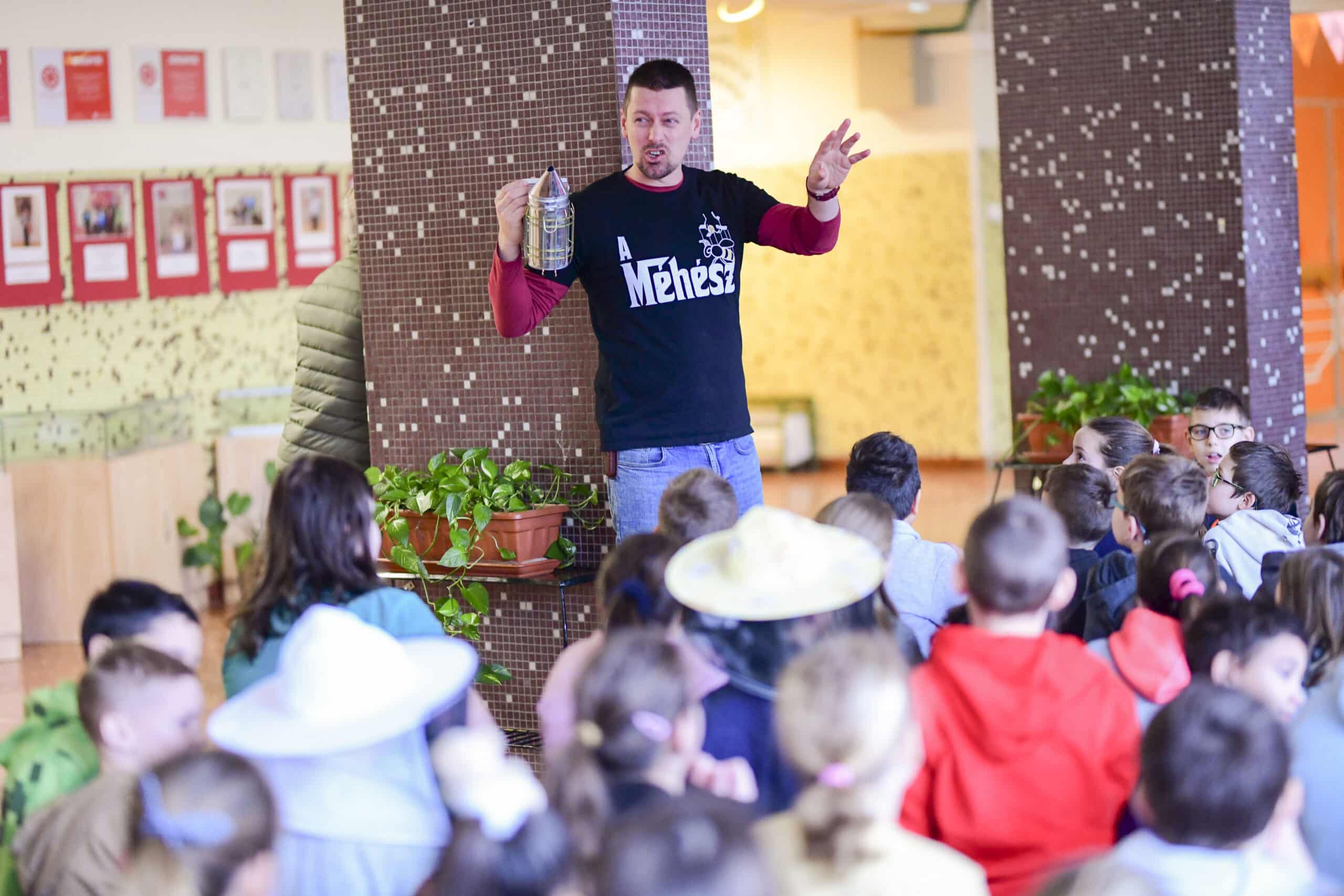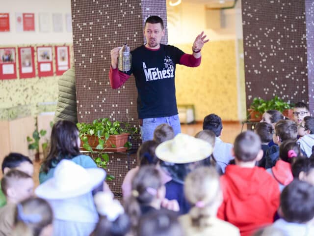 Kis Miklós petőfiszállási méhészetének bemutatásával kezdte a rendhagyó szerdai órát az iskola aulájában, majd a körülbelül 80 diák interaktív módon kapcsolódott be az előadásba. Szó esett a méhek életéről, munkájuk nélkülözhetetlenségéről, a méz csodálatos hatásairól és arról a folyamatról, amely során ez asztalunkra kerül. A kisdiákok megtudták, hogy mi a viasz, mit jelent az anya, a dolgozó vagy a here egy méhcsaládon belül, beszéltek a méhészek tevékenységéről, megismerhették, sőt fel is próbálhatták a védőfelszerelésük némelyikét és a füstölőről, valamint annak funkciójáról is ismereteket kaptak. A fiatalok lelkes és figyelmes hallgatóságnak bizonyultak, az előadás során minden feltett kérdésre igyekeztek jó választ adni. A rendhagyó óra kóstolóval ért véget, amit örömmel és szívesen fogadtak a gyerekek.