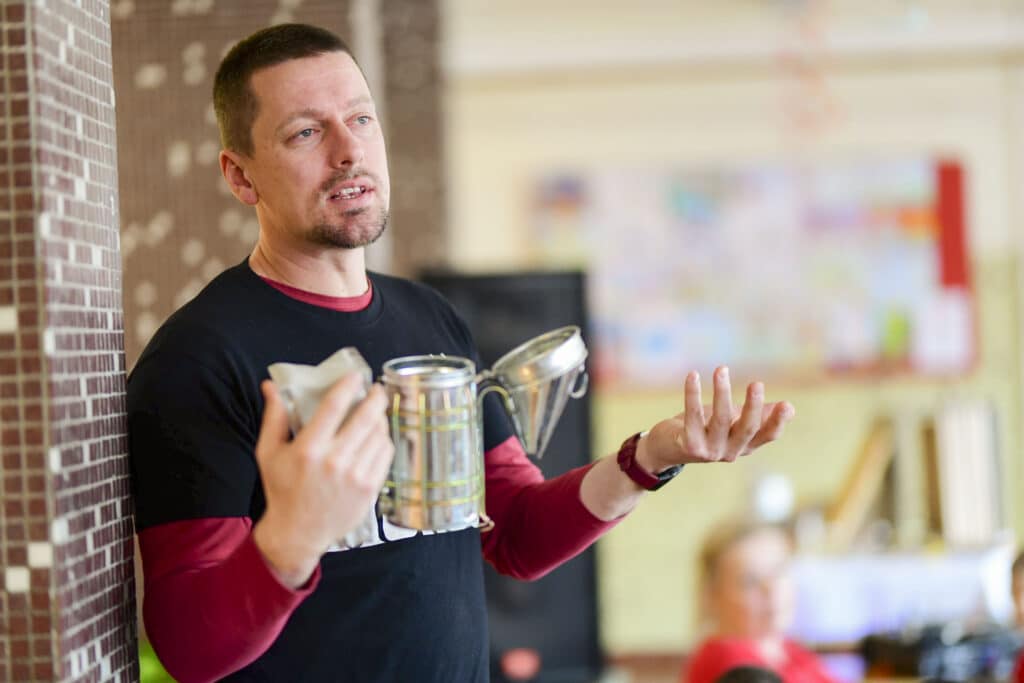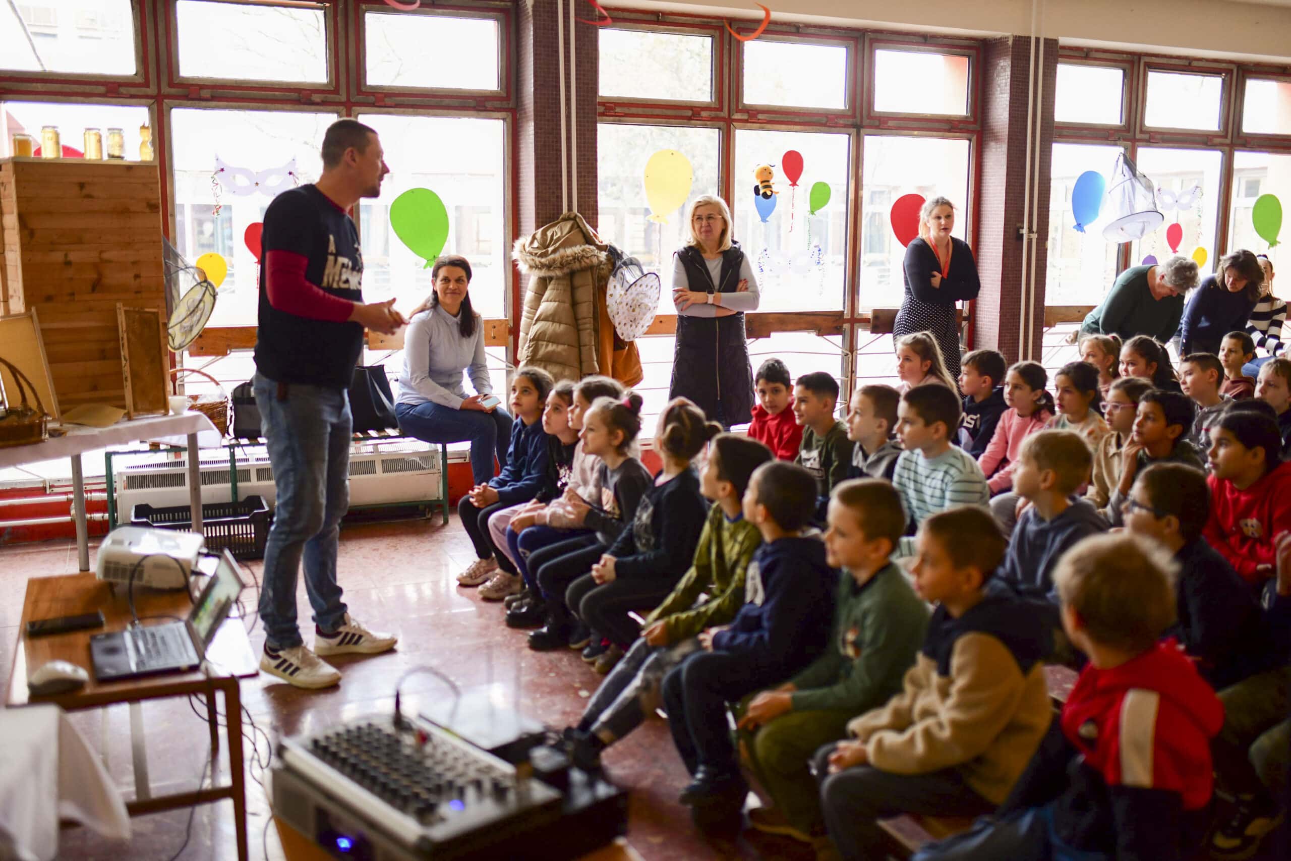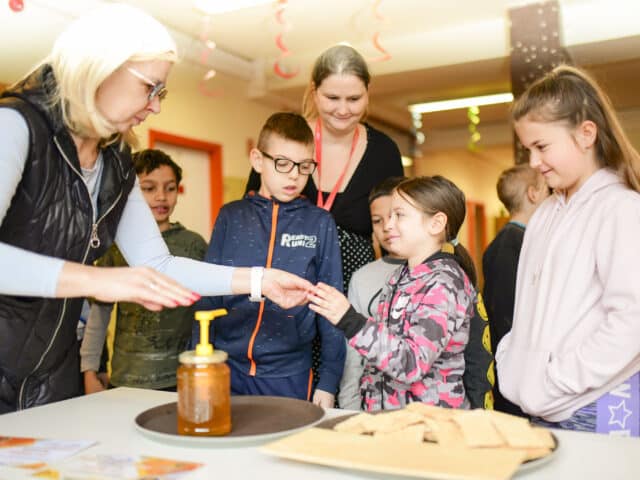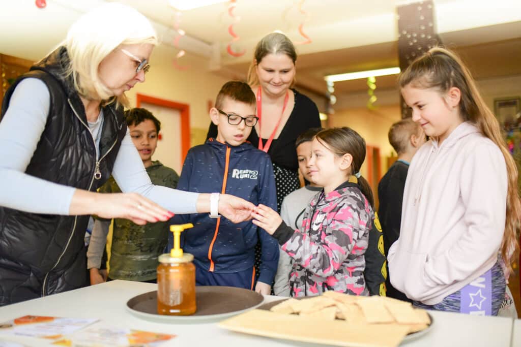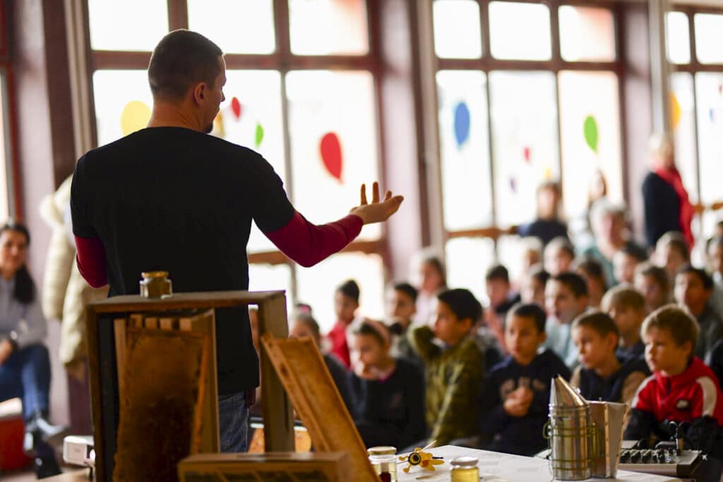 Kis Miklós petőfiszállási méhészetének bemutatásával kezdte a rendhagyó szerdai órát az iskola aulájában, majd a körülbelül 80 diák interaktív módon kapcsolódott be az előadásba. Szó esett a méhek életéről, munkájuk nélkülözhetetlenségéről, a méz csodálatos hatásairól és arról a folyamatról, amely során ez asztalunkra kerül. A kisdiákok megtudták, hogy mi a viasz, mit jelent az anya, a dolgozó vagy a here egy méhcsaládon belül, beszéltek a méhészek tevékenységéről, megismerhették, sőt fel is próbálhatták a védőfelszerelésük némelyikét és a füstölőről, valamint annak funkciójáról is ismereteket kaptak. A fiatalok lelkes és figyelmes hallgatóságnak bizonyultak, az előadás során minden feltett kérdésre igyekeztek jó választ adni. A rendhagyó óra kóstolóval ért véget, amit örömmel és szívesen fogadtak a gyerekek.