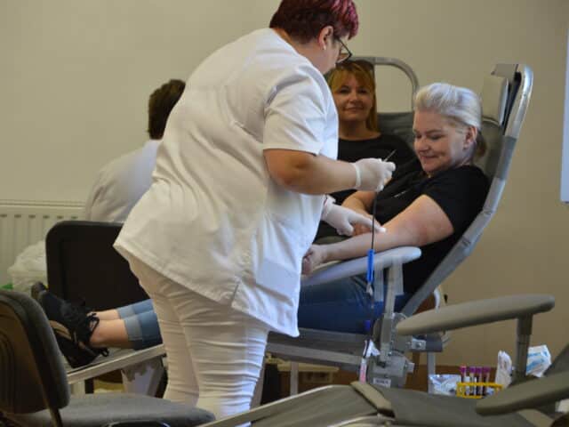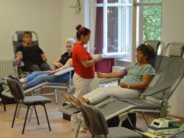 A helyszínen véradás is zajlik, ahol a segíteni vágyók sorra érkeznek, hogy életet mentsenek.