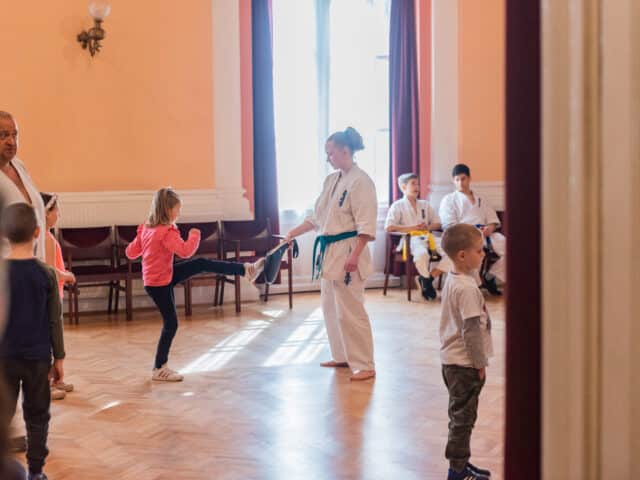 A gyermekek és a felnőttek számára leginkább megfelelő mozgásforma megtalálását harcművészeti és mozgásos bemutatók segítették: a karate, a thai boksz és a birkózás mellett a résztvevők megismerkedhettek a Maminbaba hordozós latin fitnesszel, a baba jógával és a társastánccal is. A látványos bemutatók lehetőséget adtak arra, hogy a családok közvetlen tapasztalatokat szerezzenek a város sportéletének sokszínűségéről, és személyesen is kapcsolatba kerüljenek a különböző egyesületek képviselőivel.