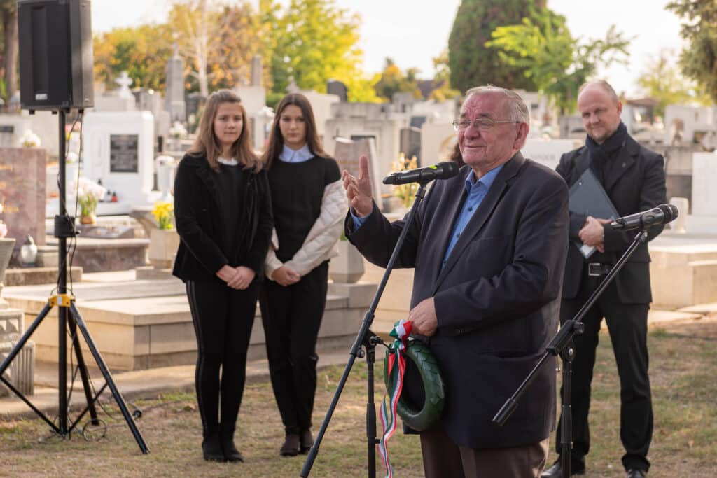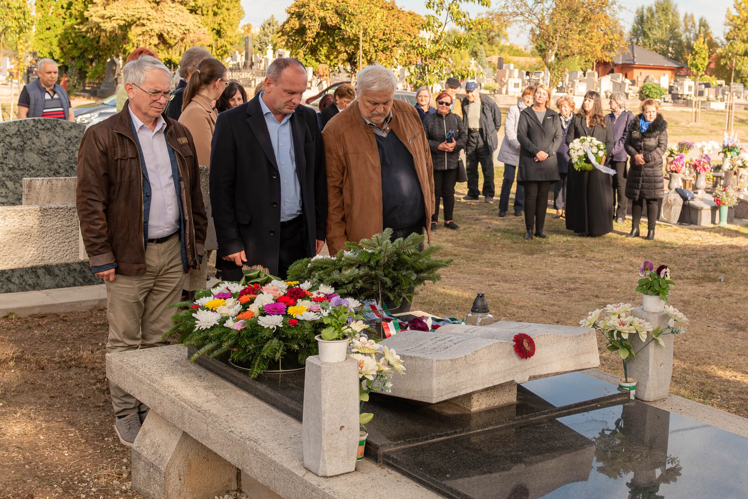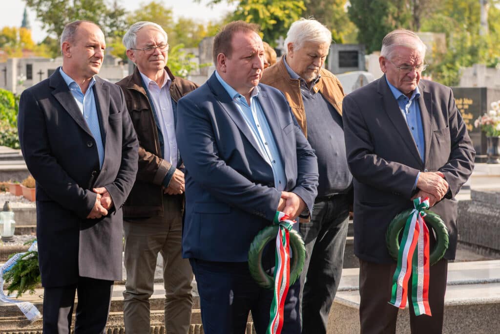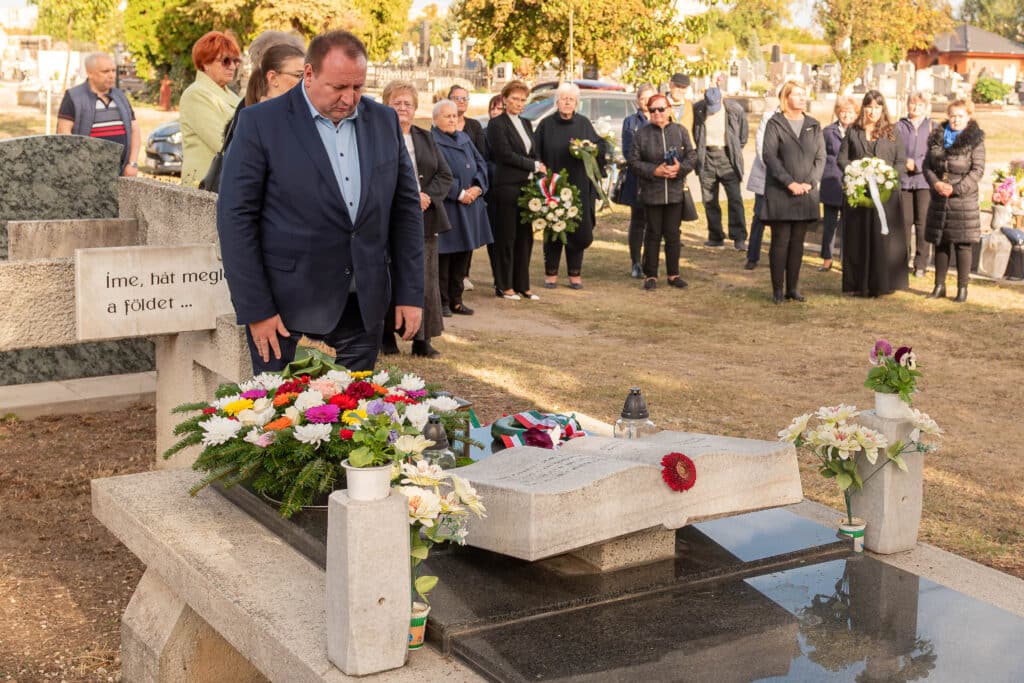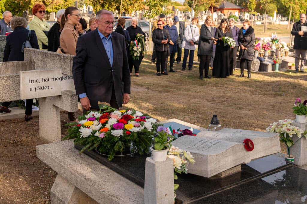 A koszorúzáson a város és az intézmények képviselői helyezték el az emlékezés virágait Fekete Pál sírjánál.