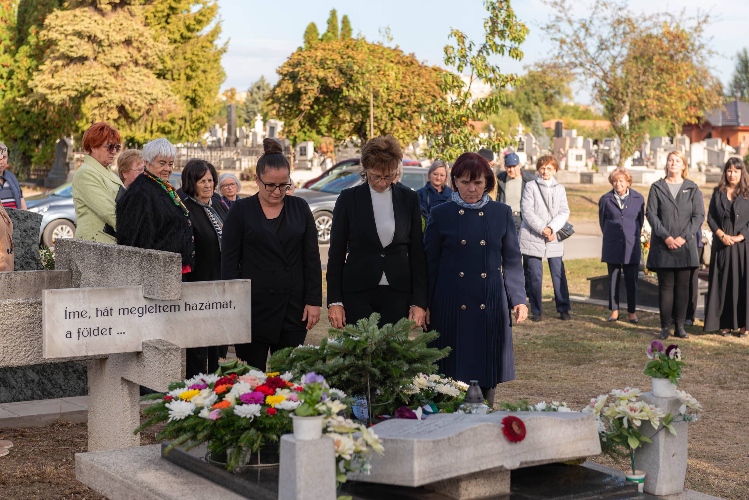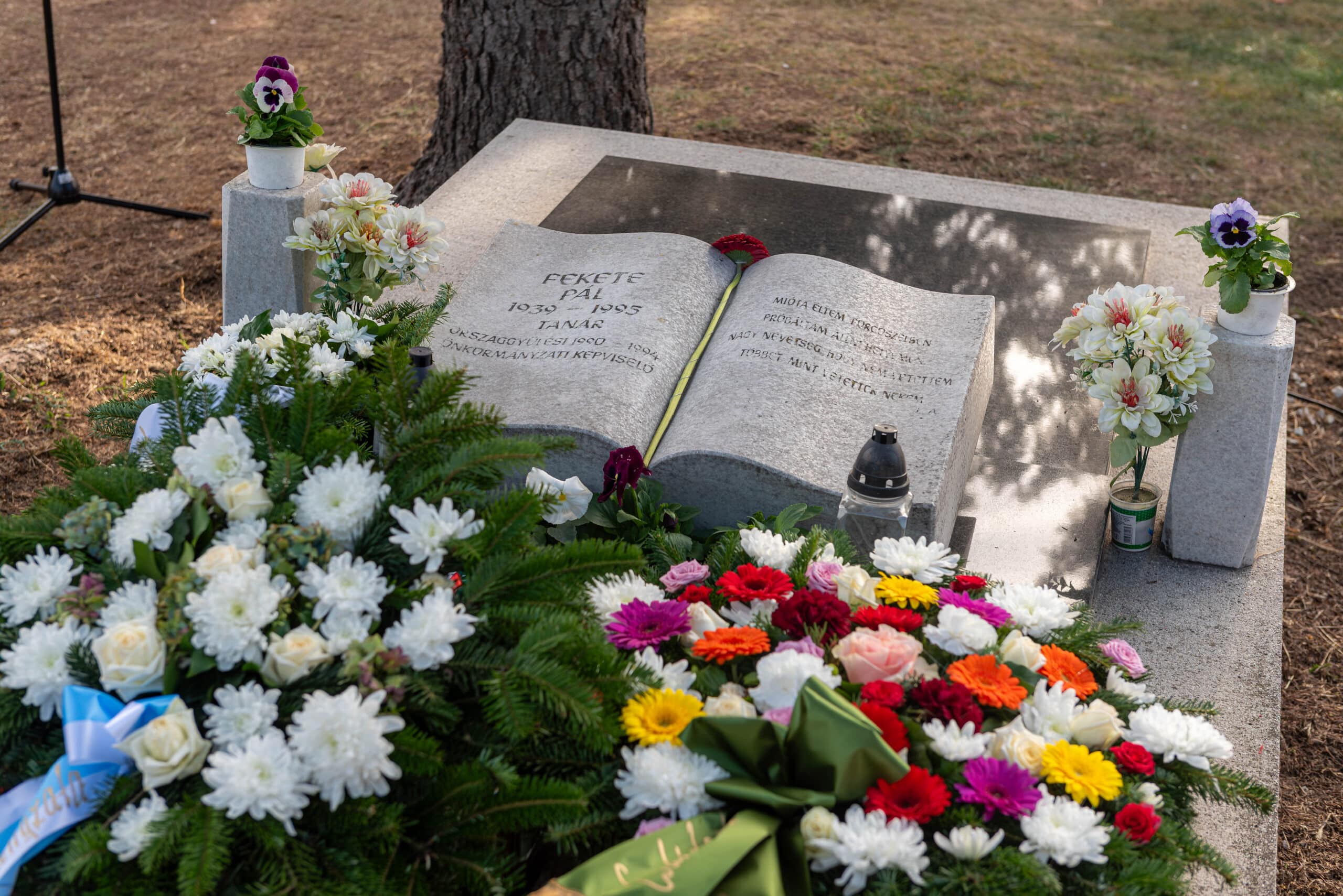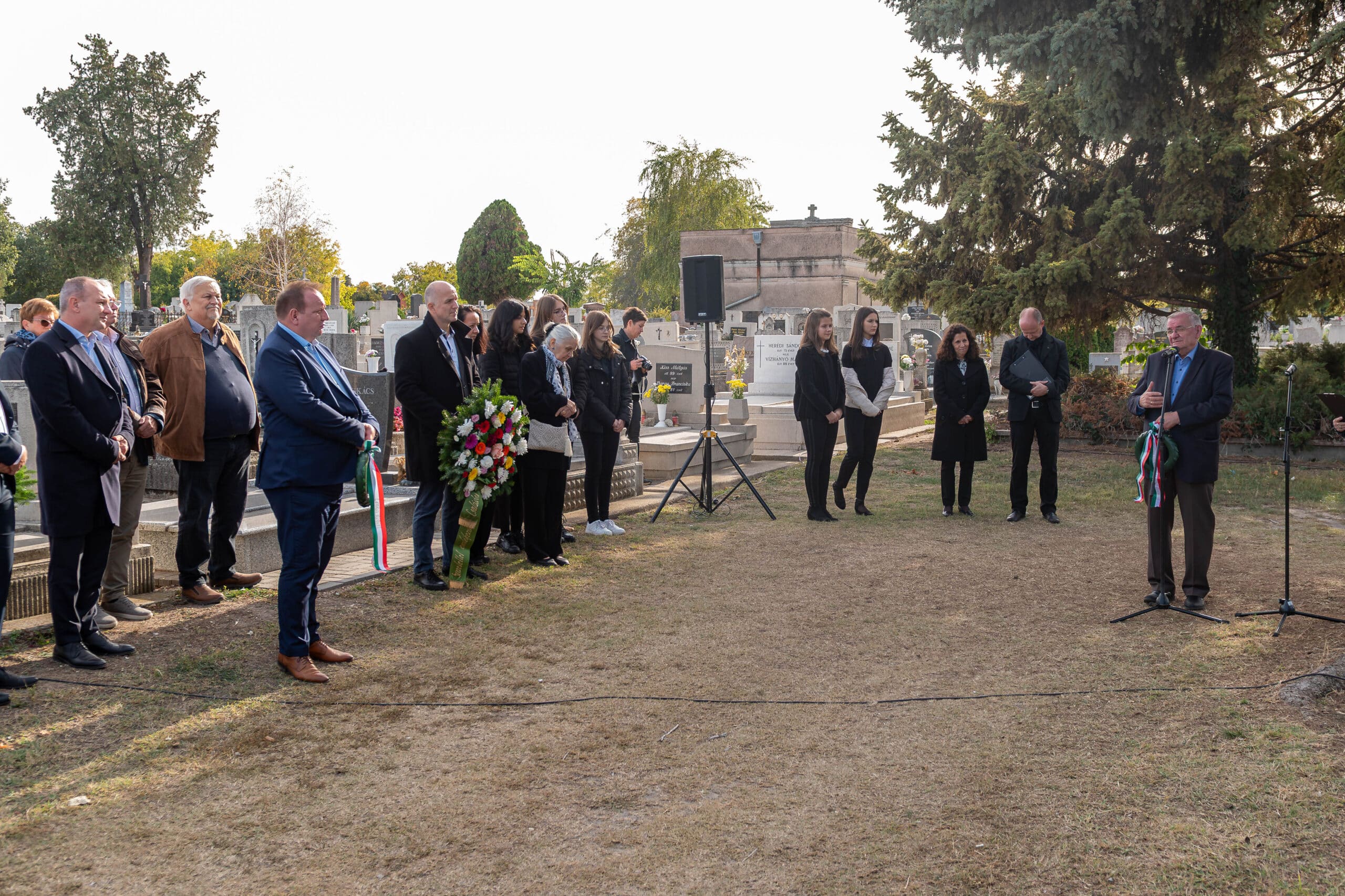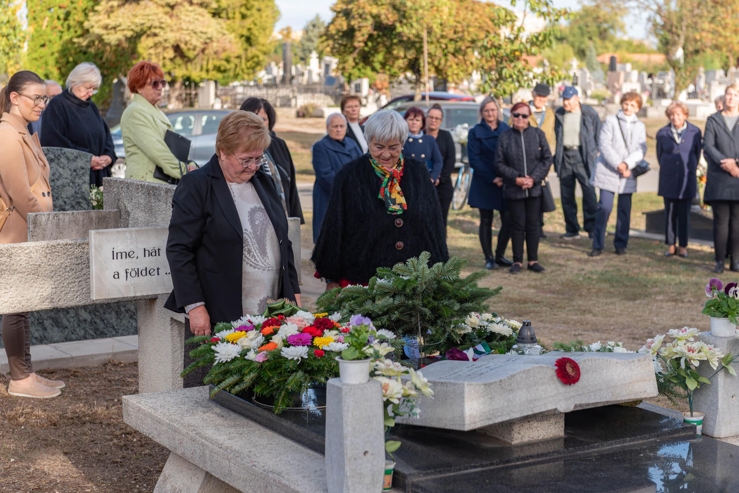 A koszorúzáson a város és az intézmények képviselői helyezték el az emlékezés virágait Fekete Pál sírjánál.