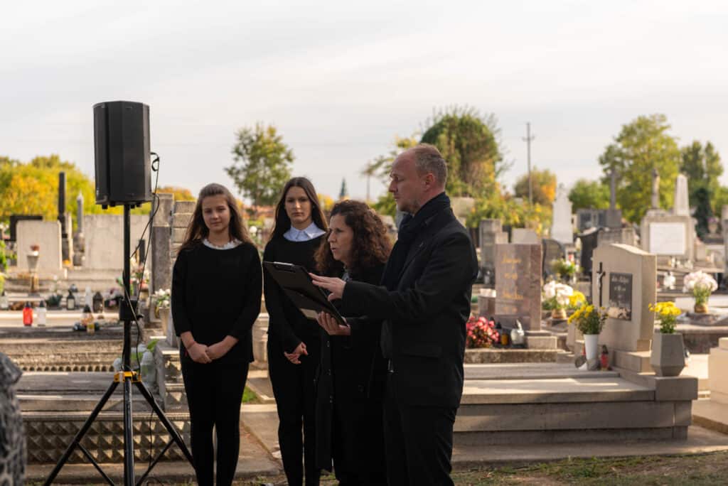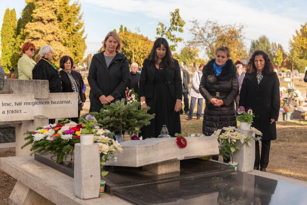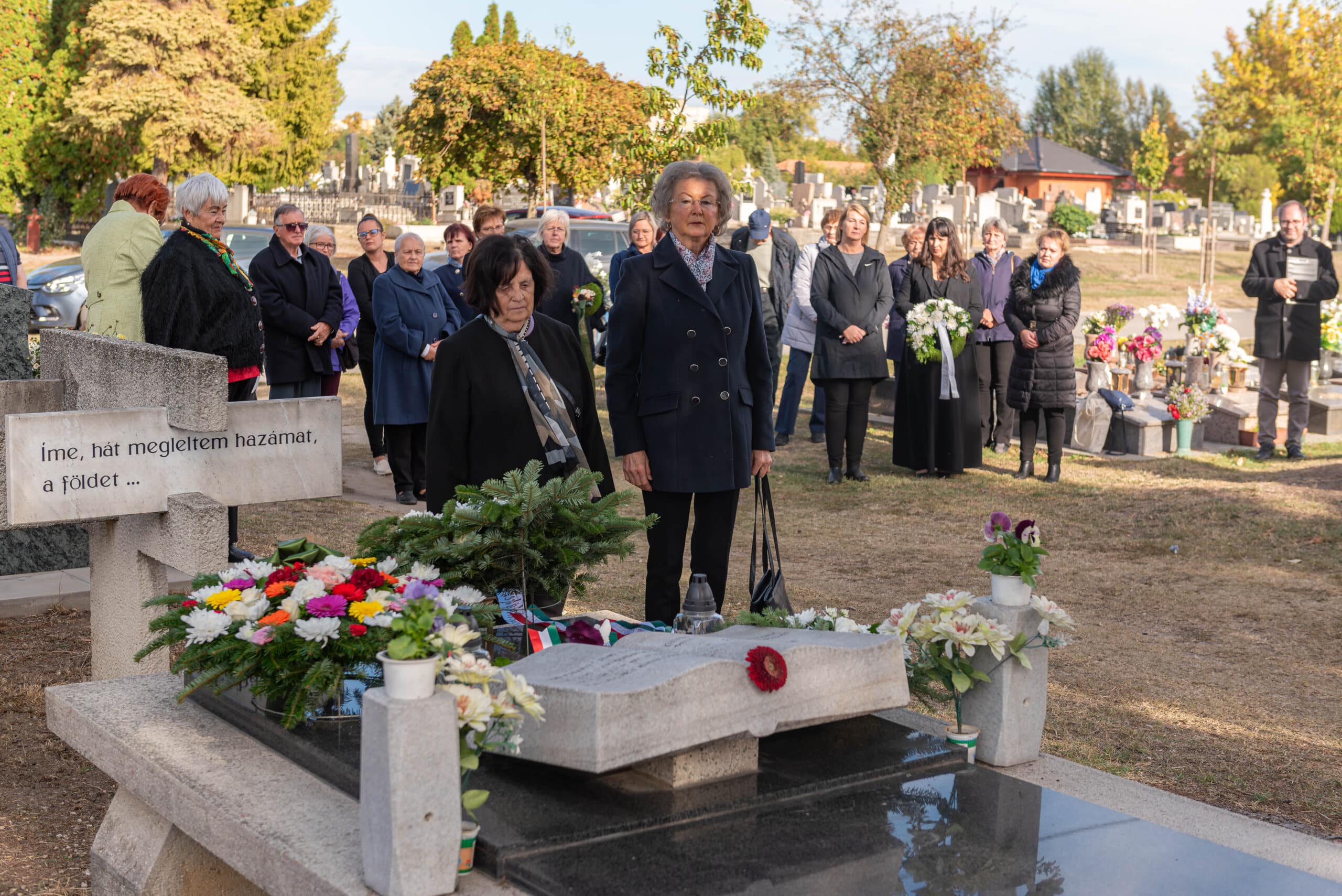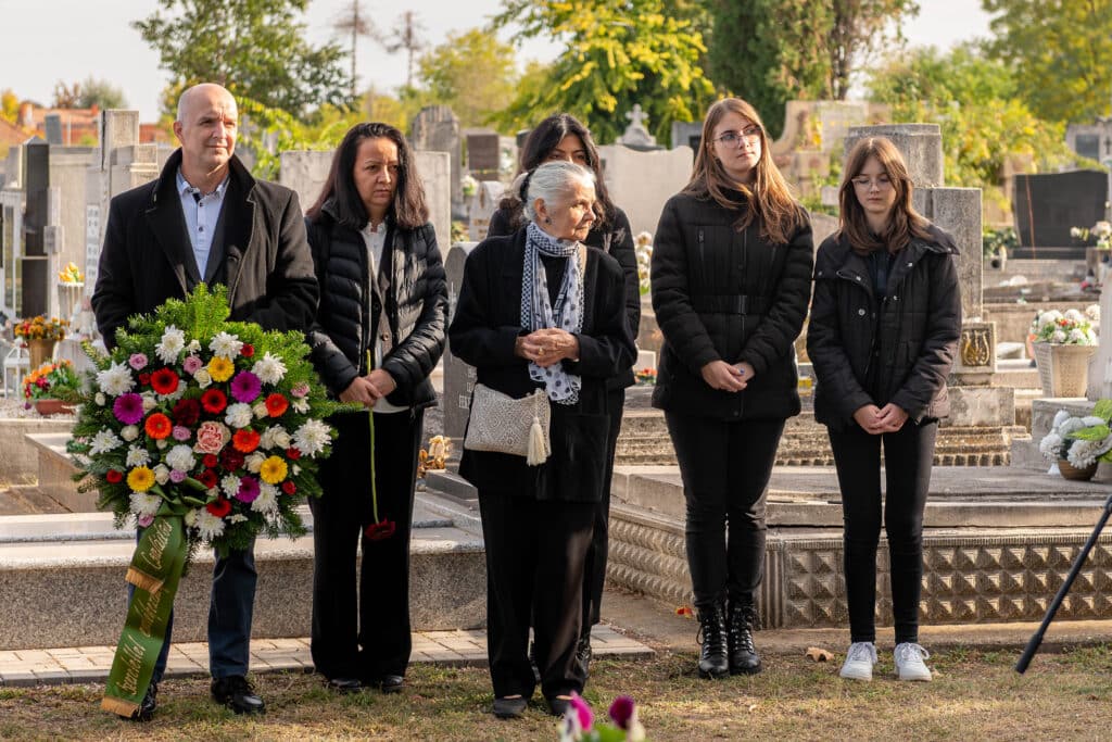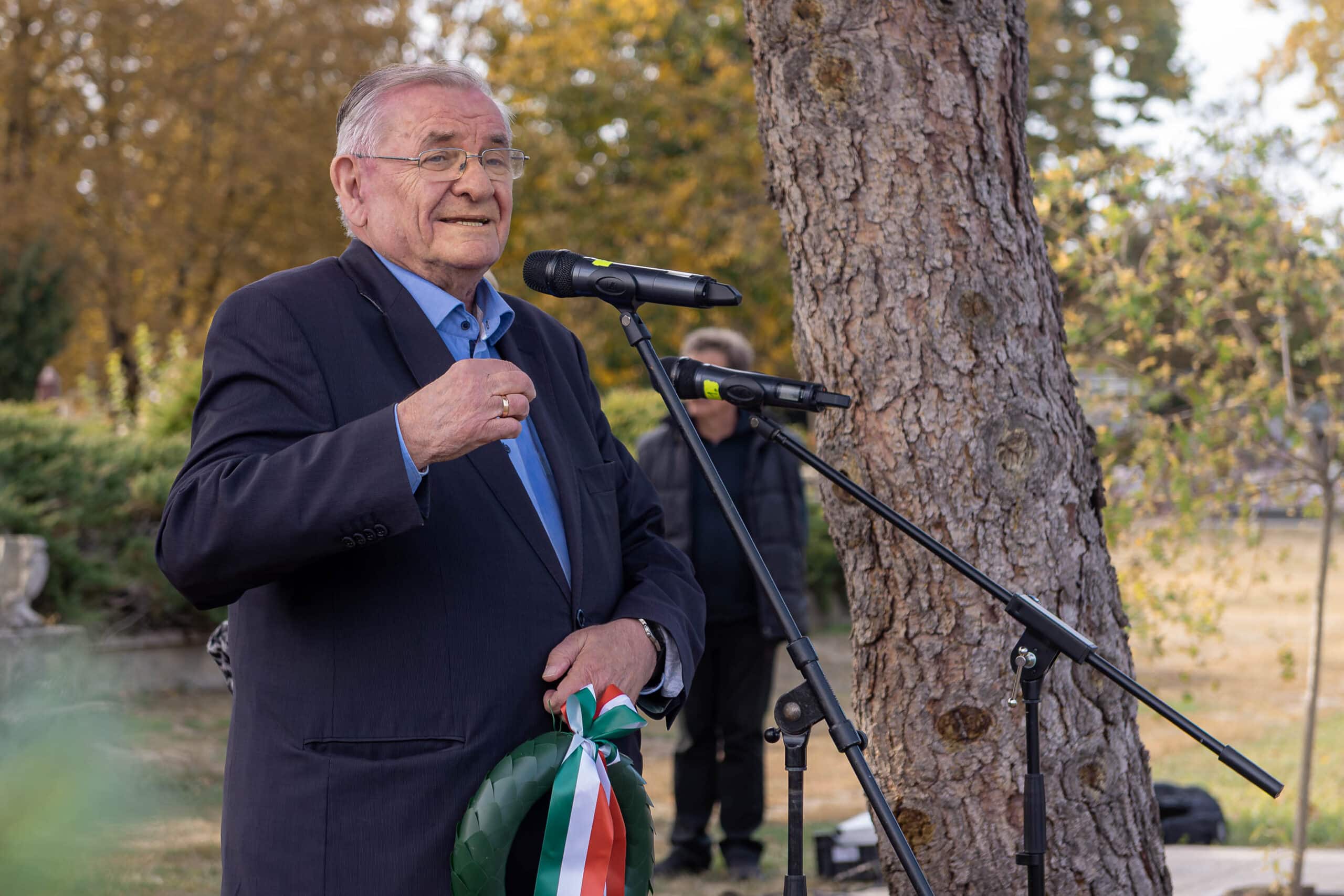 A koszorúzáson a város és az intézmények képviselői helyezték el az emlékezés virágait Fekete Pál sírjánál.
