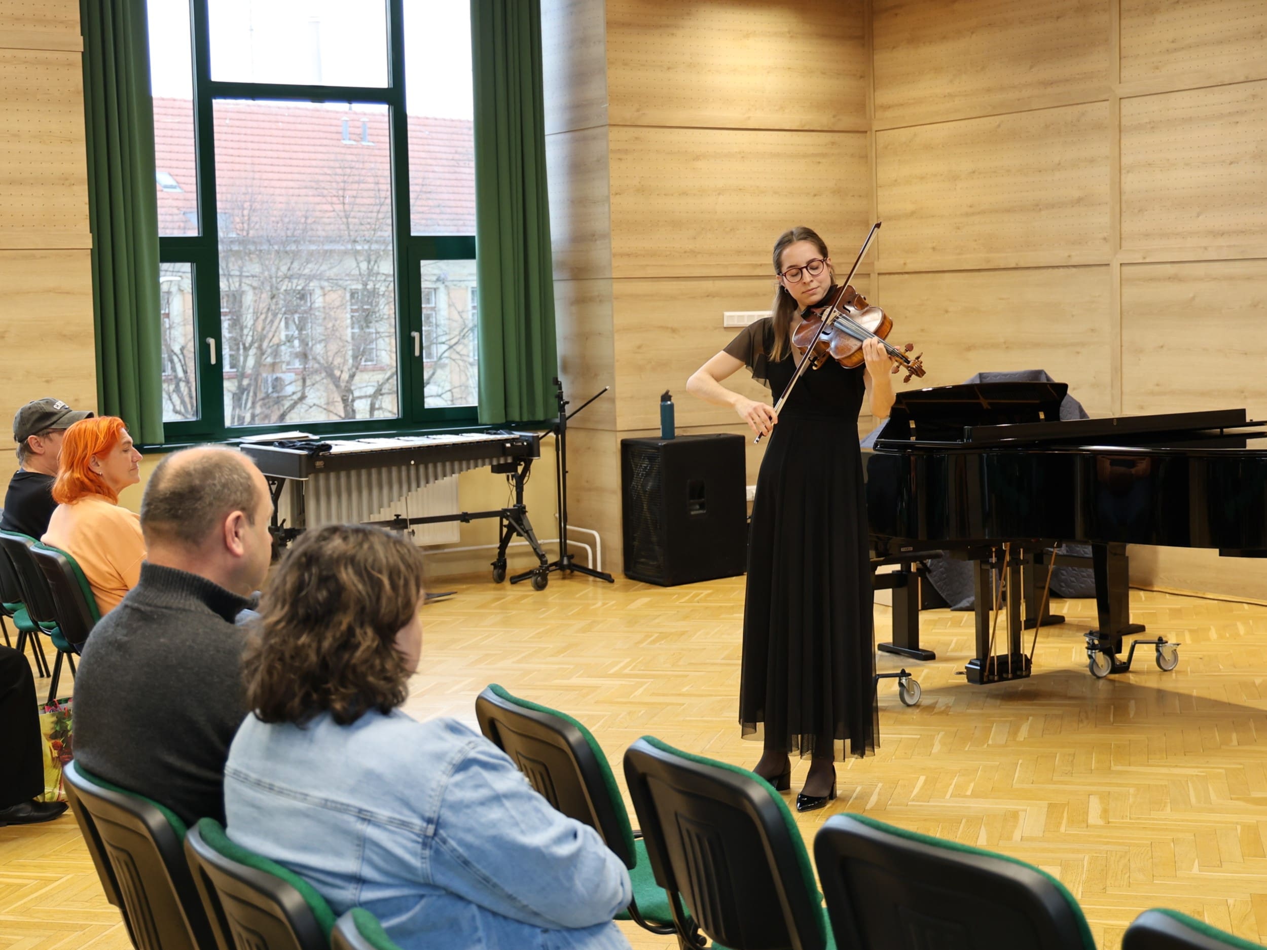 A péntek délutáni koncerten Kis-Fekete Vilmos igazgató köszöntötte a közönséget, kiemelve, hogy az iskola hagyományosan évente két hangversenyt rendez, egy tanárit és egy jótékonyságit. Idén utóbbi különleges formát öltött, hiszen nem a pedagógusok, hanem az intézményből kikerült, ma már zenei tanulmányokat folytató egykori diákok kaptak lehetőséget a bemutatkozásra.