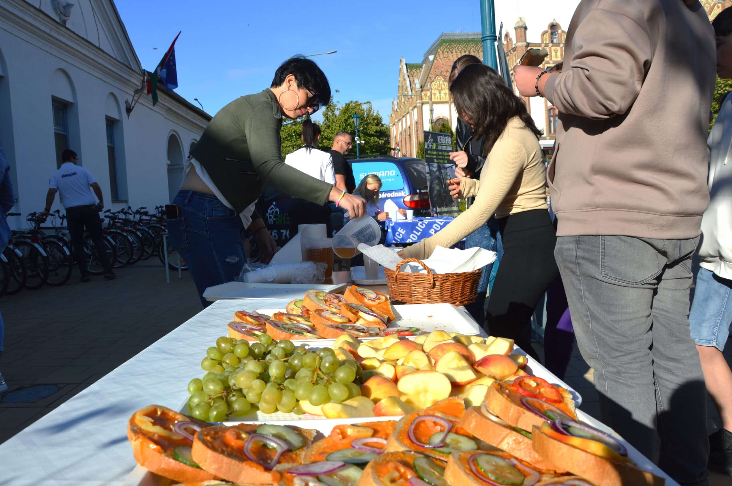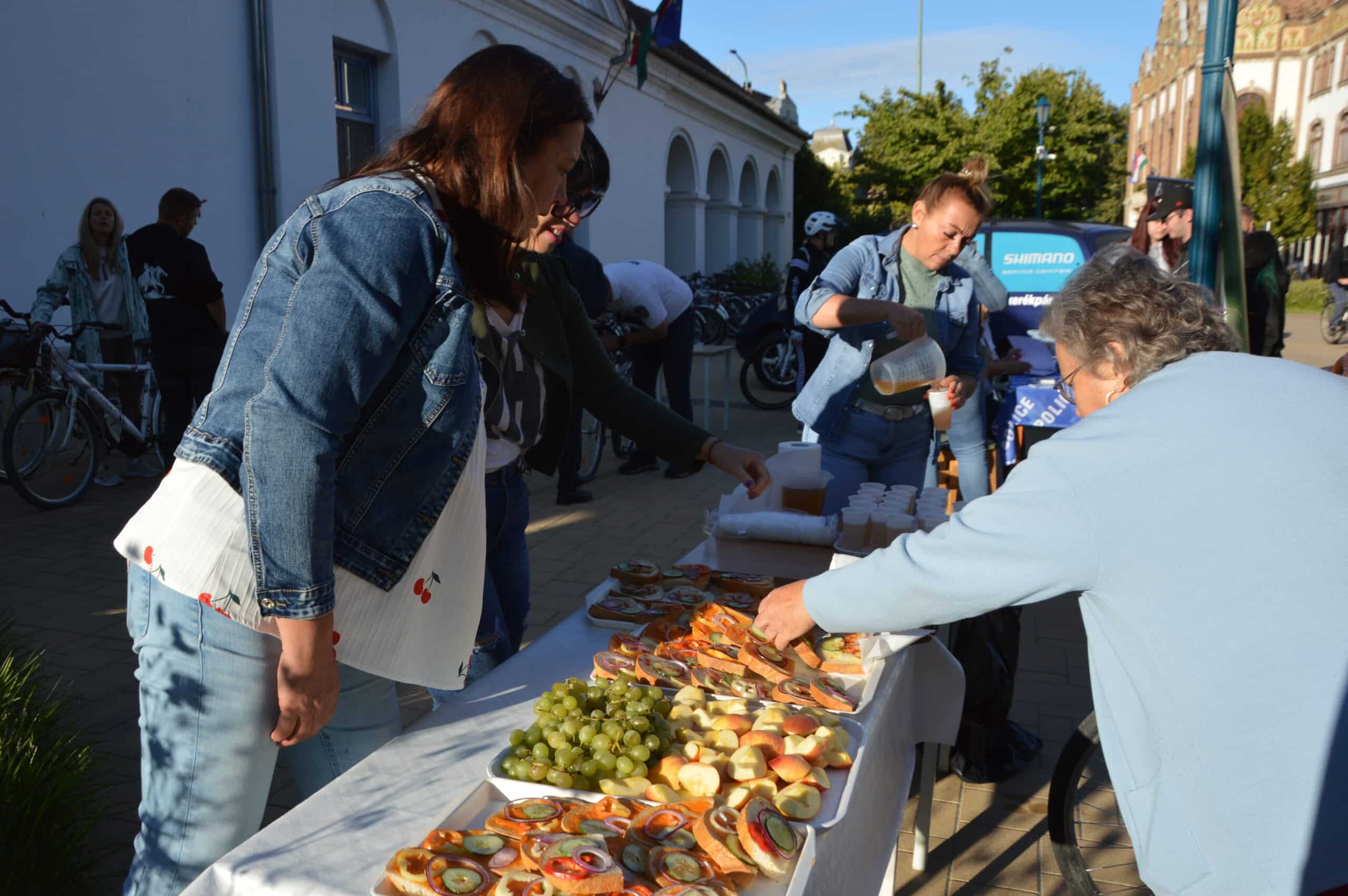 Az Autómentes naphoz kapcsolódva idén is reggelivel, gyümölccsel és meleg teával várták a kerékpárosokat és egyéb alternatív közlekedési eszközzel érkezőket a Hattyúház előtt szeptember 19-én, délelőtt.